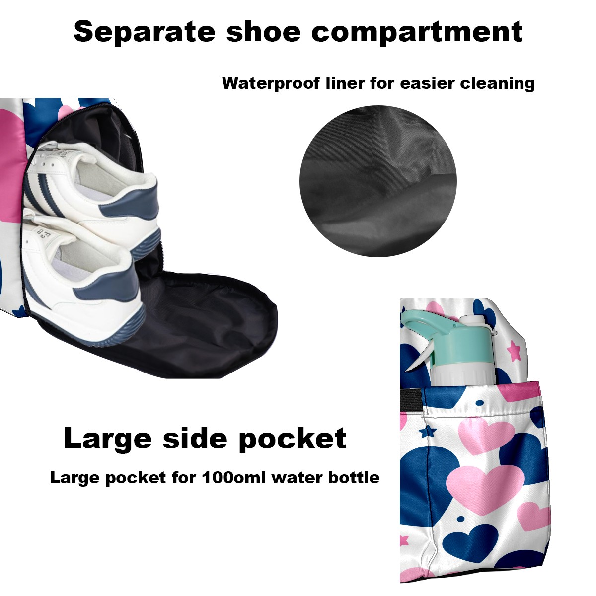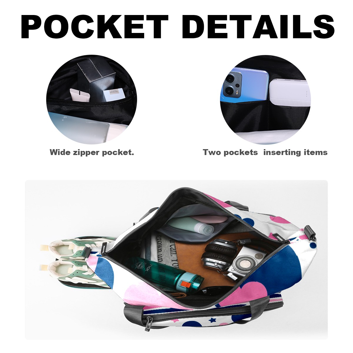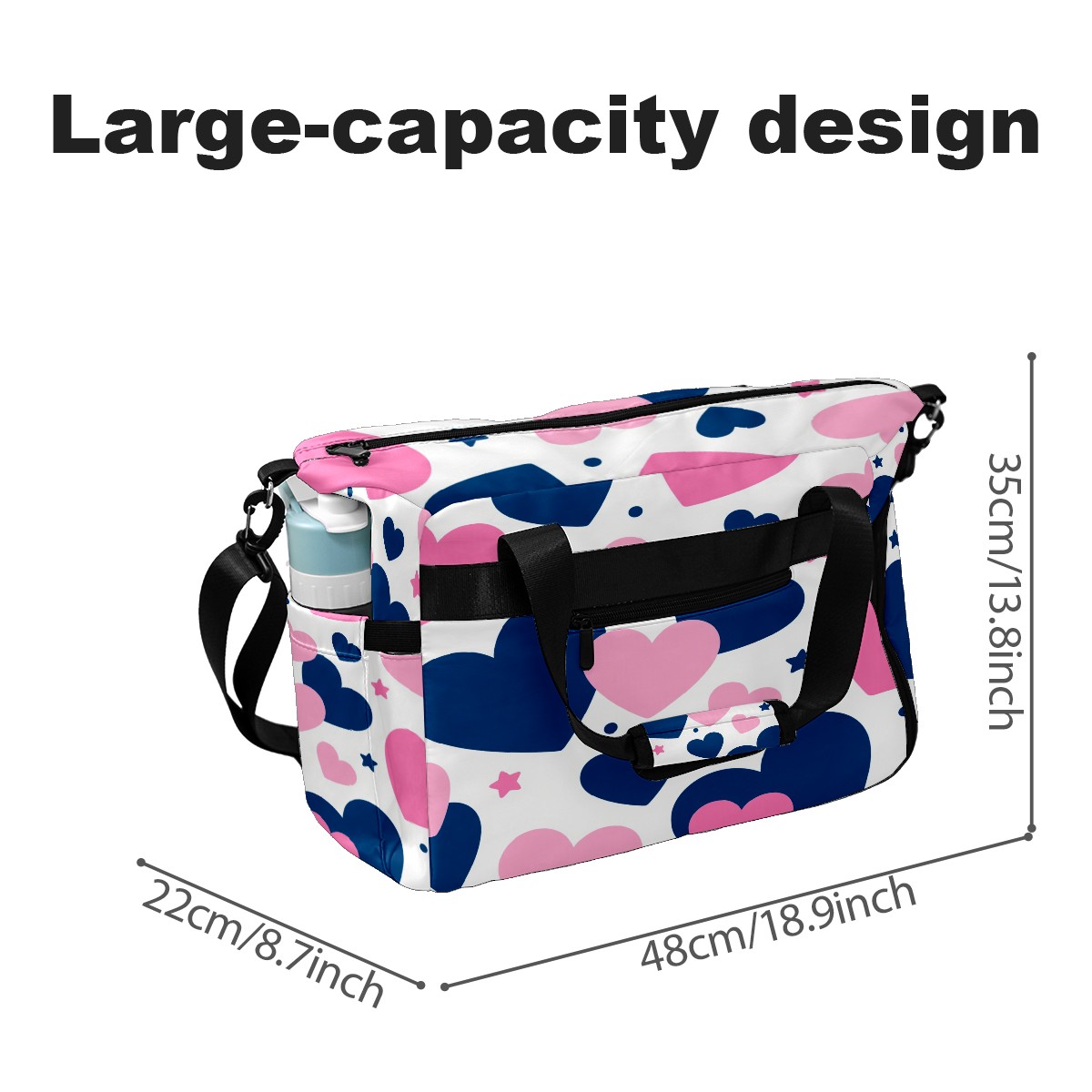 Pickleball Tote Bag Carryall for Paddles Balls and Accessories, Portable Lightweight Gear Bag for Players(Pink Blue Hearts)