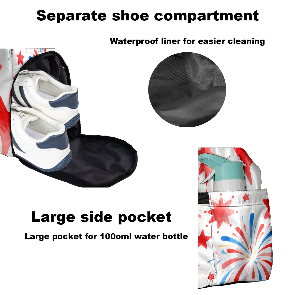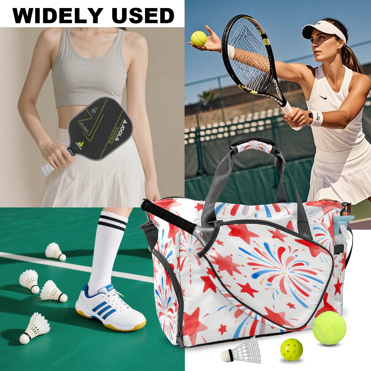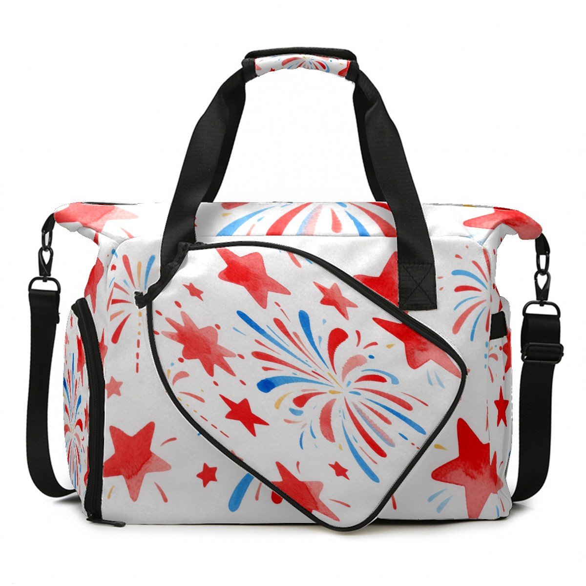 Pickleball Tote Bag Carryall for Paddles Balls and Accessories, Portable Lightweight Gear Bag for Players(Firework Star)