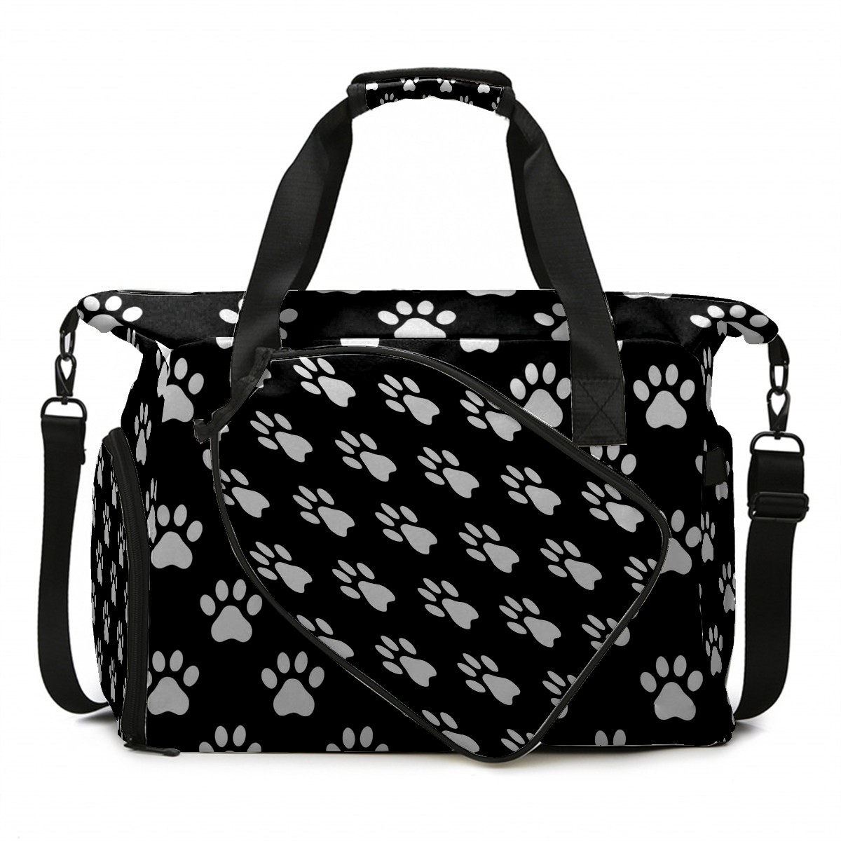 Pickleball Tote Bag Carryall for Paddles Balls and Accessories, Portable Lightweight Gear Bag for Players(Paw Print)