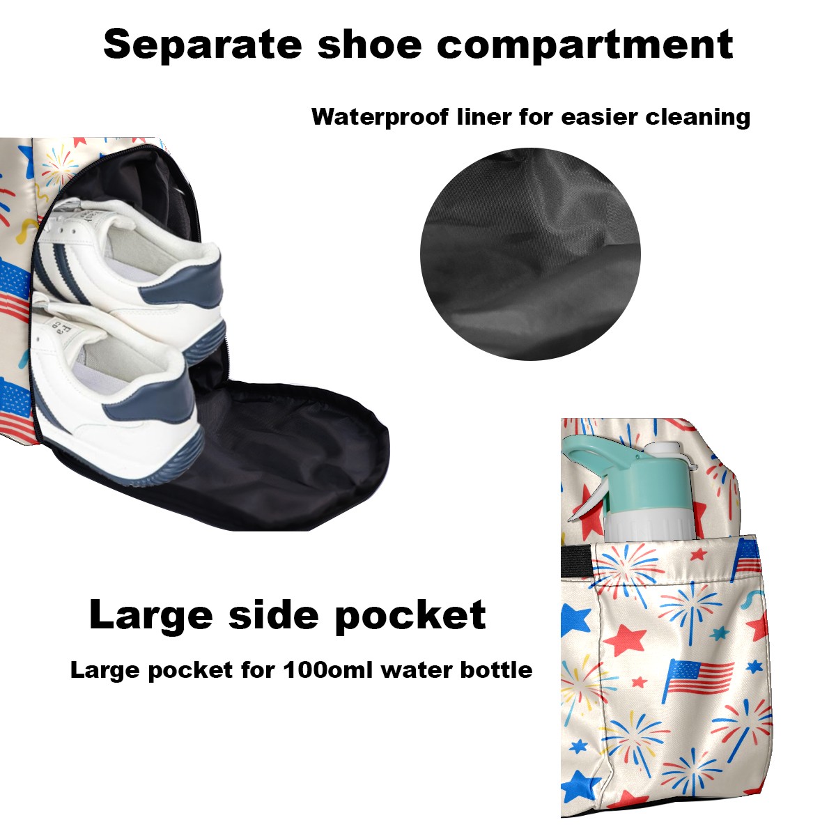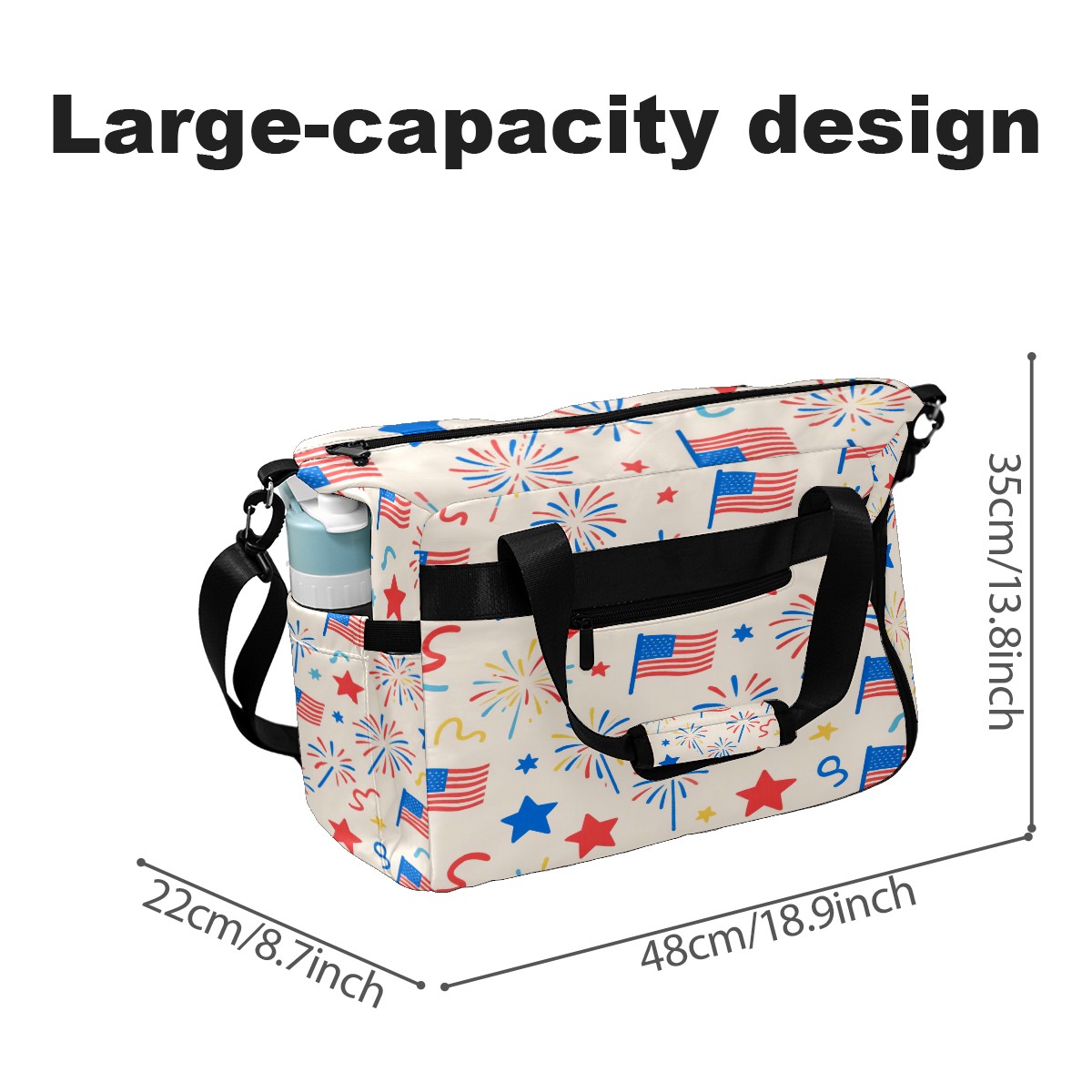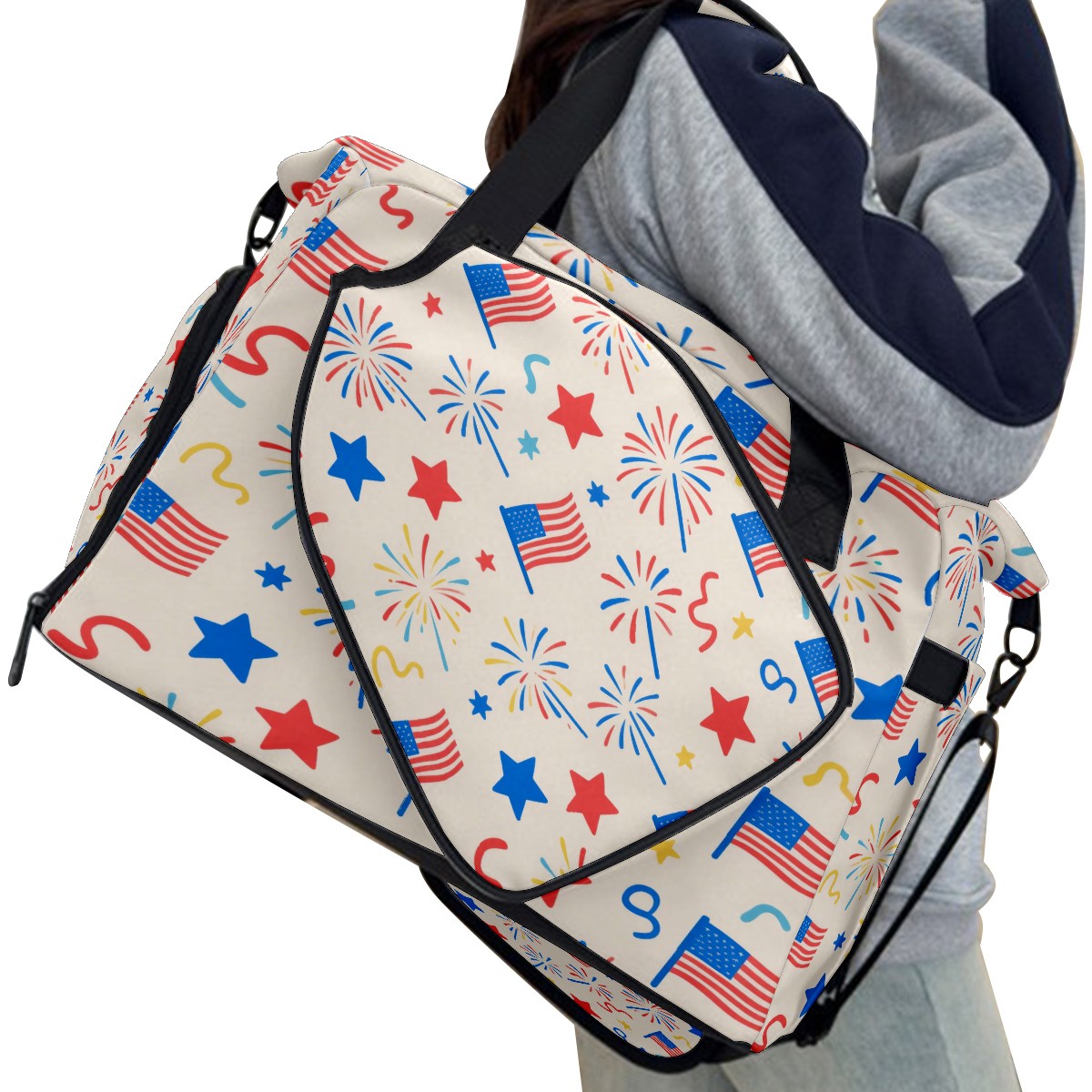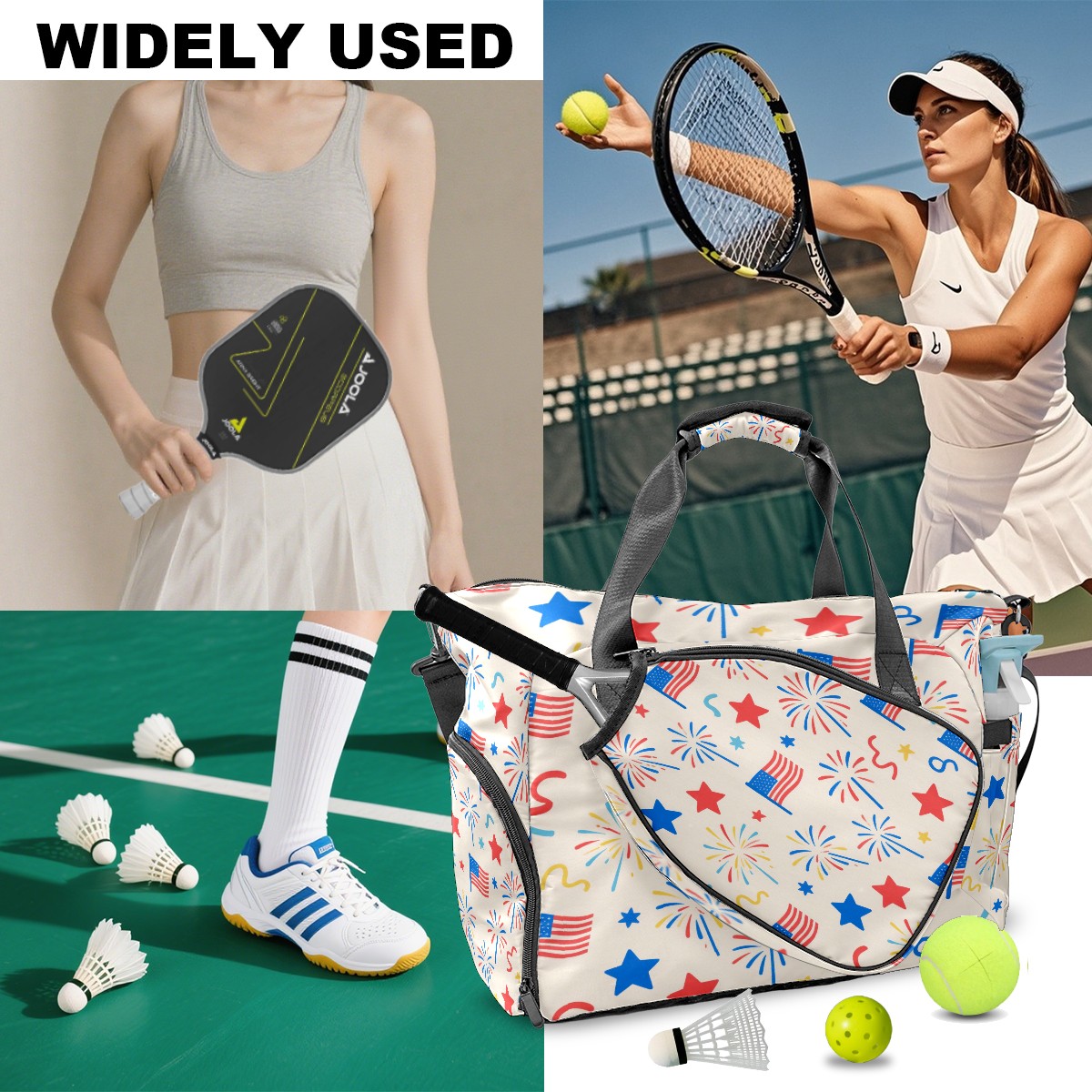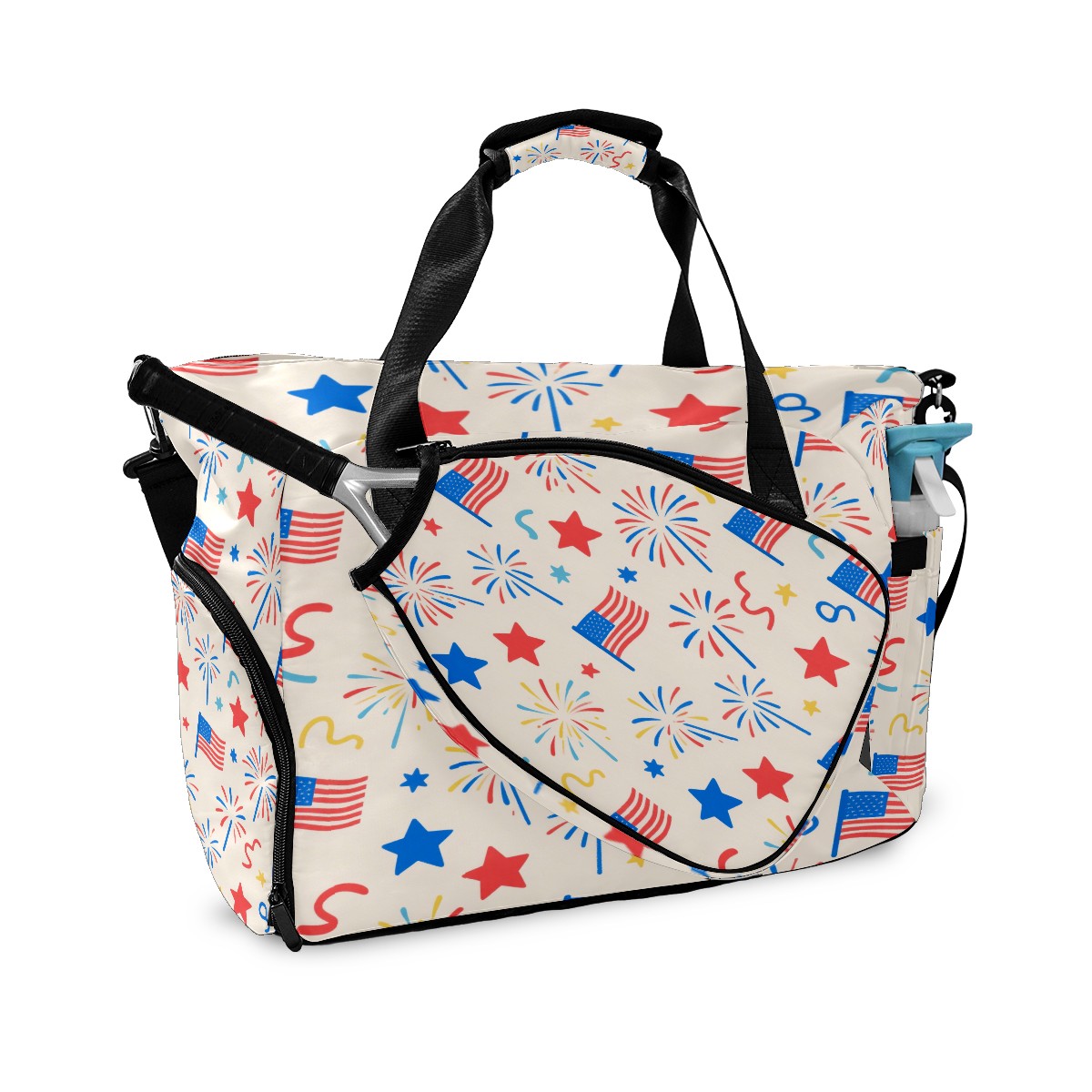 Pickleball Tote Bag Carryall for Paddles Balls and Accessories, Portable Lightweight Gear Bag for Players(American Flag Firework)