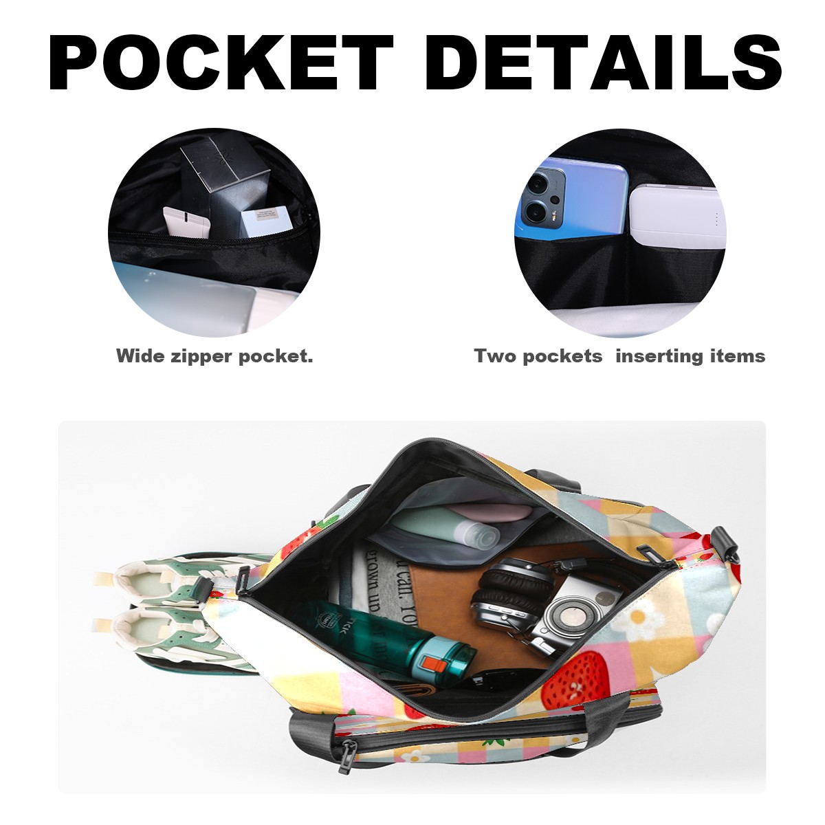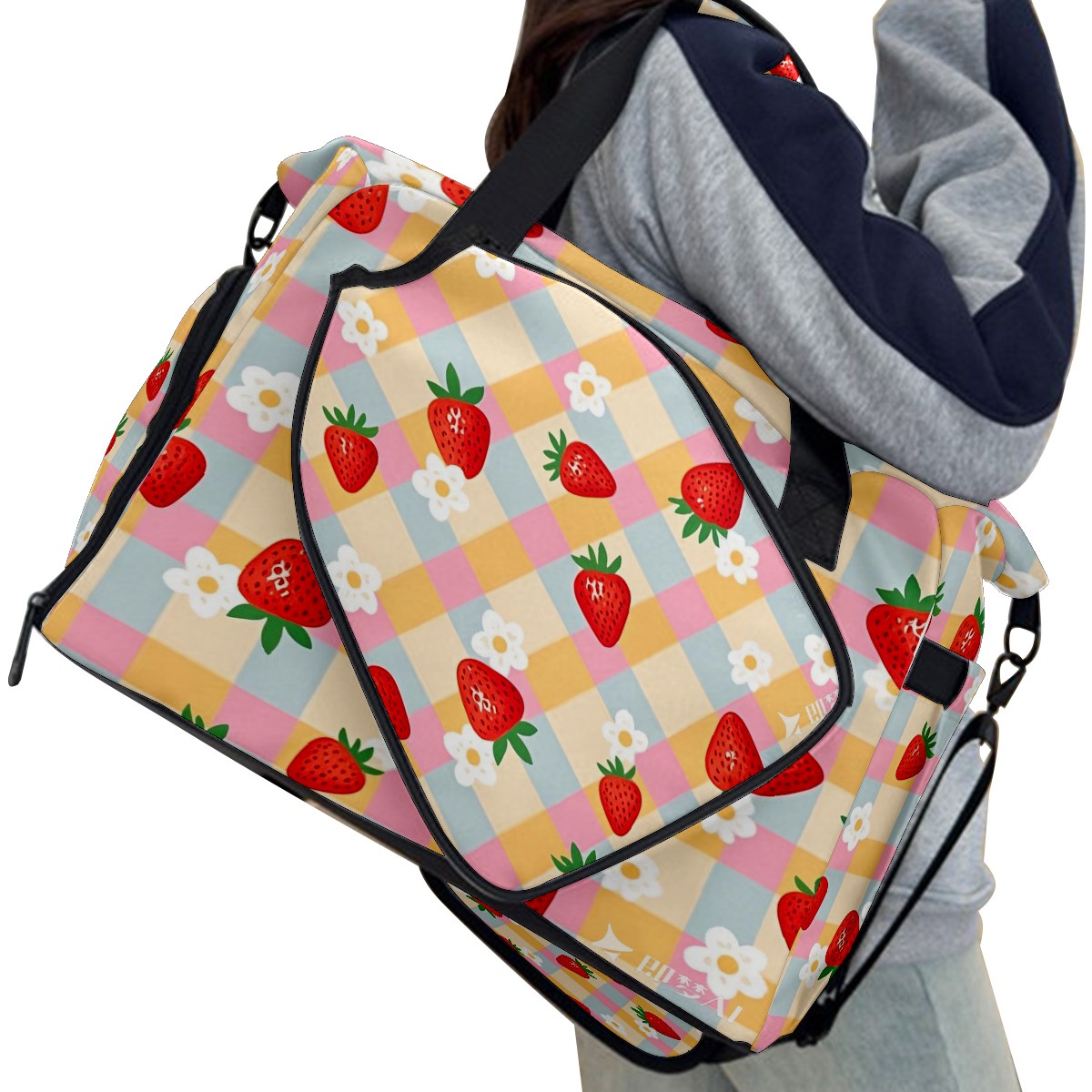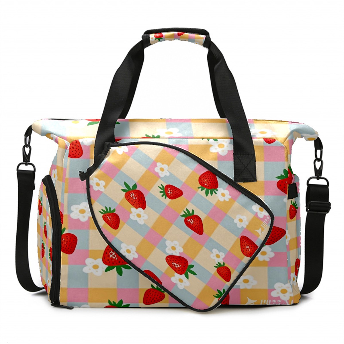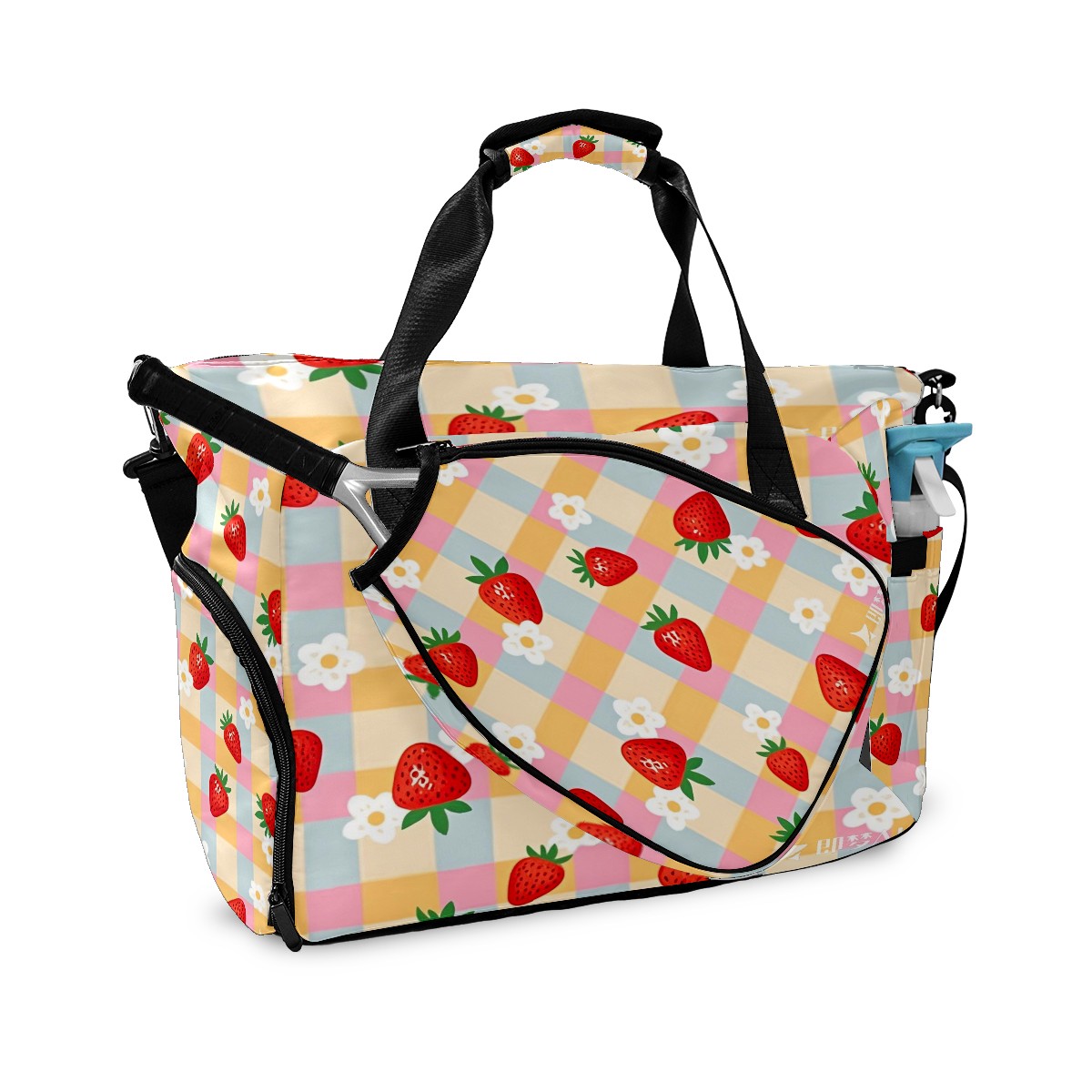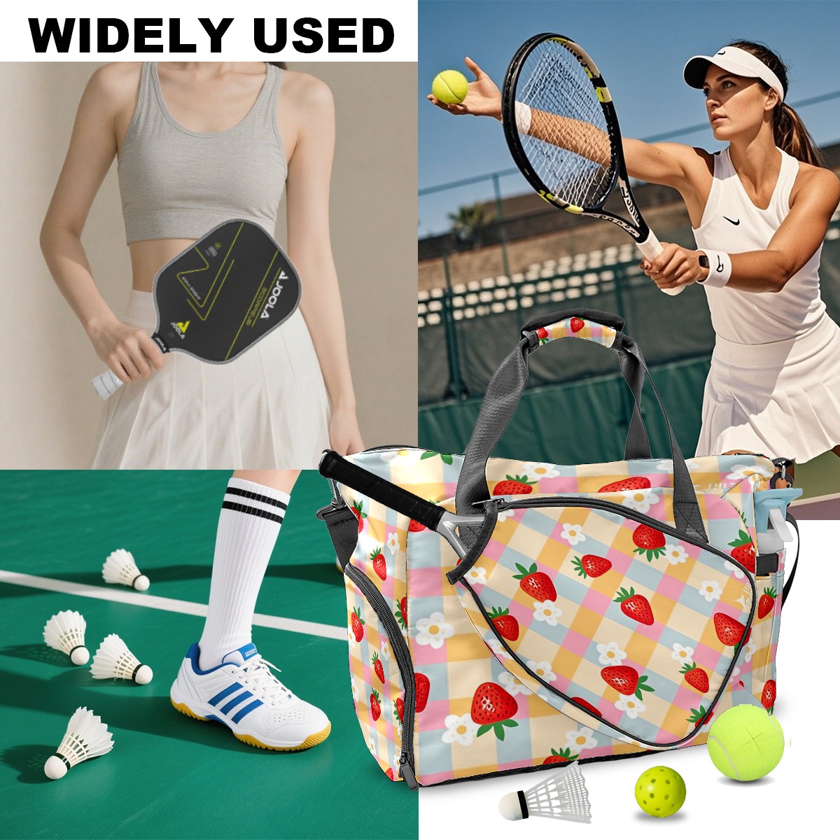 Pickleball Tote Bag Carryall for Paddles Balls and Accessories, Portable Lightweight Gear Bag for Players(Colorful Strawberry)