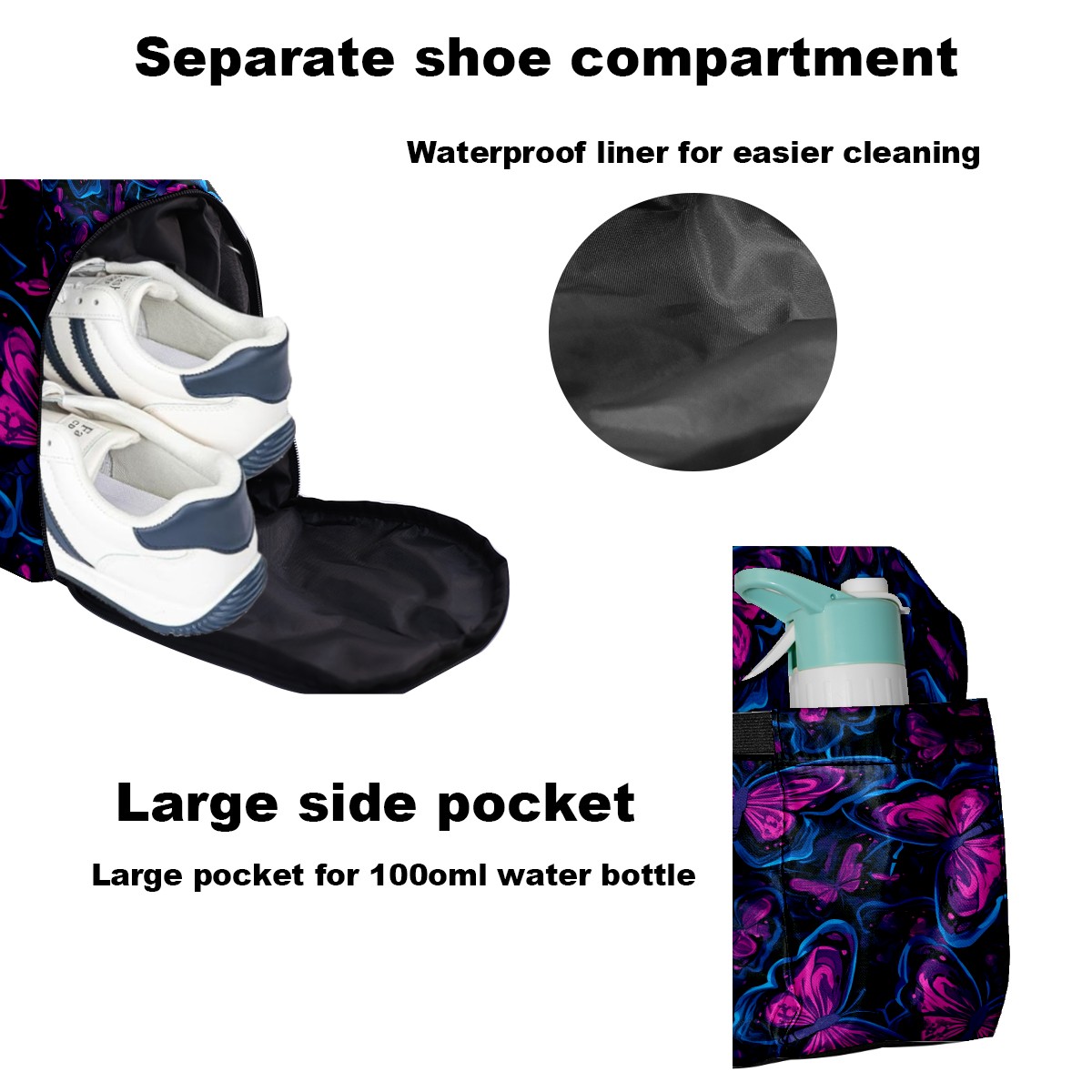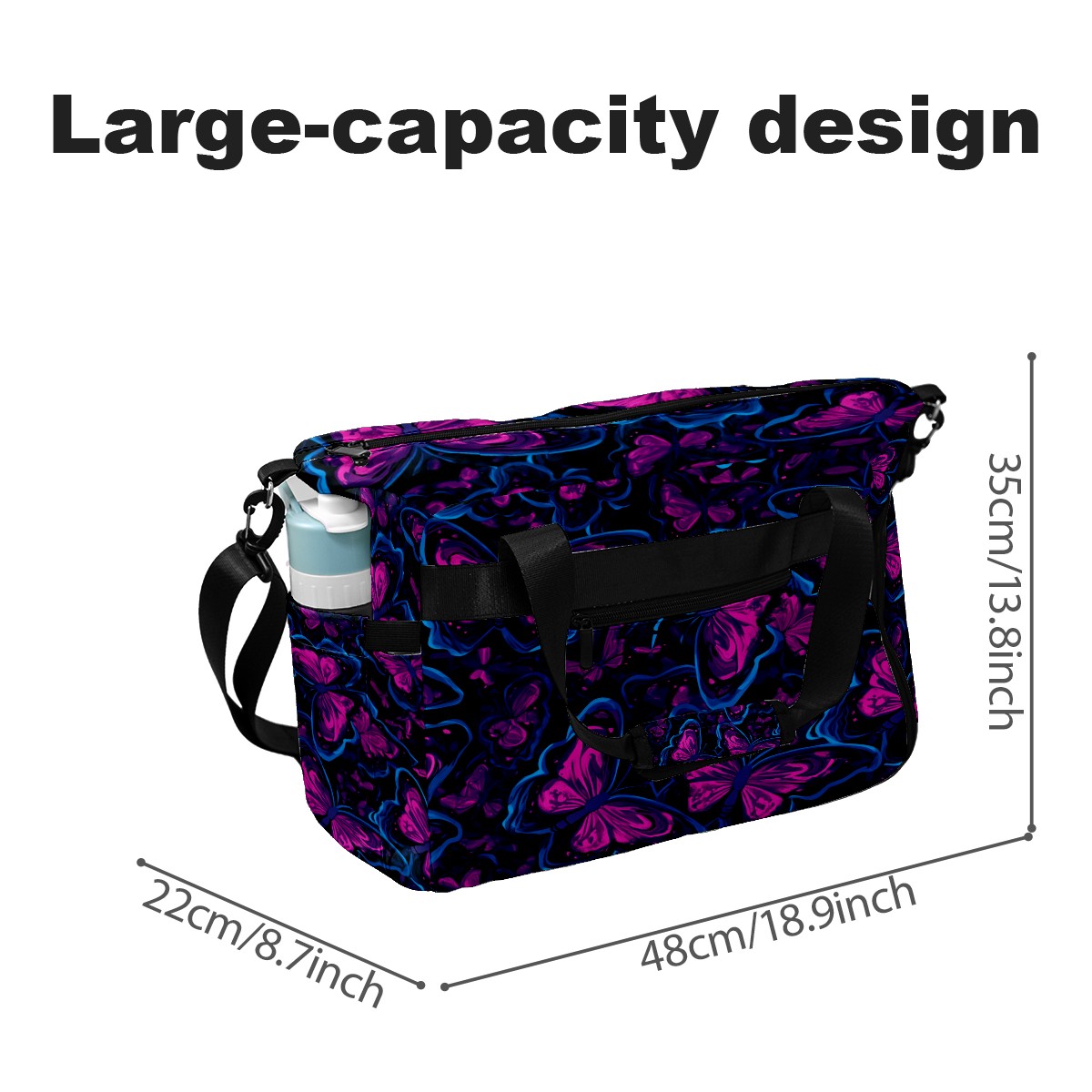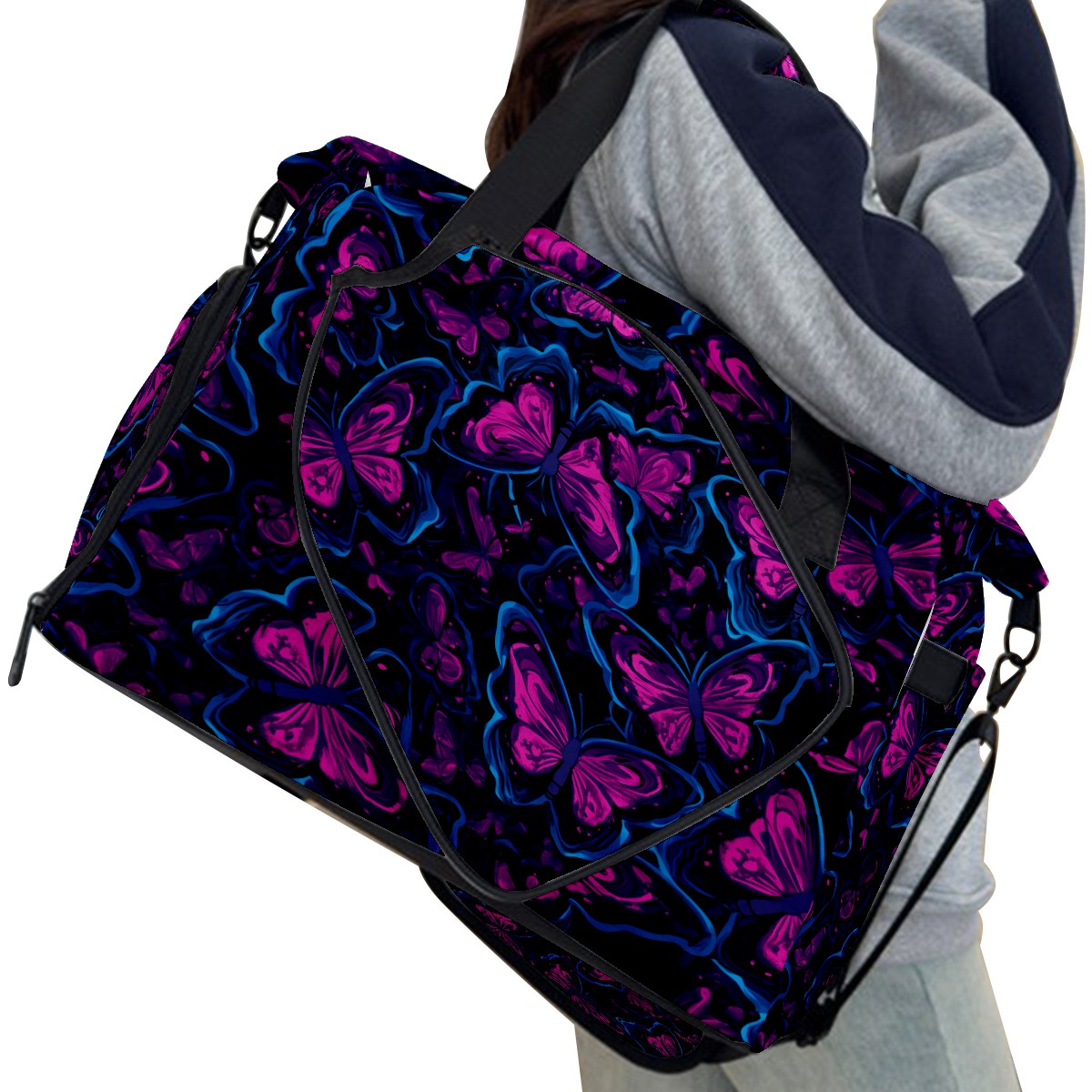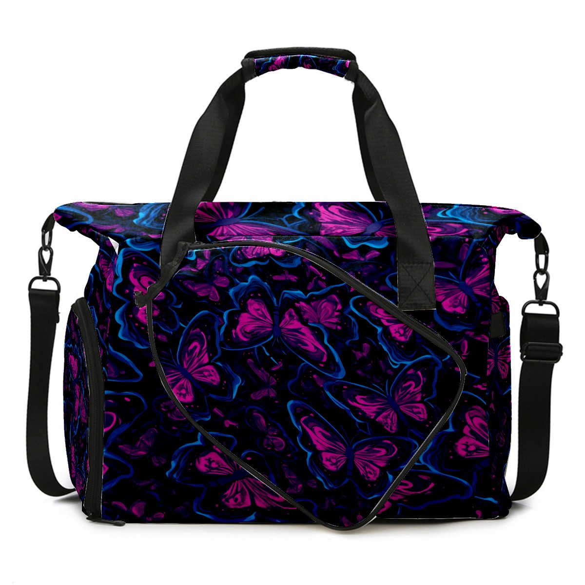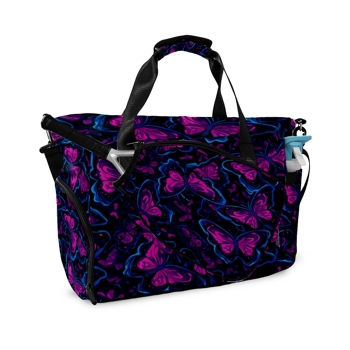 Pickleball Tote Bag Carryall for Paddles Balls and Accessories, Portable Lightweight Gear Bag for Players(Blue And Pink Butterflies)