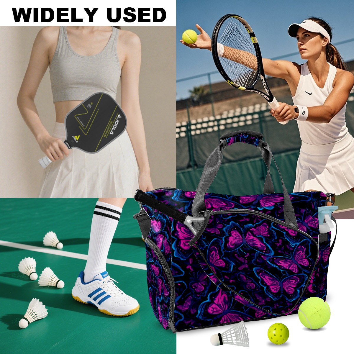 <p>Meet your ultimate court companion – the premium pickleball bag designed for players who demand durability and smart organization. Whether you're heading to a local tournament or a casual game with friends, our meticulously crafted bag keeps your gear secure, accessible, and tournament-ready.</p> <p><b>Built for the Active Lifestyle:</b></p> <p>From casual pickleball games to competitive leagues, this bag adapts to your needs. Store paddles, balls, towels, water bottles, and phones in intelligently placed pockets. The nylon fabric construction withstands court abrasions and daily use season after season.</p>