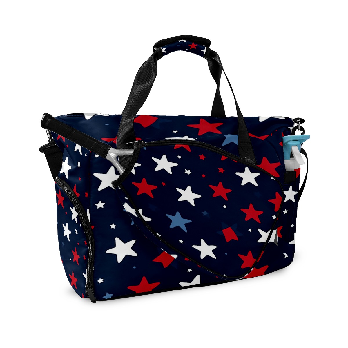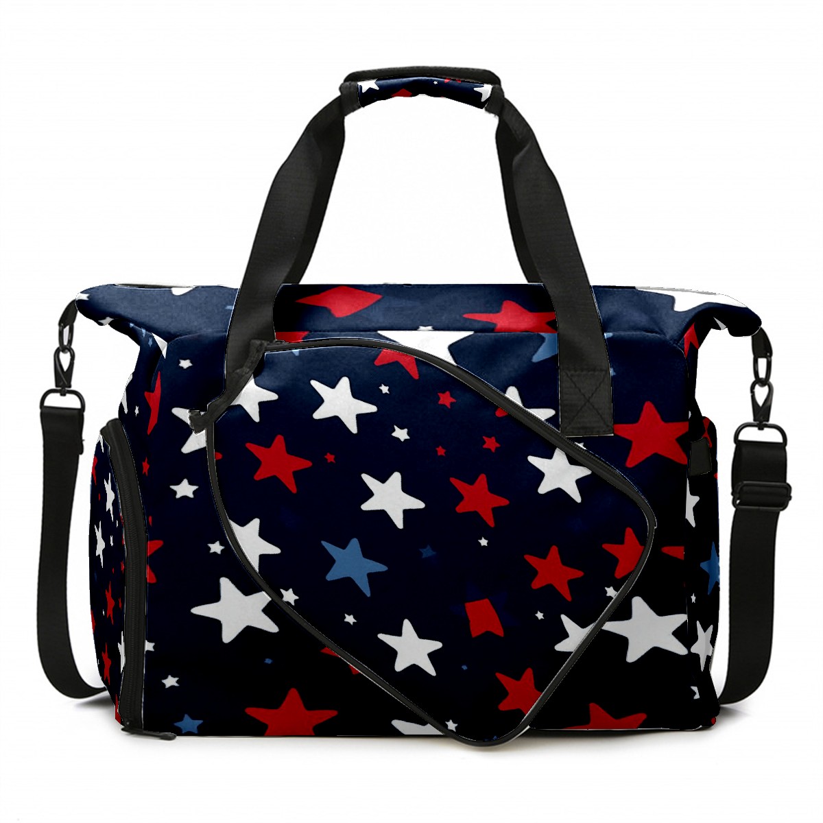 Pickleball Tote Bag Carryall for Paddles Balls and Accessories, Portable Lightweight Gear Bag for Players(Red White And Blue Stars)