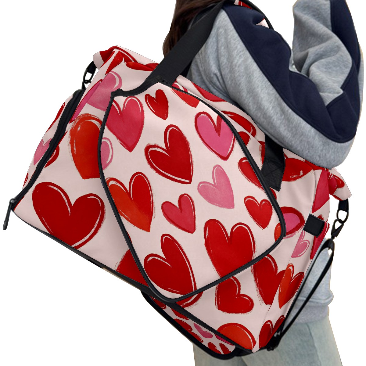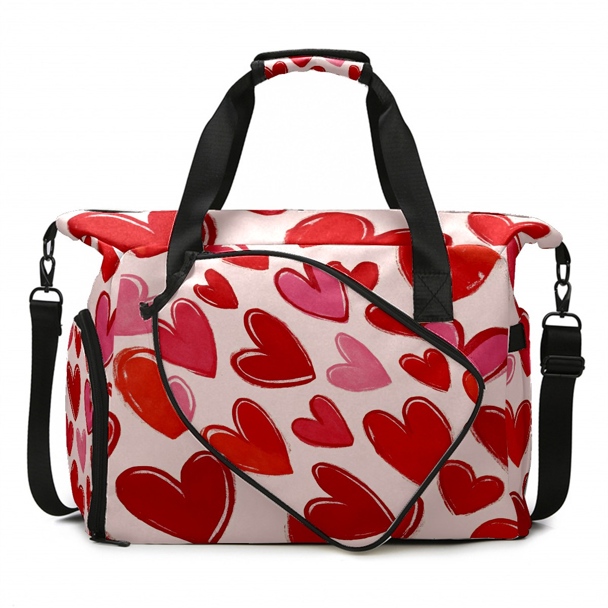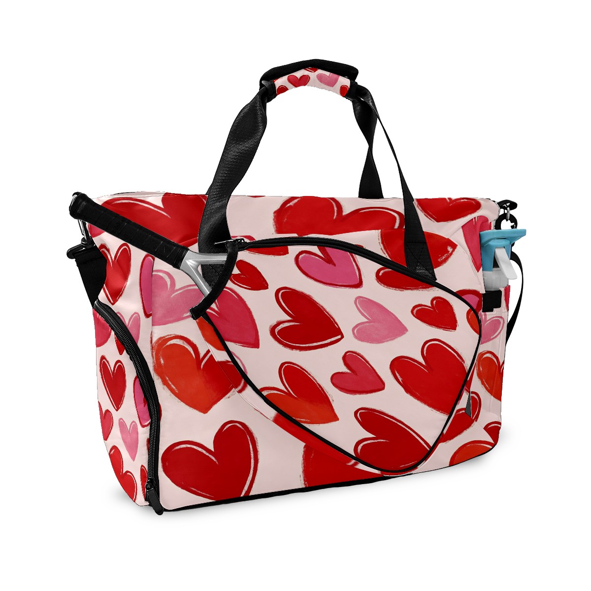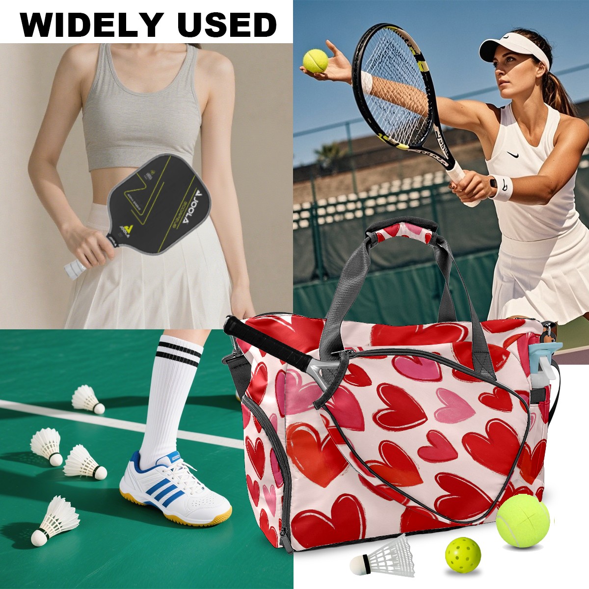 Pickleball Tote Bag Carryall for Paddles Balls and Accessories, Portable Lightweight Gear Bag for Players(Red And Pink Hearts)