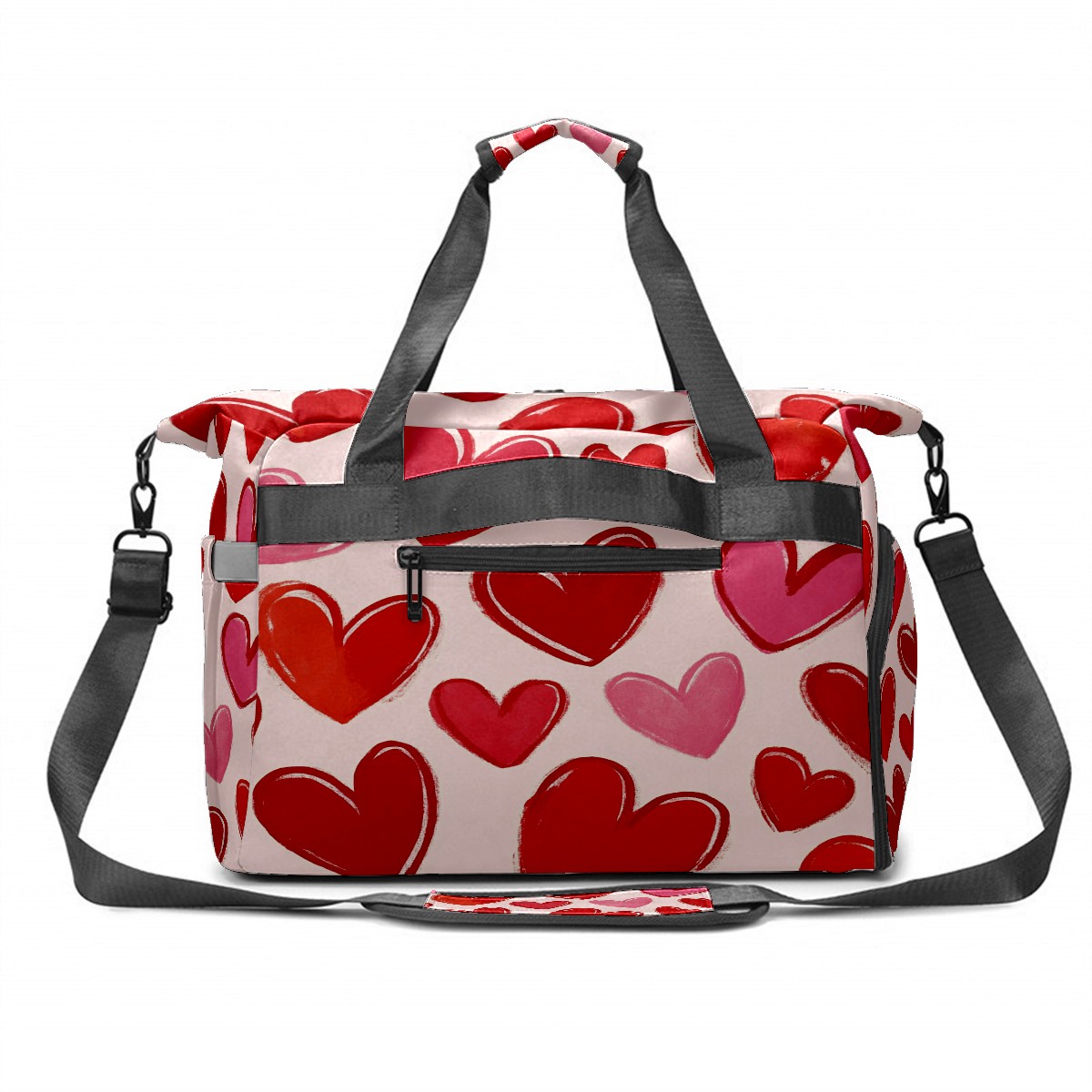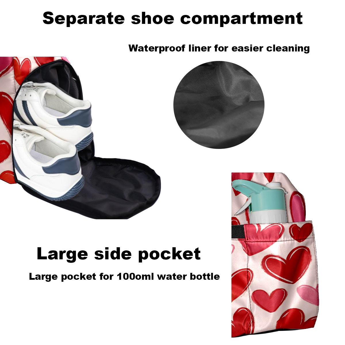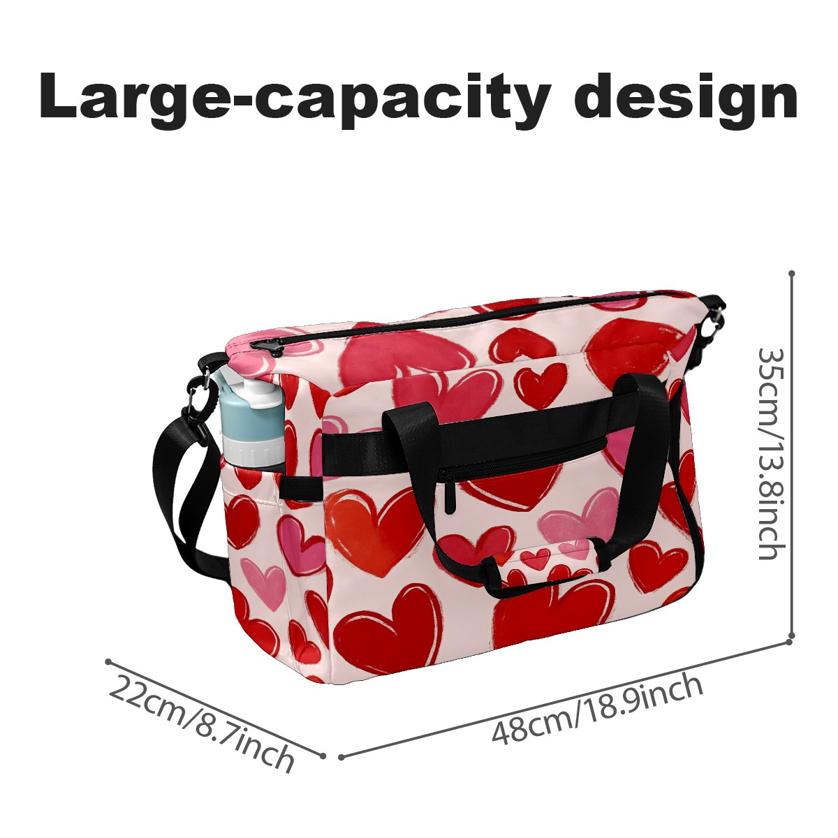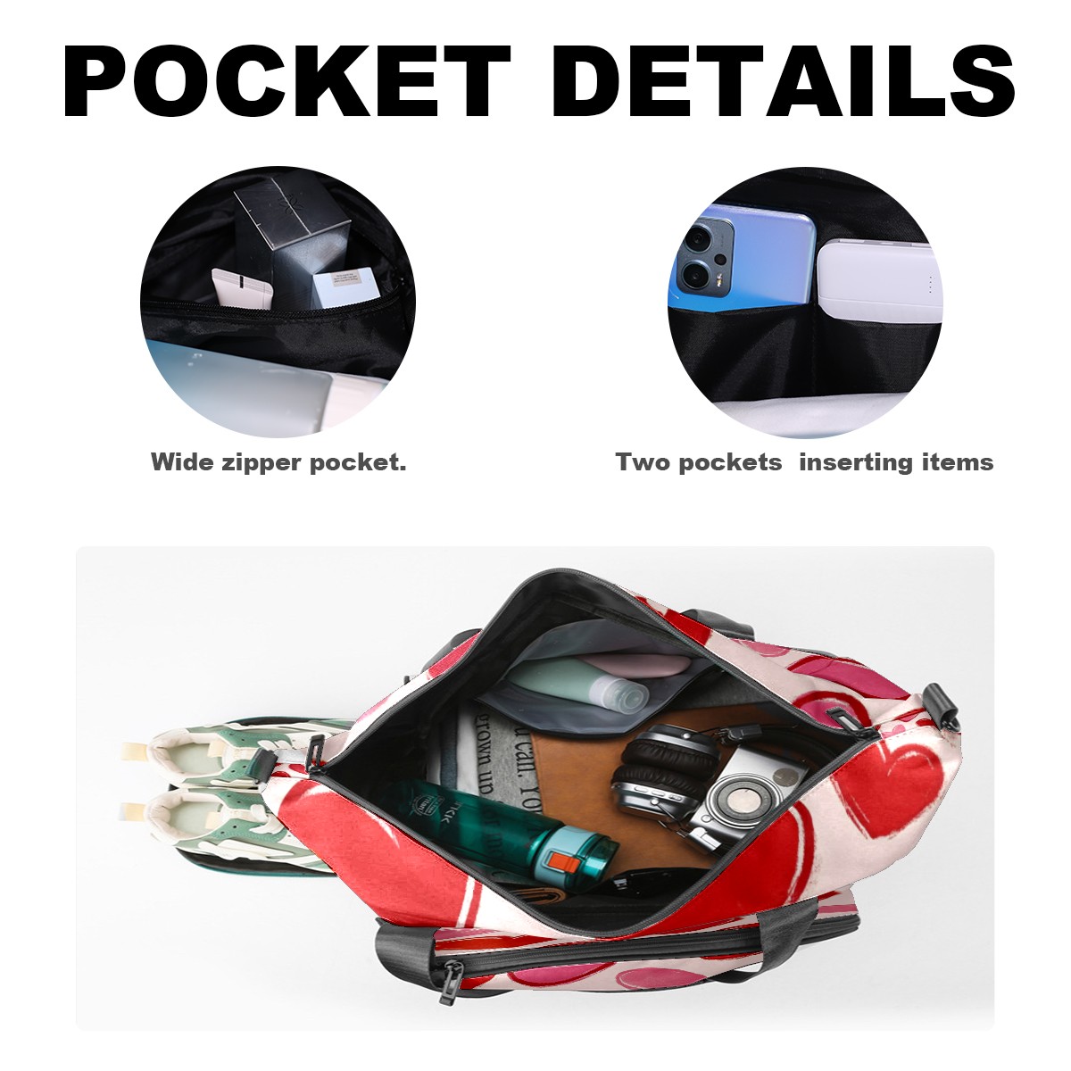 Pickleball Tote Bag Carryall for Paddles Balls and Accessories, Portable Lightweight Gear Bag for Players(Red And Pink Hearts)