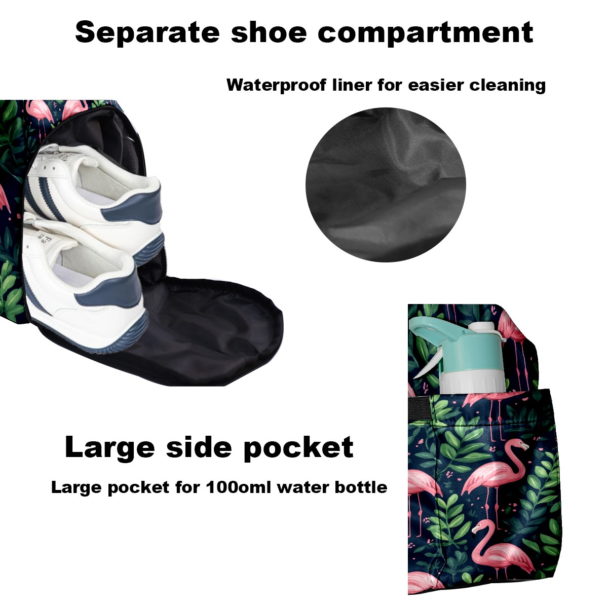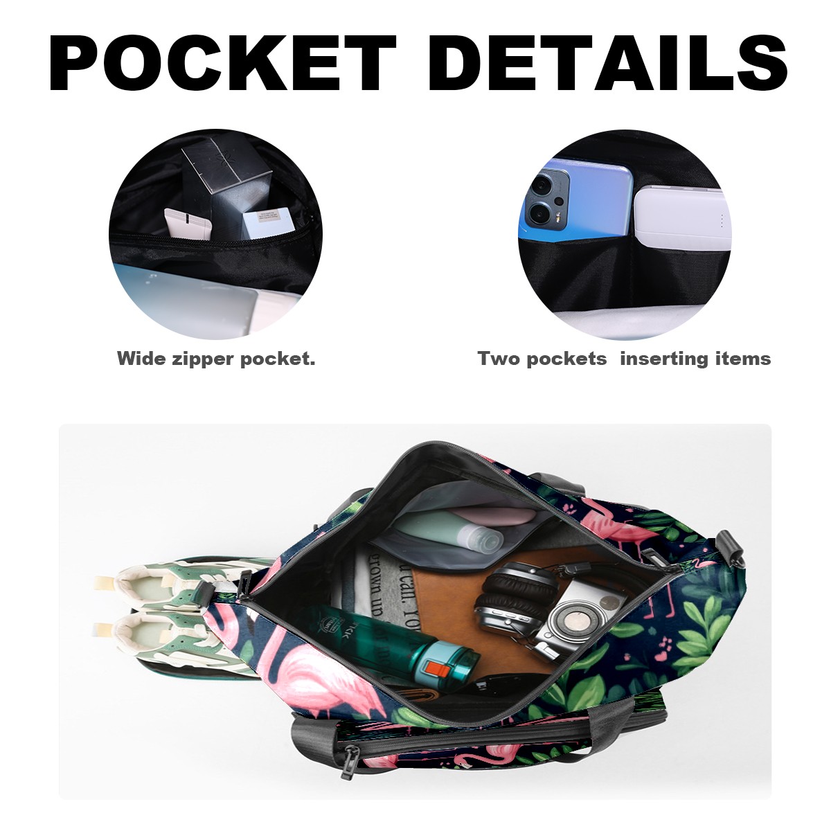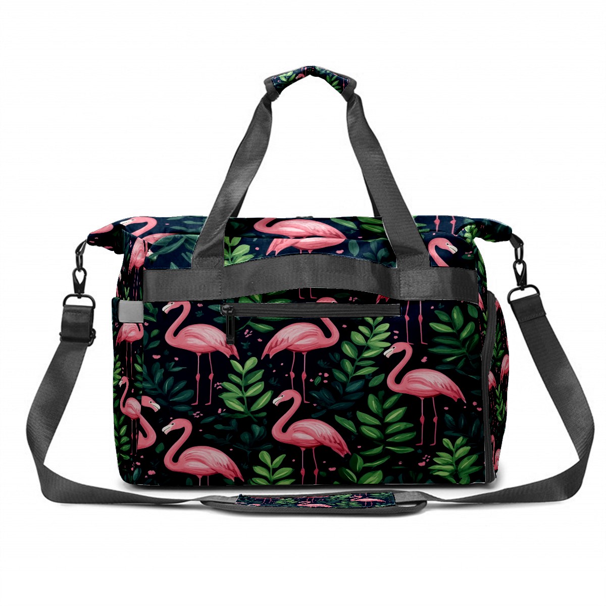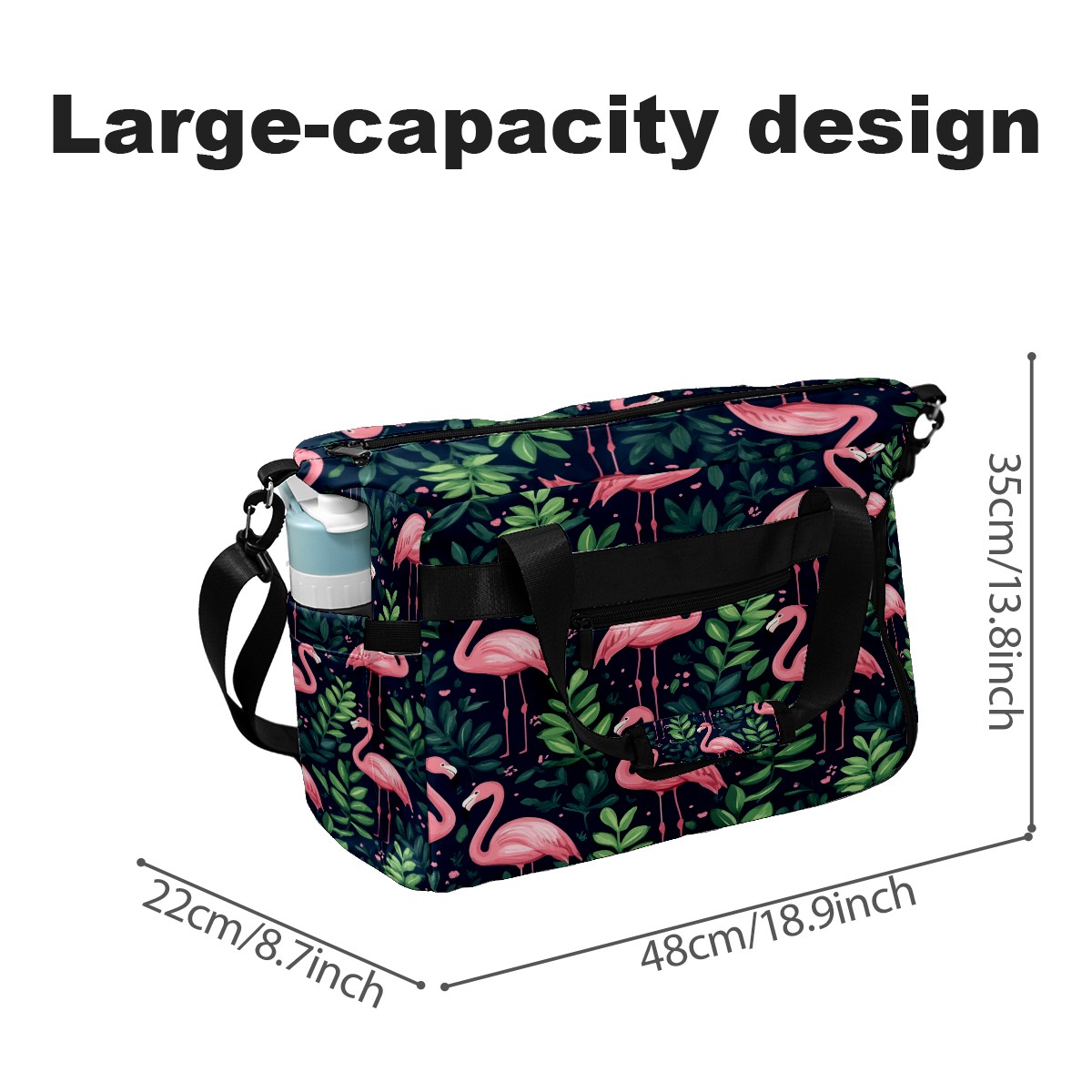 Pickleball Tote Bag Carryall for Paddles Balls and Accessories, Portable Lightweight Gear Bag for Players(Pink Flamingos And Green Leaves)