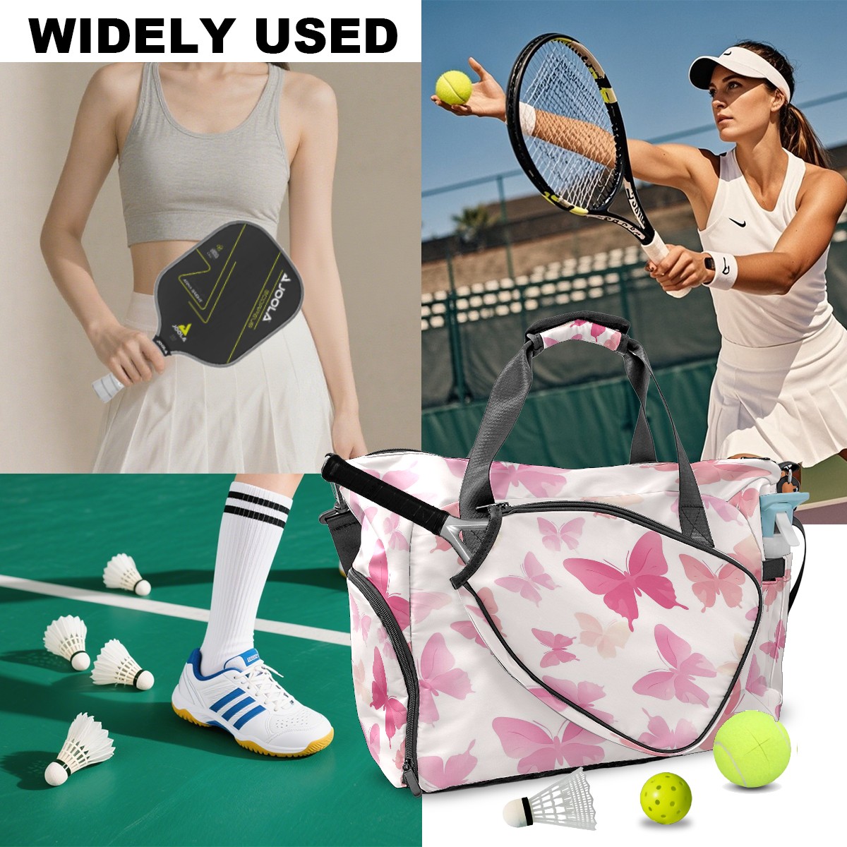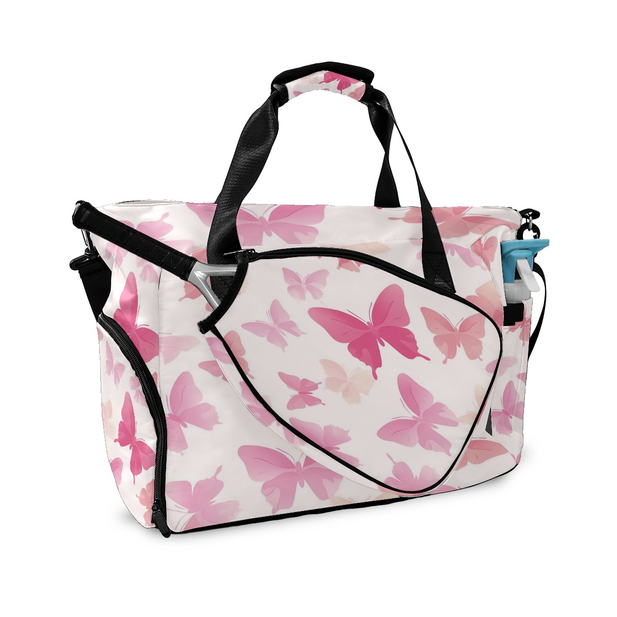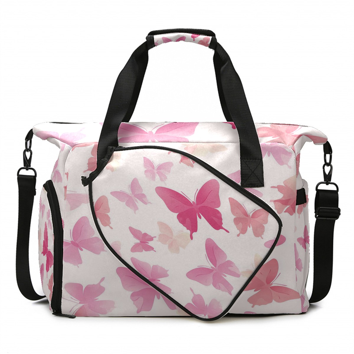 Pickleball Tote Bag Carryall for Paddles Balls and Accessories, Portable Lightweight Gear Bag for Players(Light Pink Butterflies)