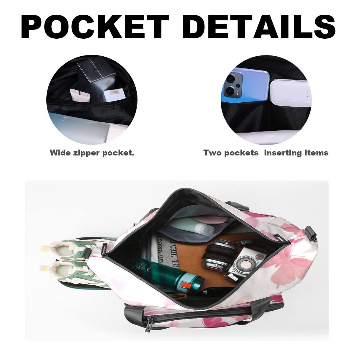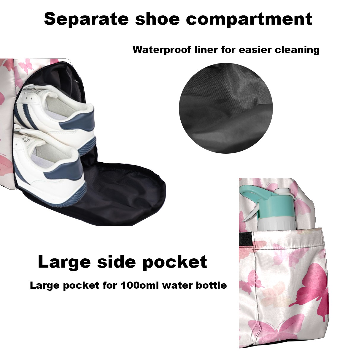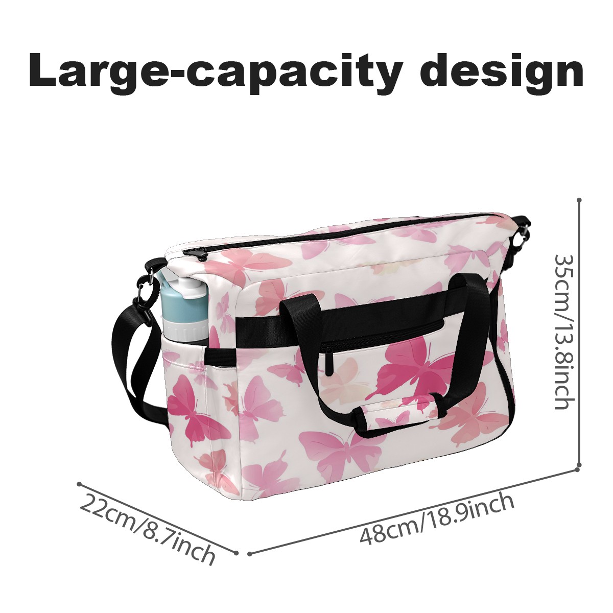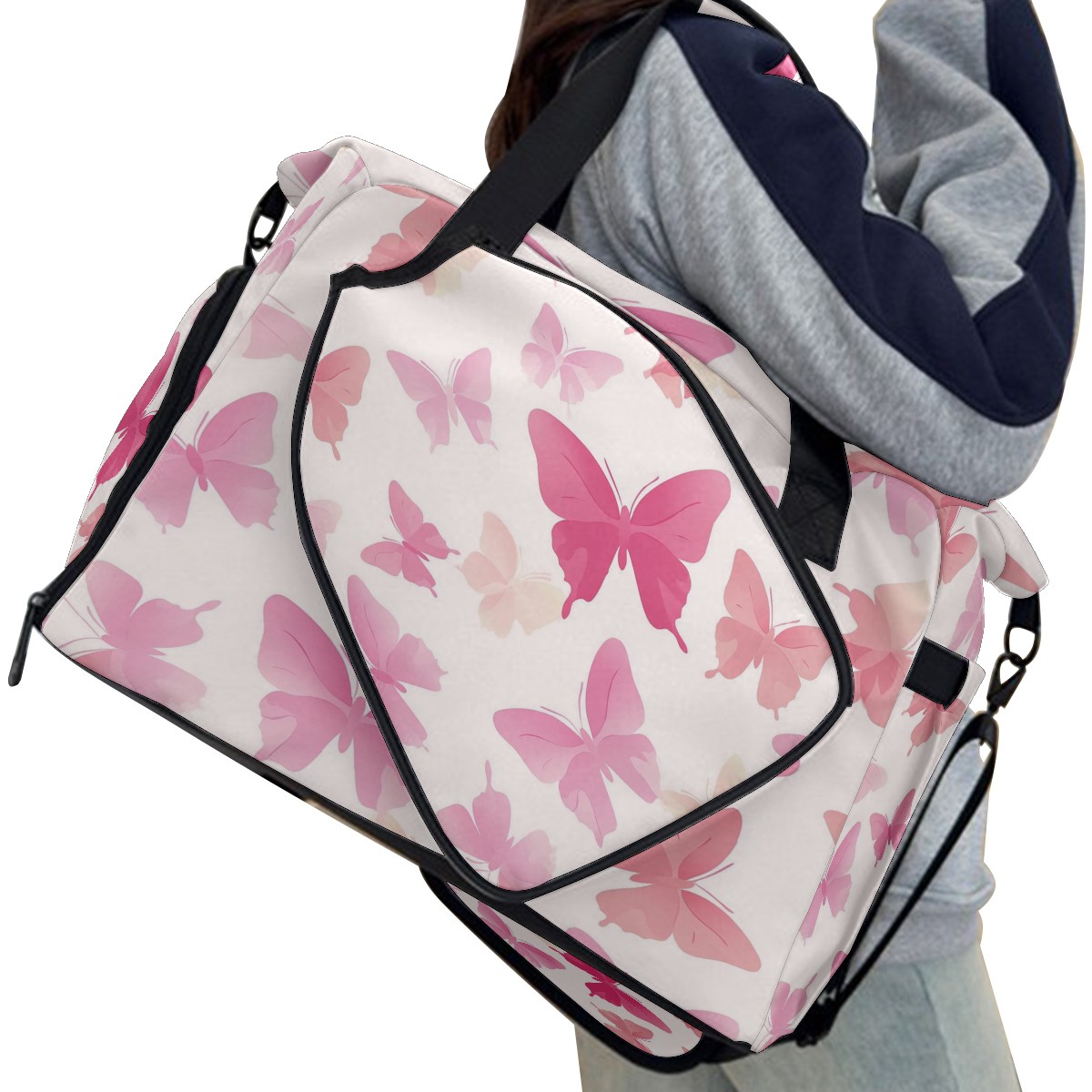 Pickleball Tote Bag Carryall for Paddles Balls and Accessories, Portable Lightweight Gear Bag for Players(Light Pink Butterflies)