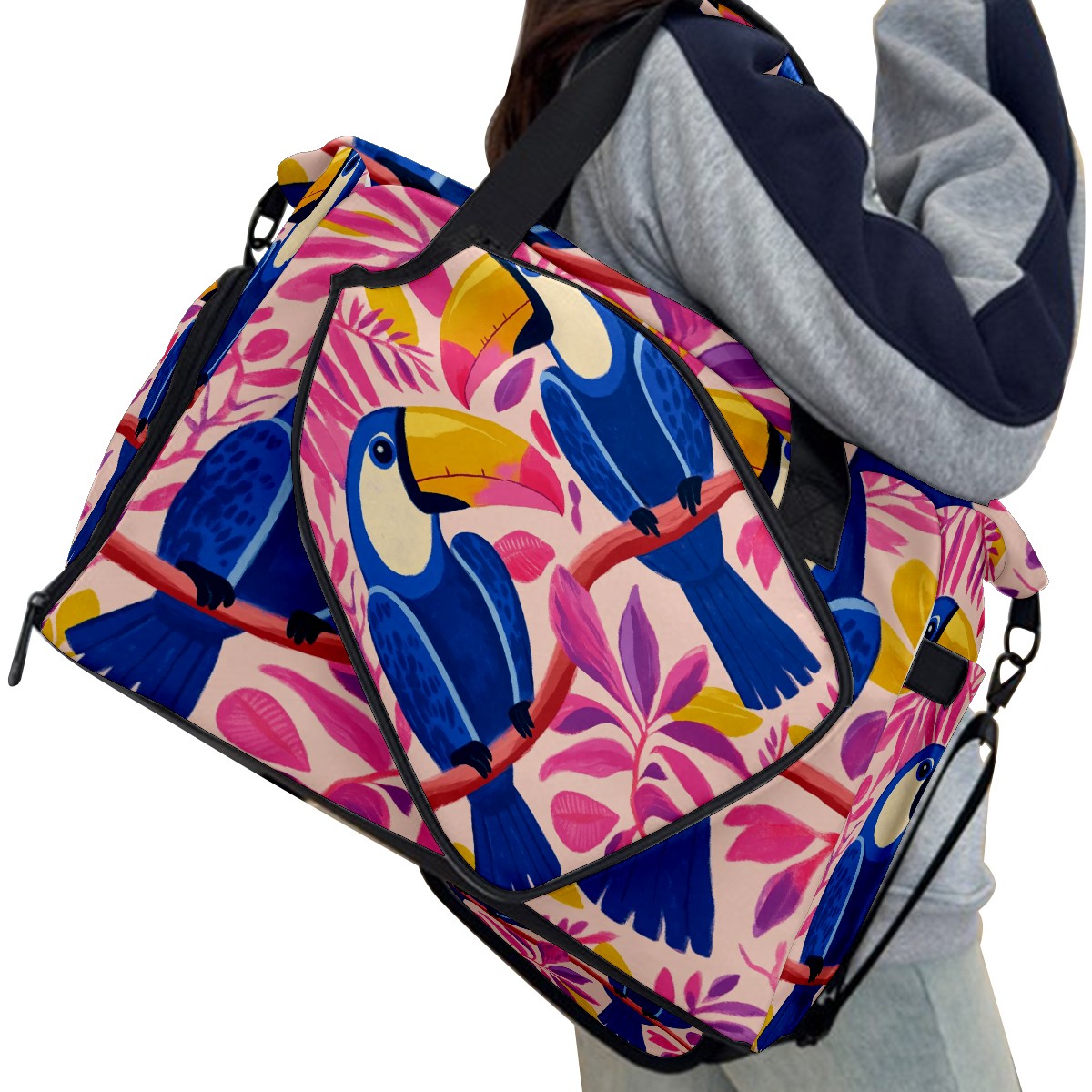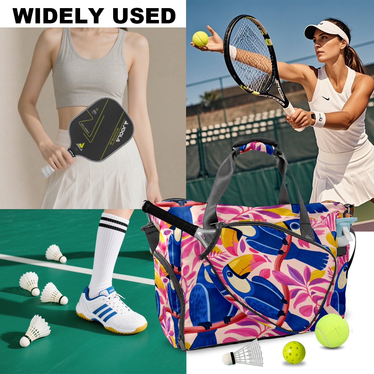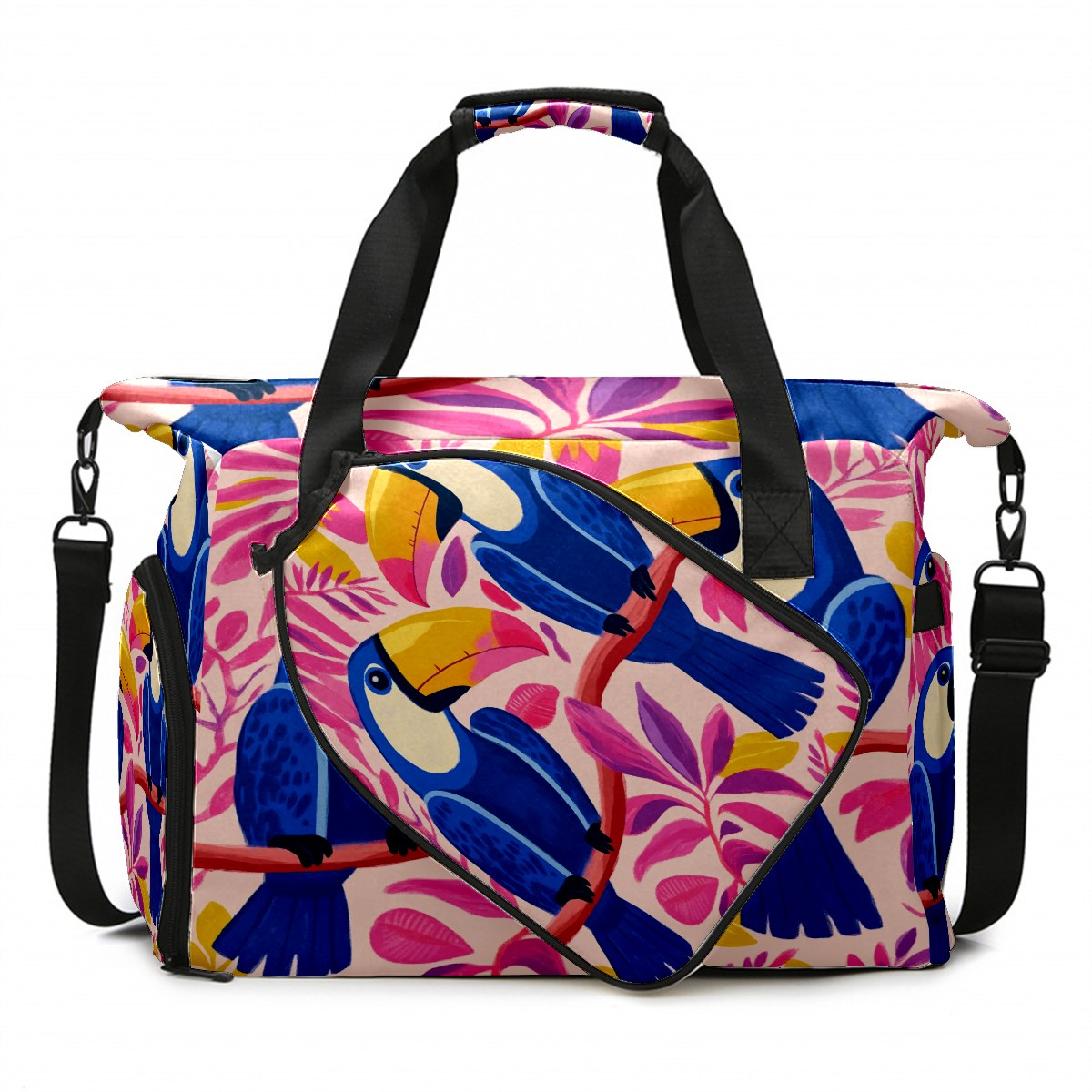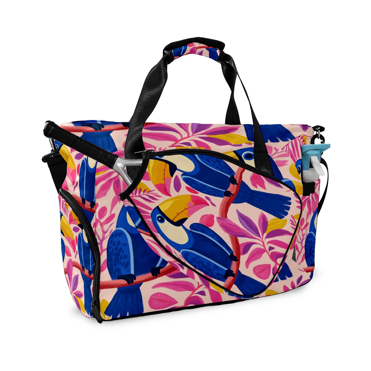 Pickleball Tote Bag Carryall for Paddles Balls and Accessories, Portable Lightweight Gear Bag for Players(Blue And Pink Toucans)