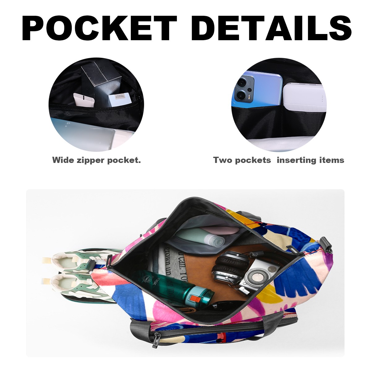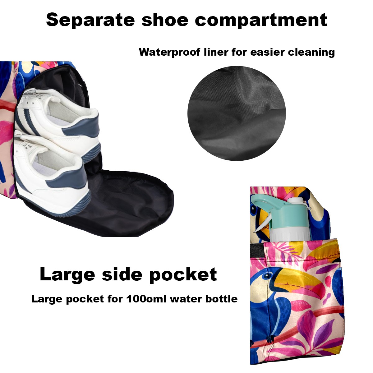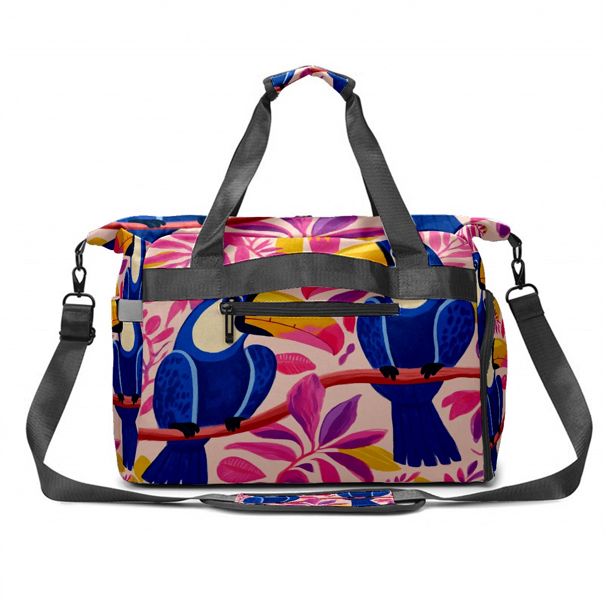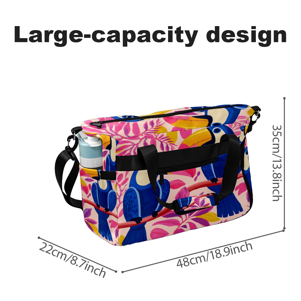 Pickleball Tote Bag Carryall for Paddles Balls and Accessories, Portable Lightweight Gear Bag for Players(Blue And Pink Toucans)