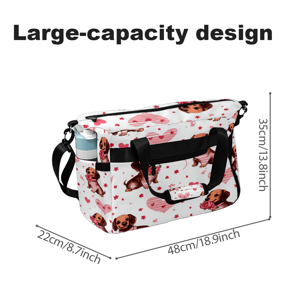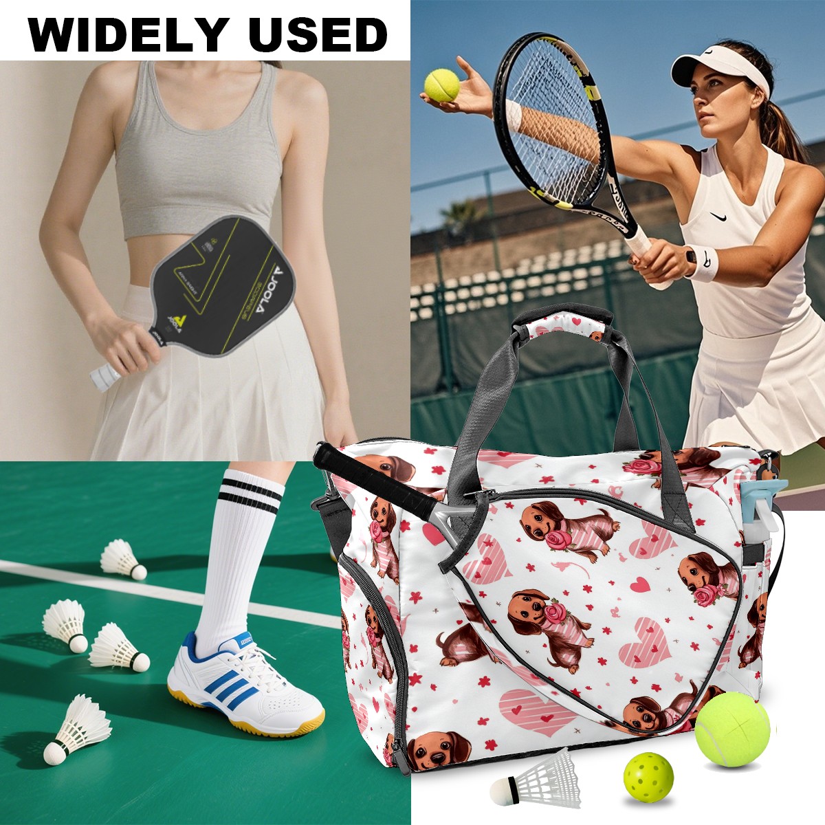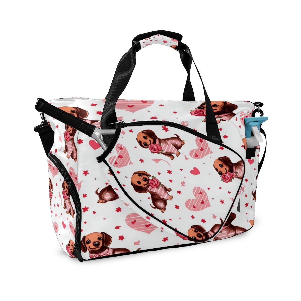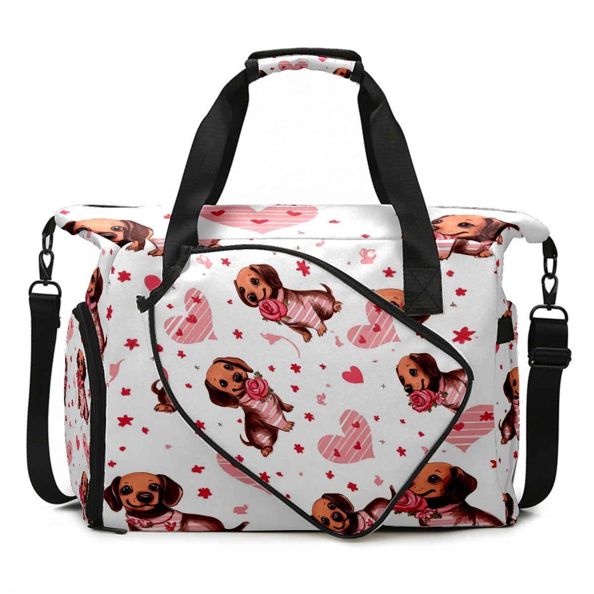 Pickleball Tote Bag Carryall for Paddles Balls and Accessories, Portable Lightweight Gear Bag for Players(Brown Dachshund Puppies)