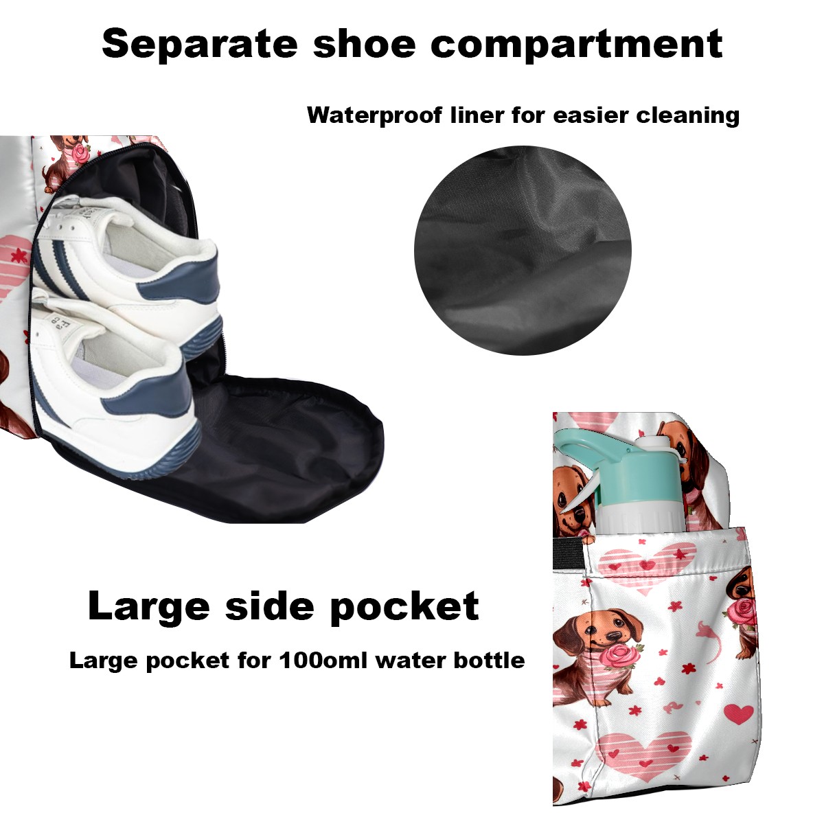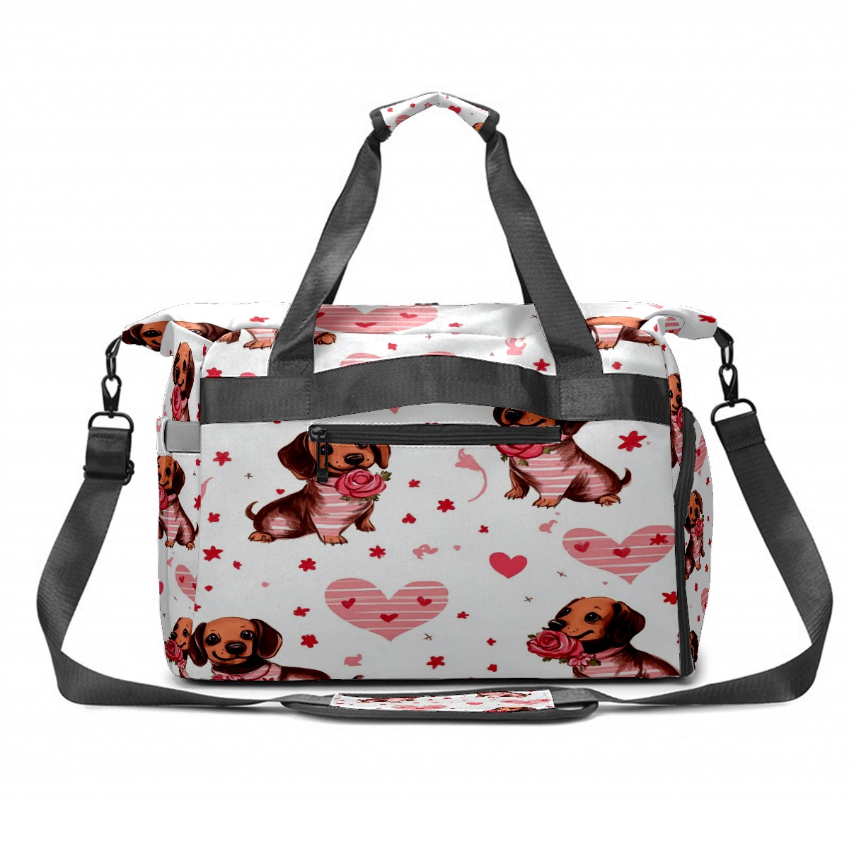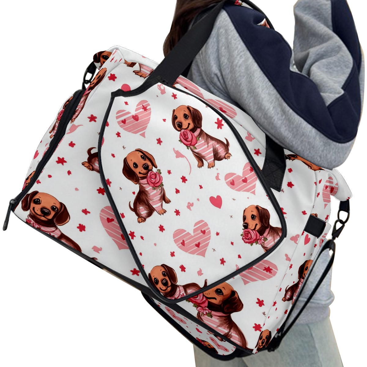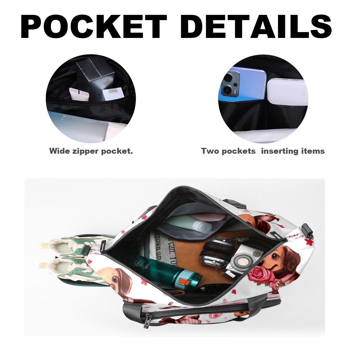 Pickleball Tote Bag Carryall for Paddles Balls and Accessories, Portable Lightweight Gear Bag for Players(Brown Dachshund Puppies)