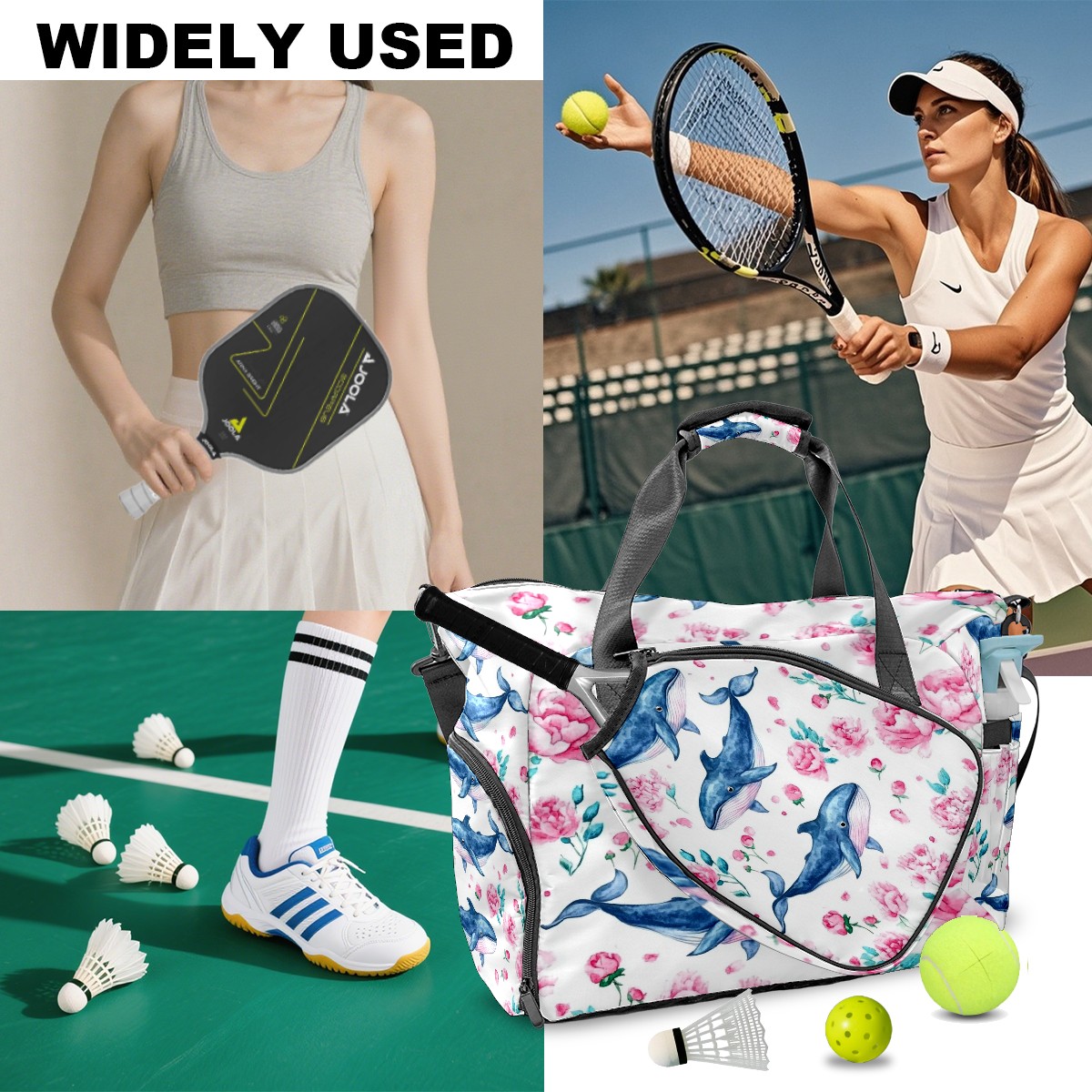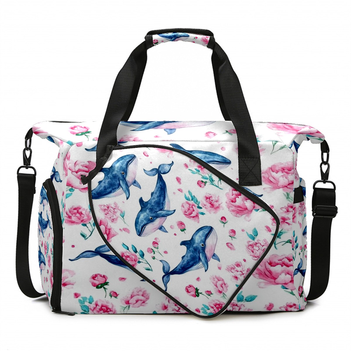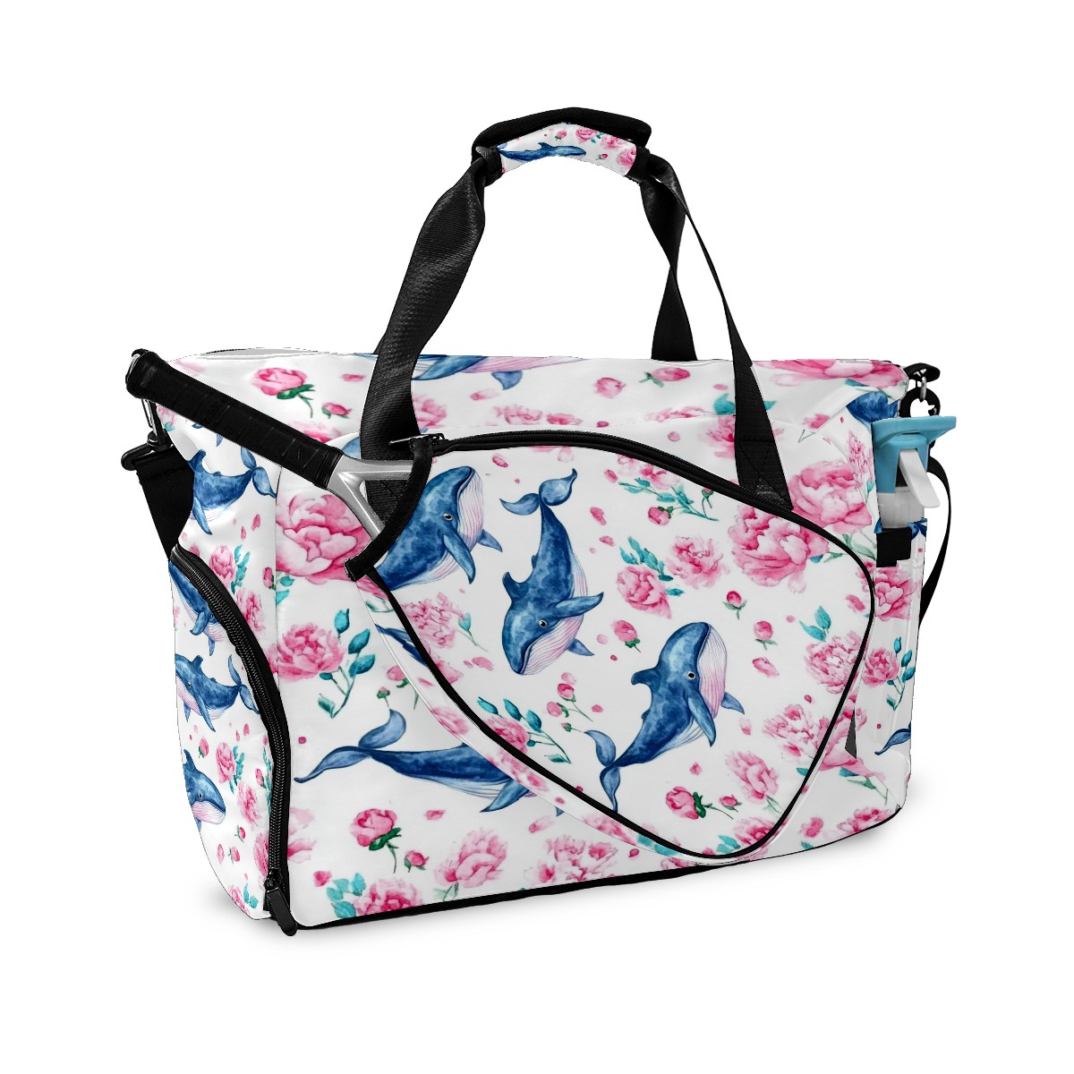 Pickleball Tote Bag Carryall for Paddles Balls and Accessories, Portable Lightweight Gear Bag for Players(Blue Whales)