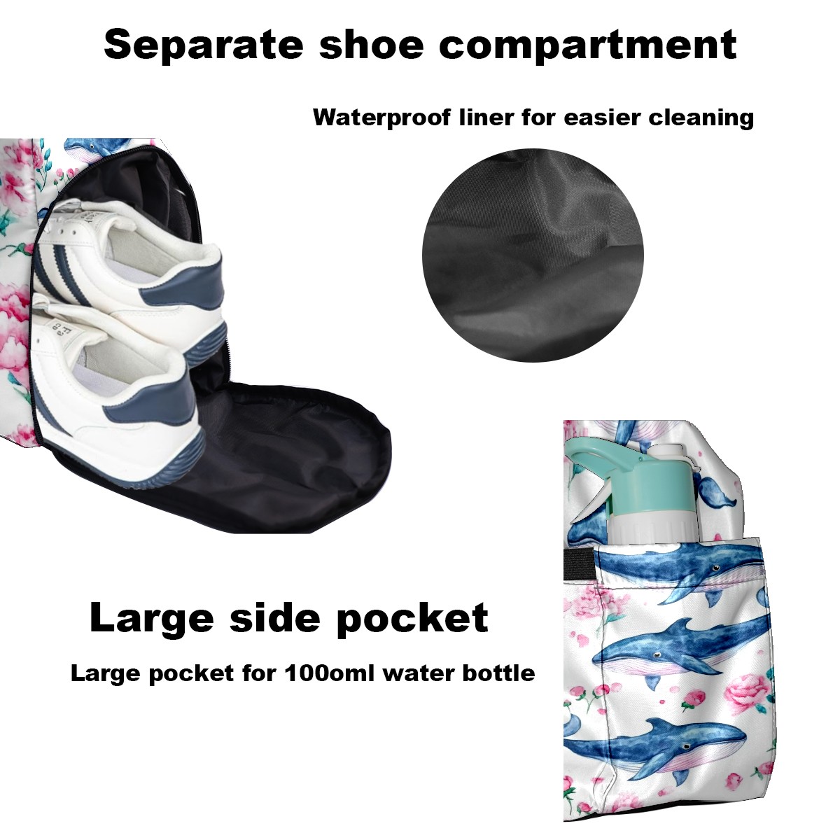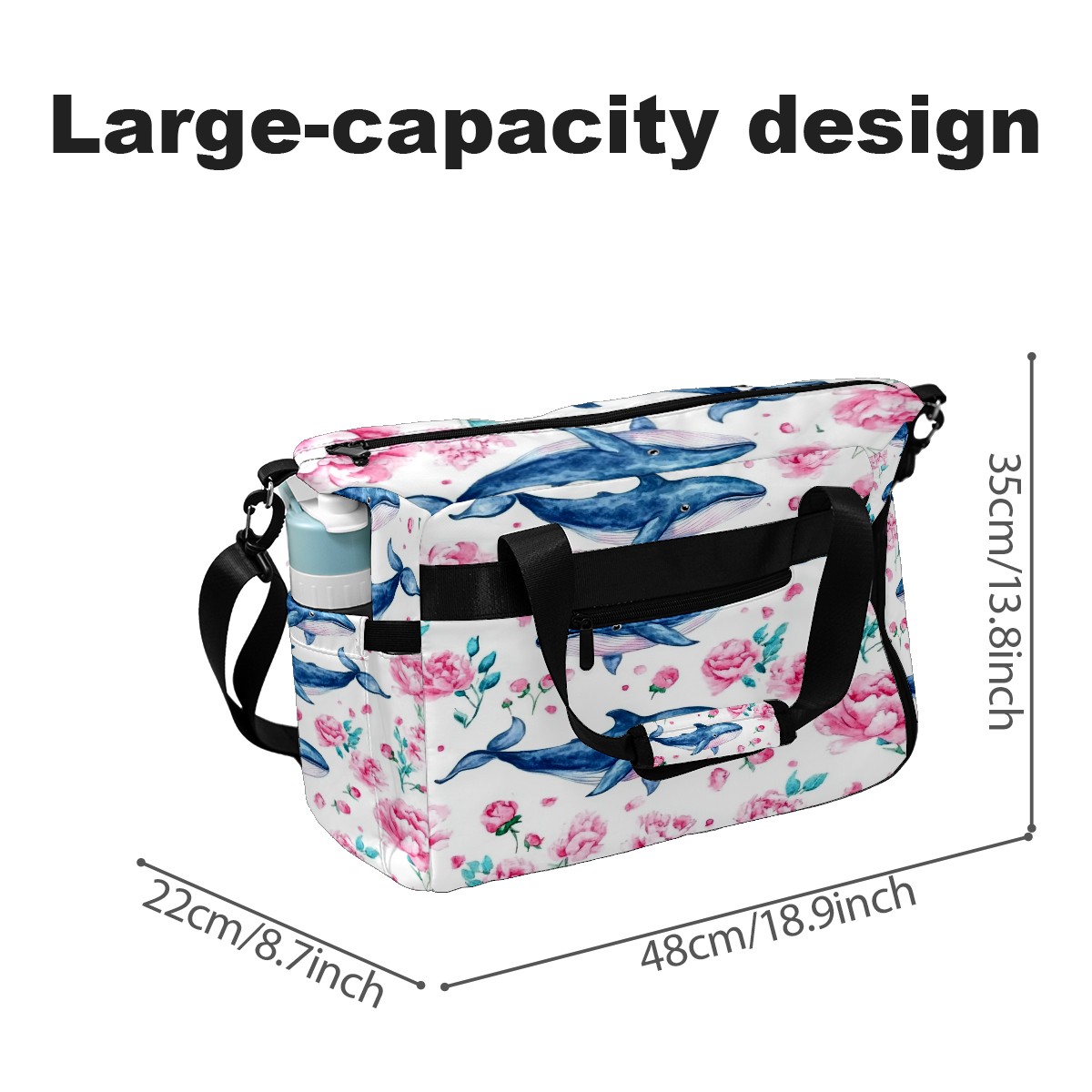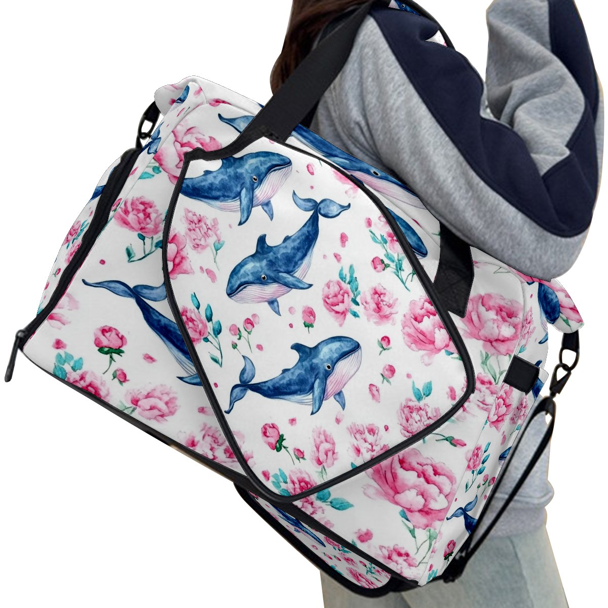 Pickleball Tote Bag Carryall for Paddles Balls and Accessories, Portable Lightweight Gear Bag for Players(Blue Whales)