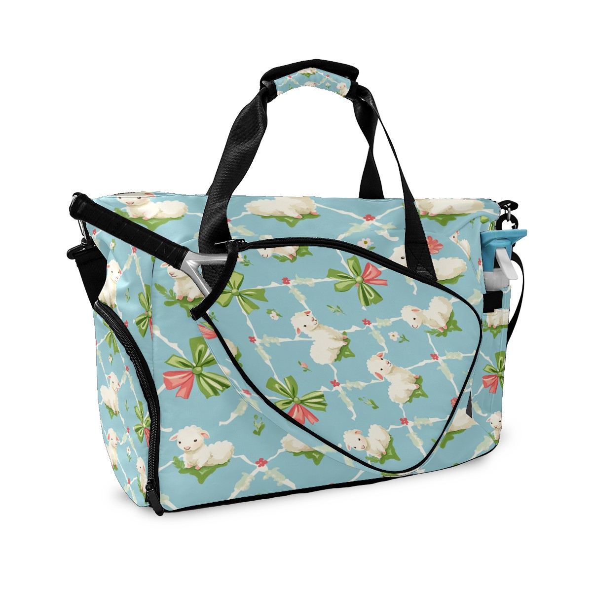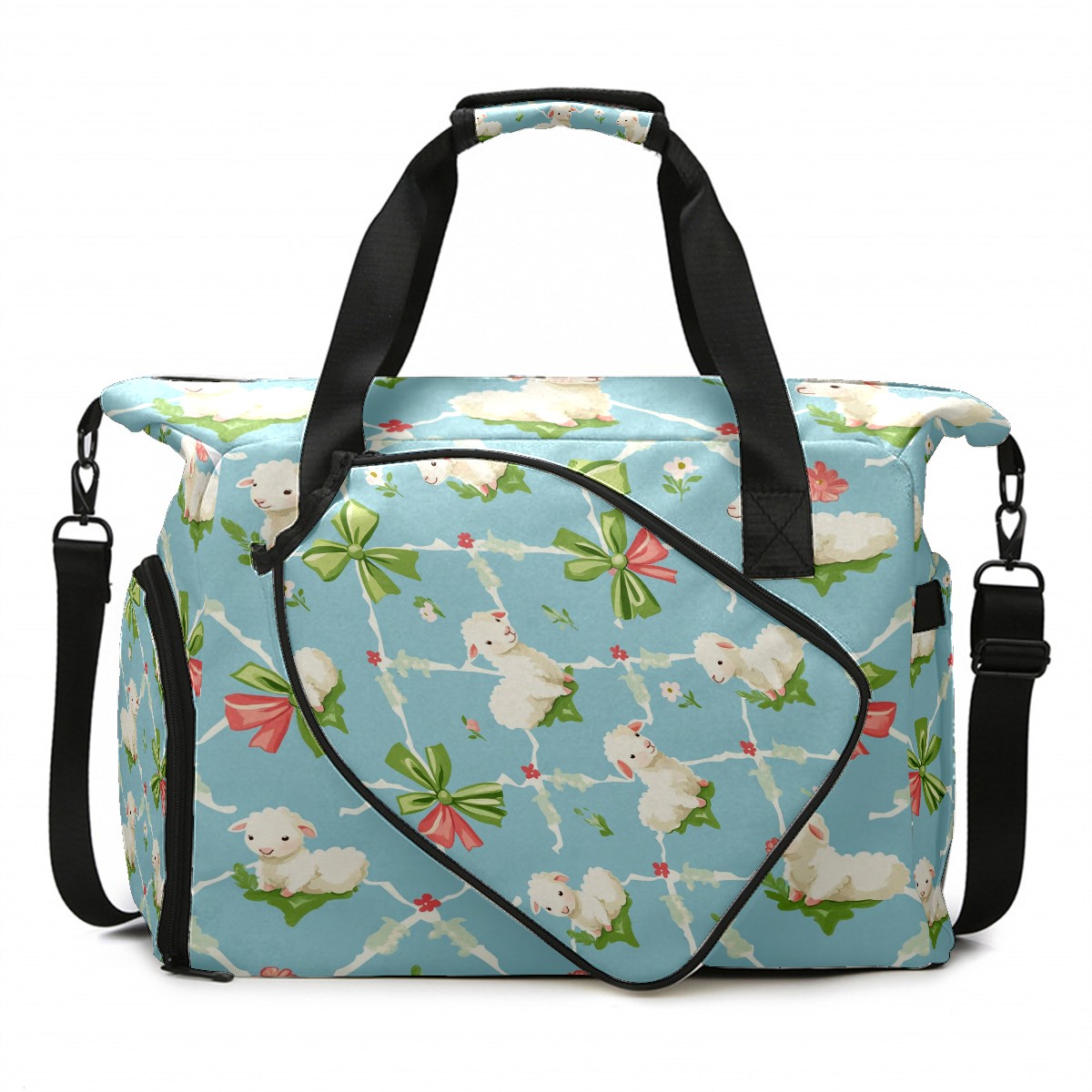 Pickleball Tote Bag Carryall for Paddles Balls and Accessories, Portable Lightweight Gear Bag for Players(Baby Lambs)