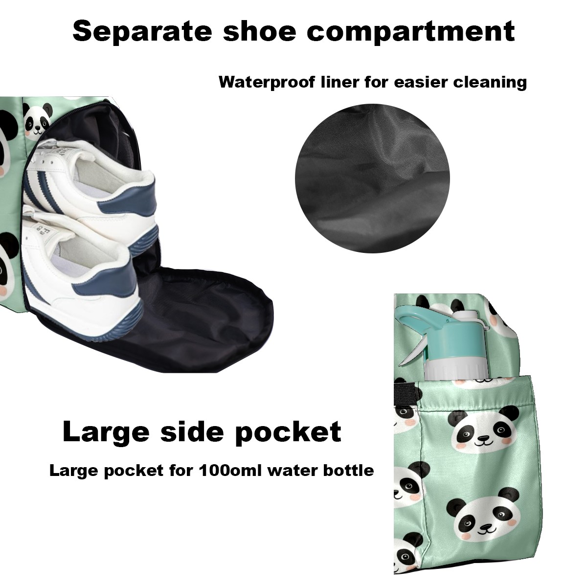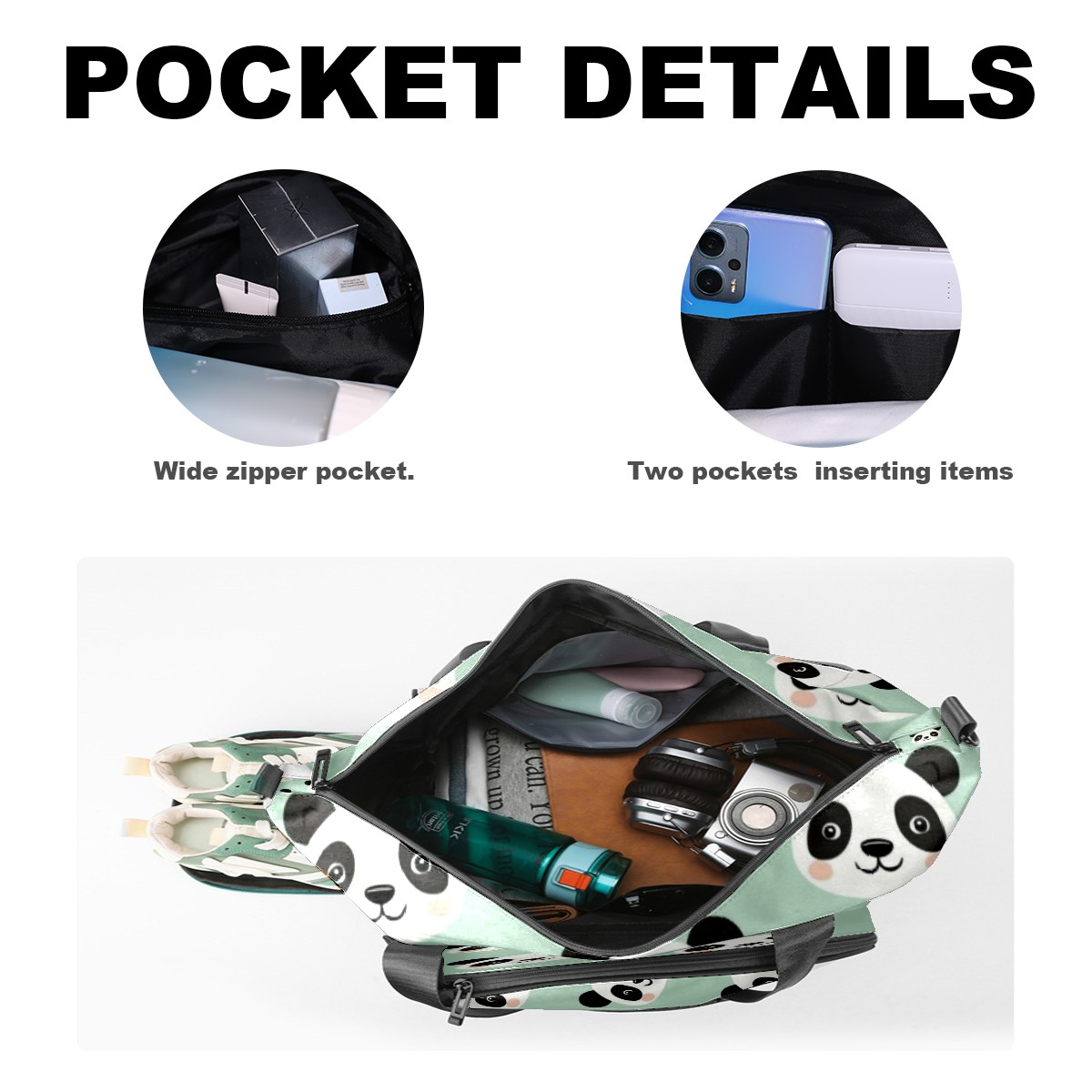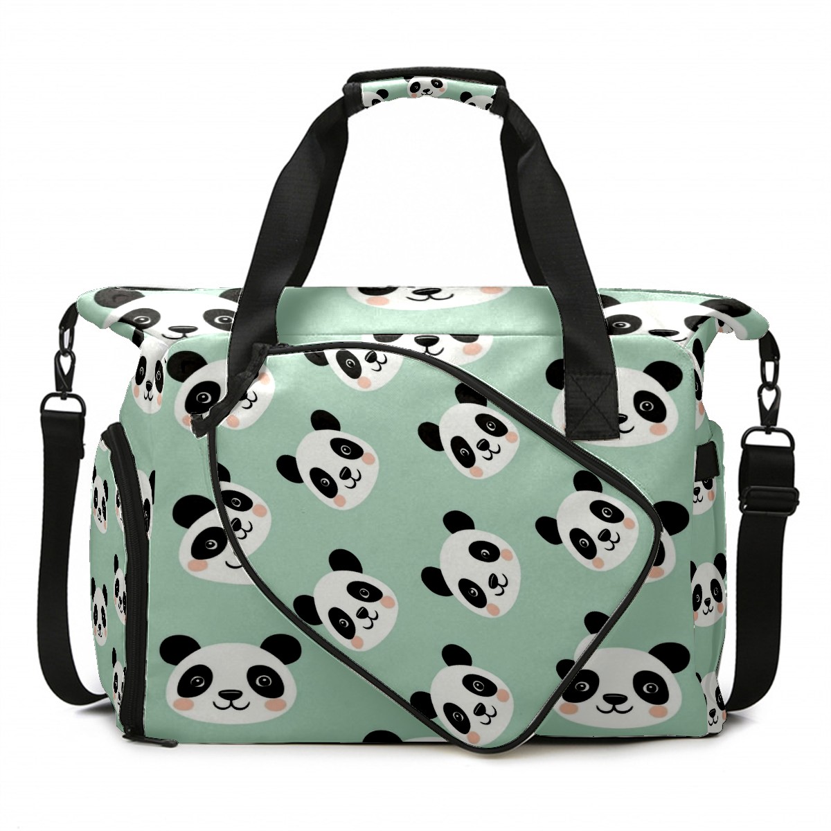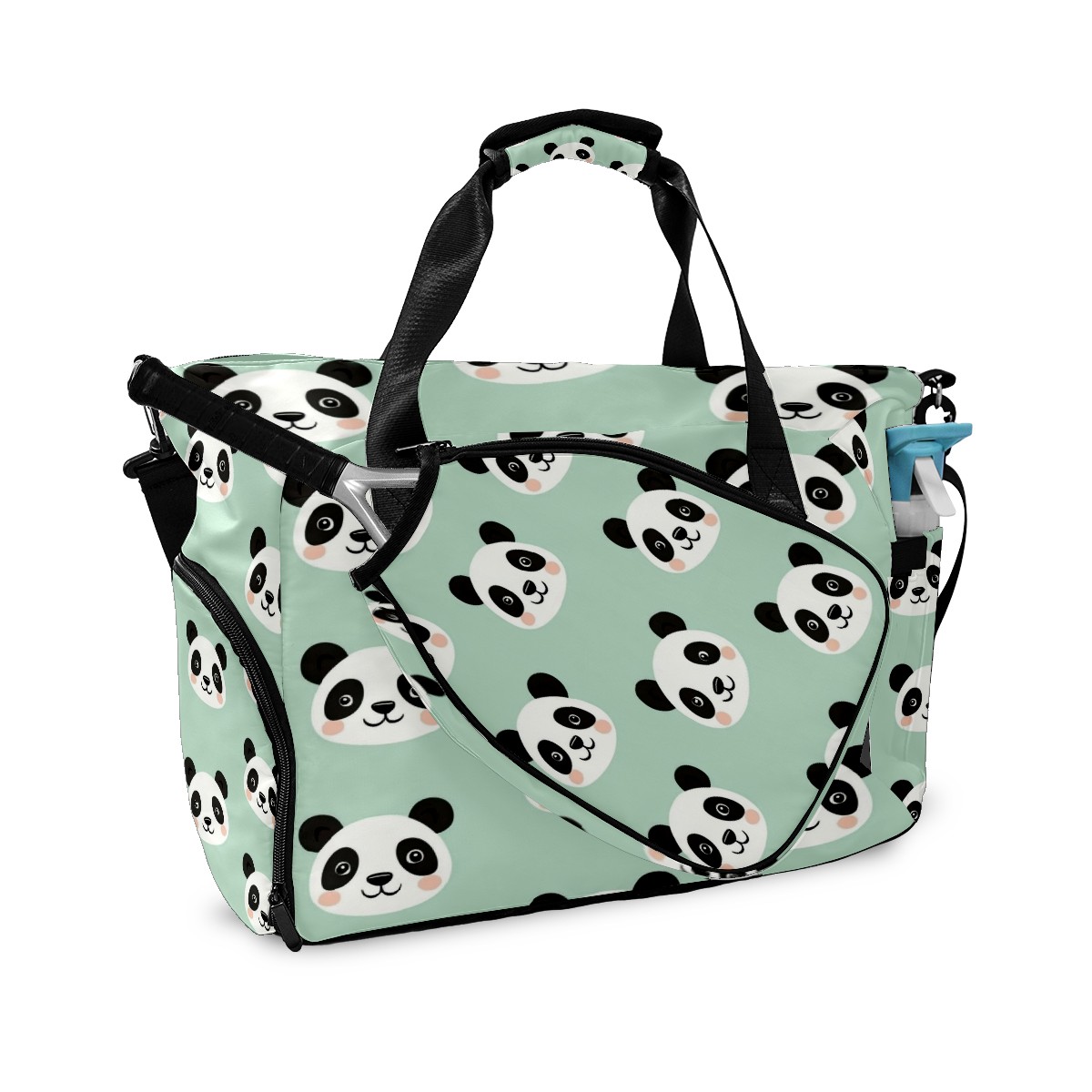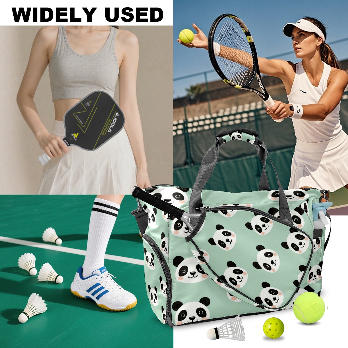 Pickleball Tote Bag Carryall for Paddles Balls and Accessories, Portable Lightweight Gear Bag for Players(Adorable Panda Faces)