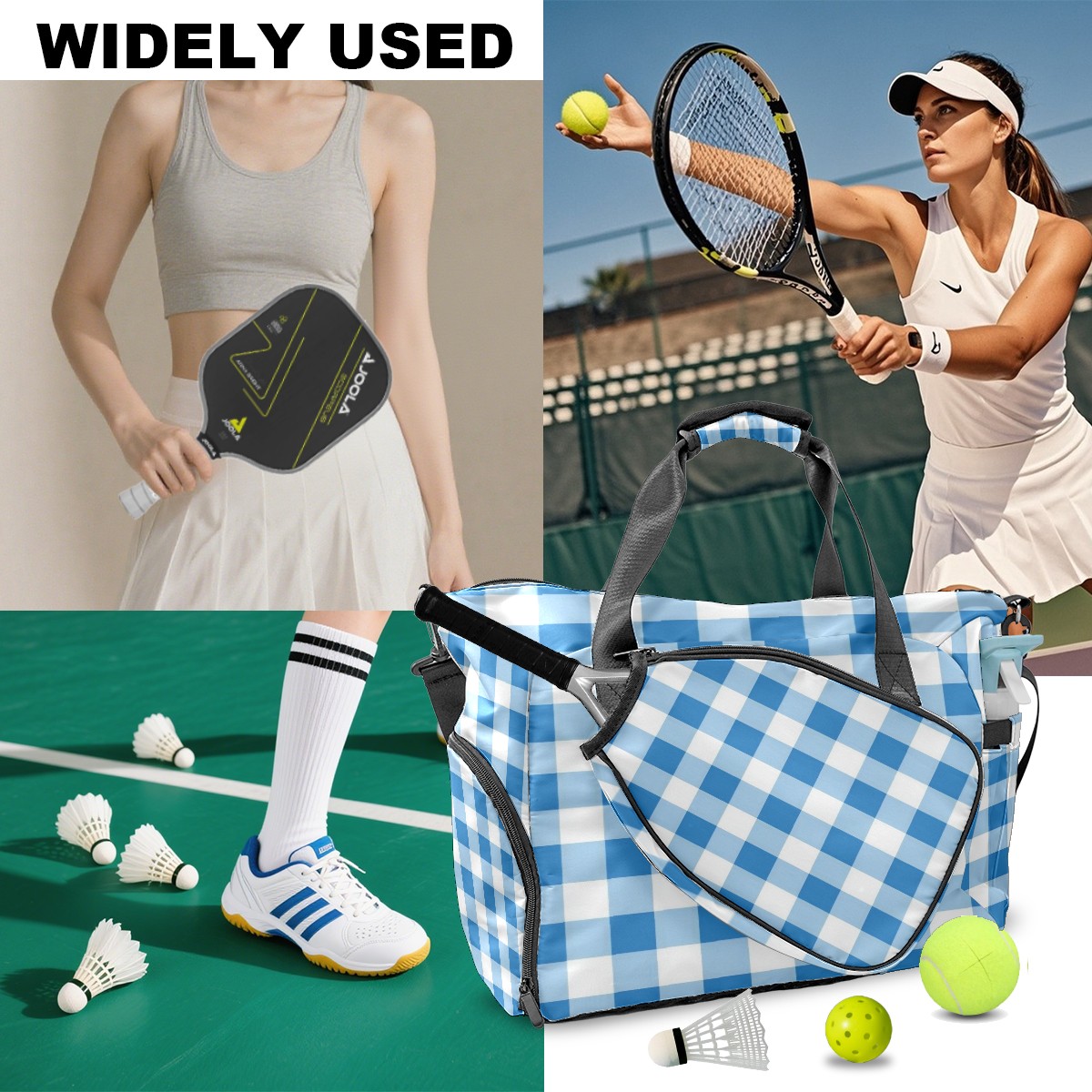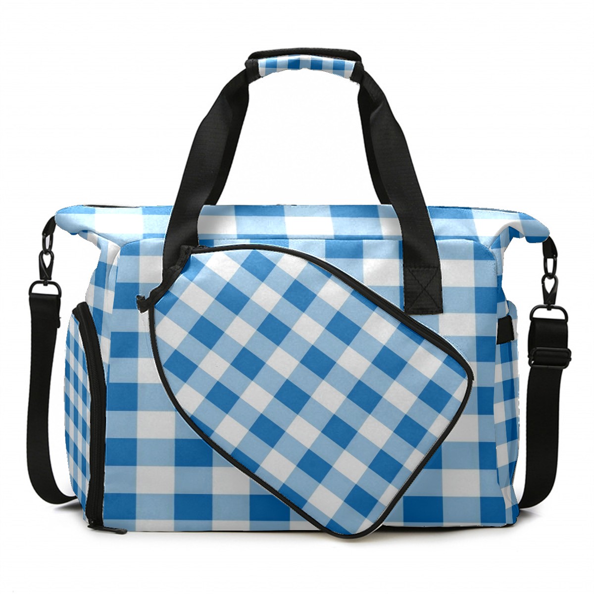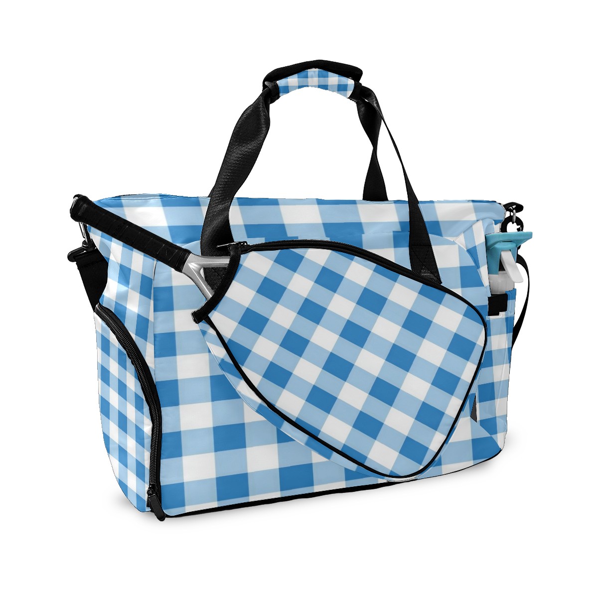 Pickleball Tote Bag Carryall for Paddles Balls and Accessories, Portable Lightweight Gear Bag for Players(Light Blue Gingham)