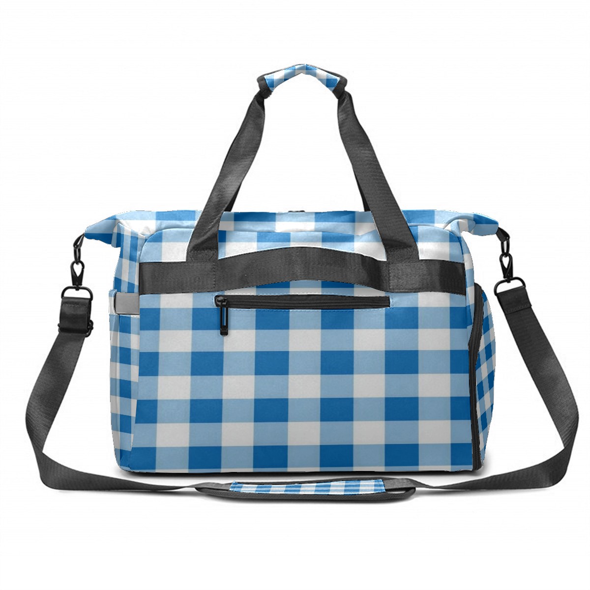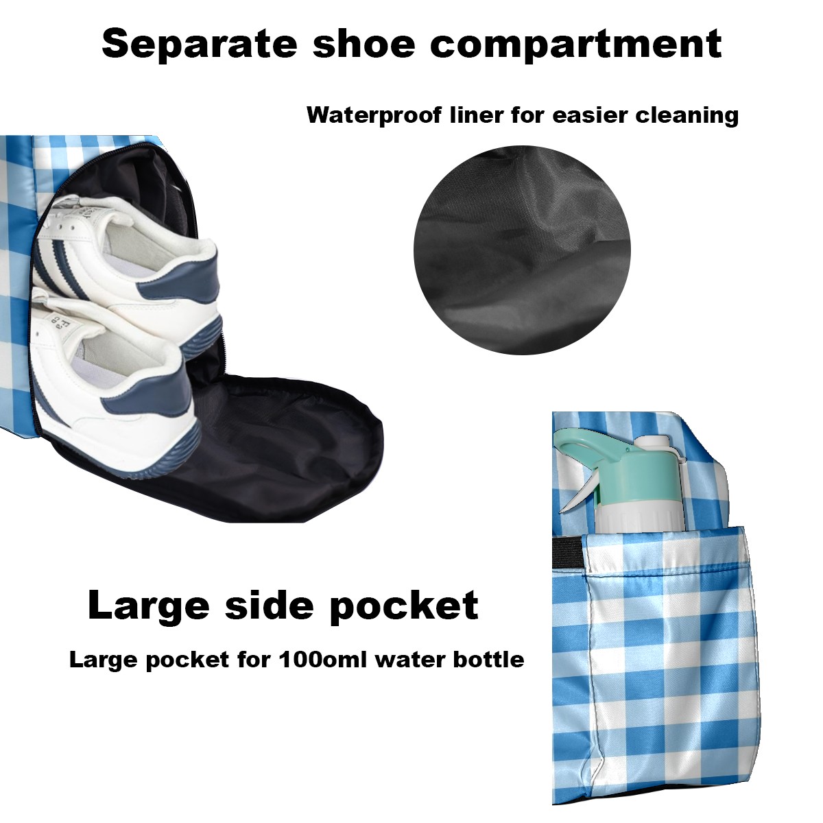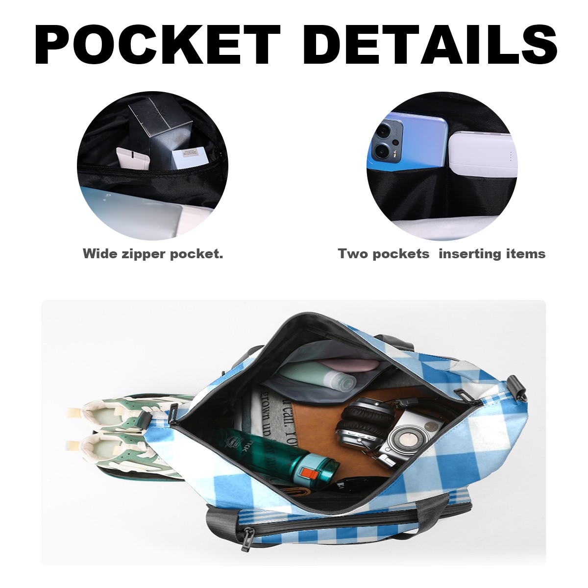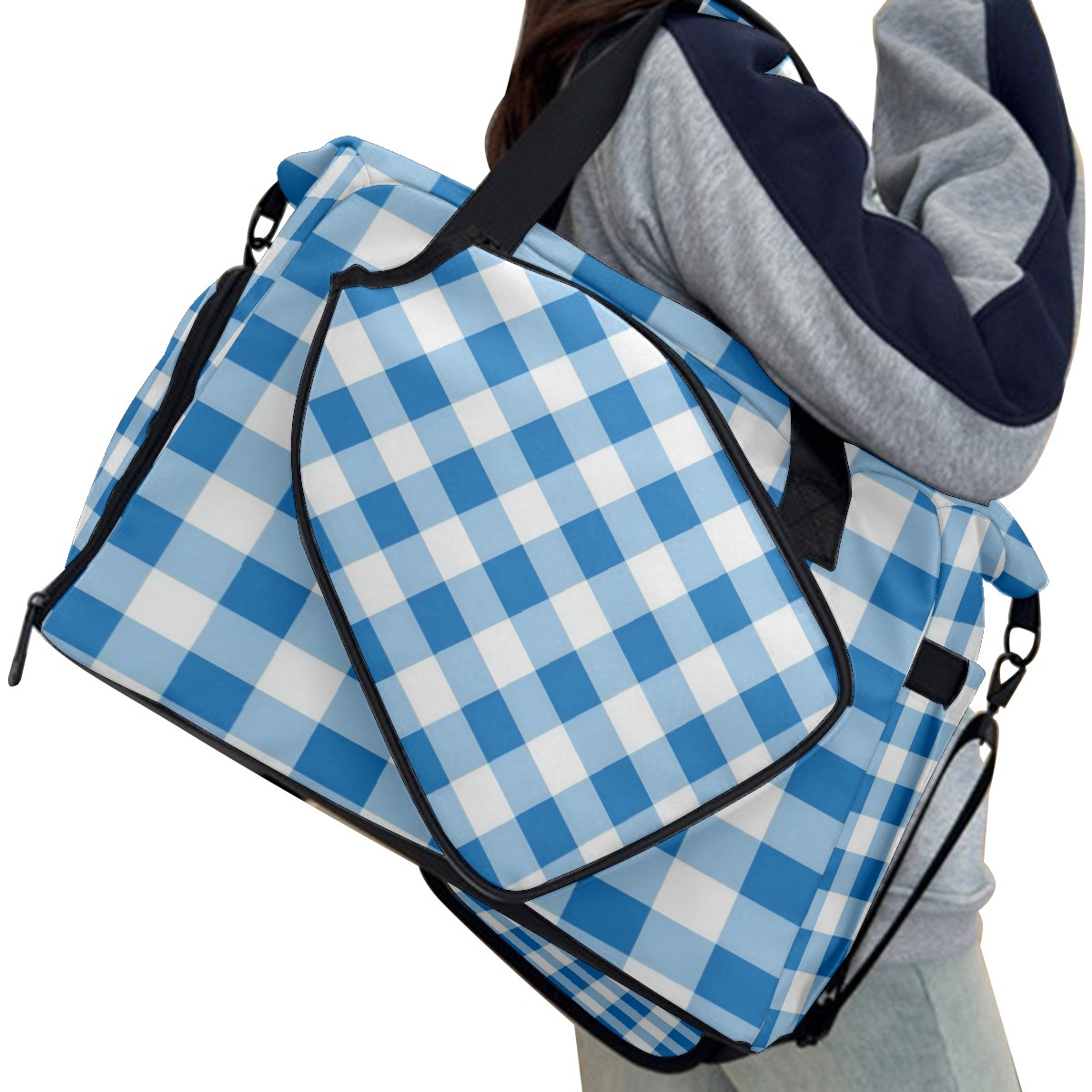 Pickleball Tote Bag Carryall for Paddles Balls and Accessories, Portable Lightweight Gear Bag for Players(Light Blue Gingham)