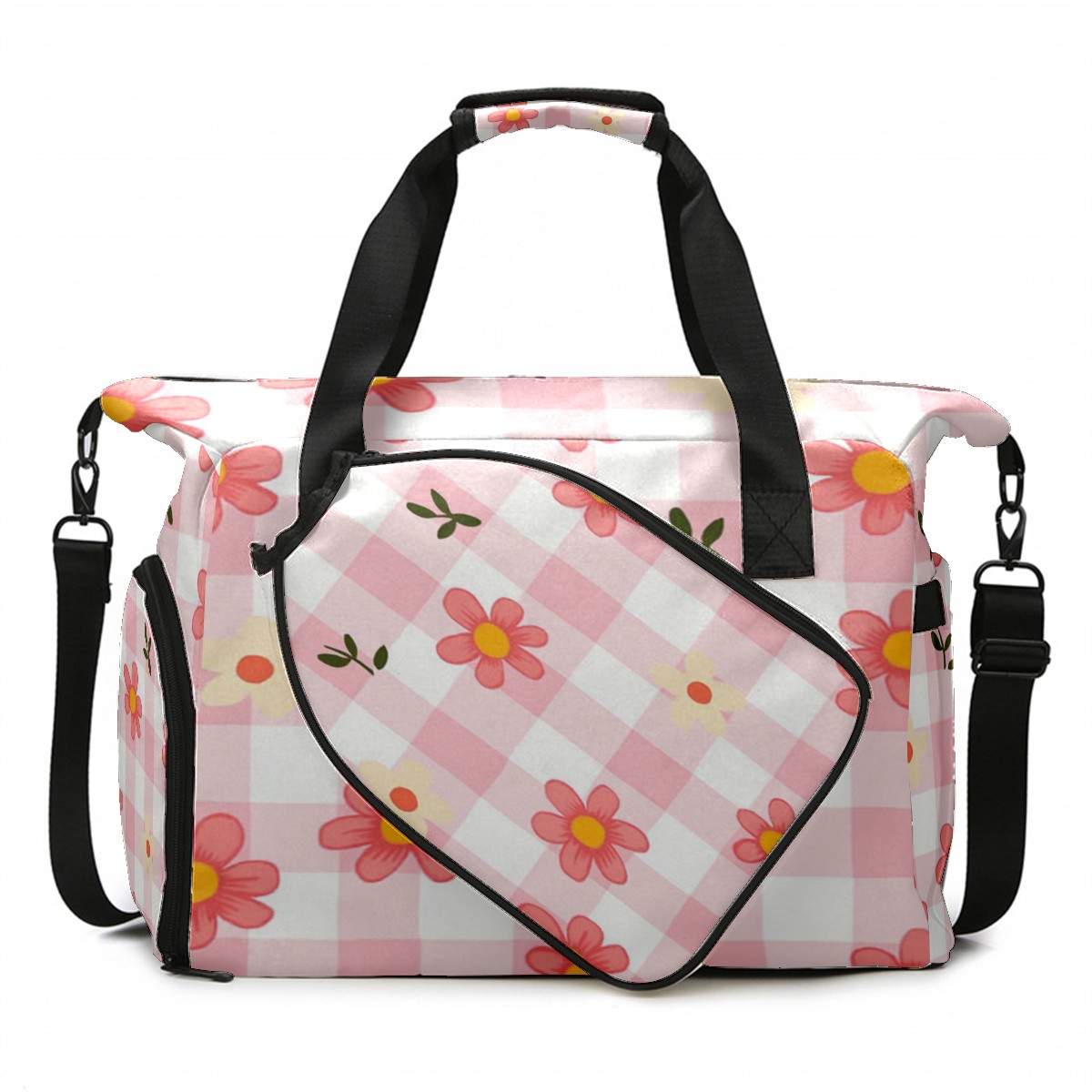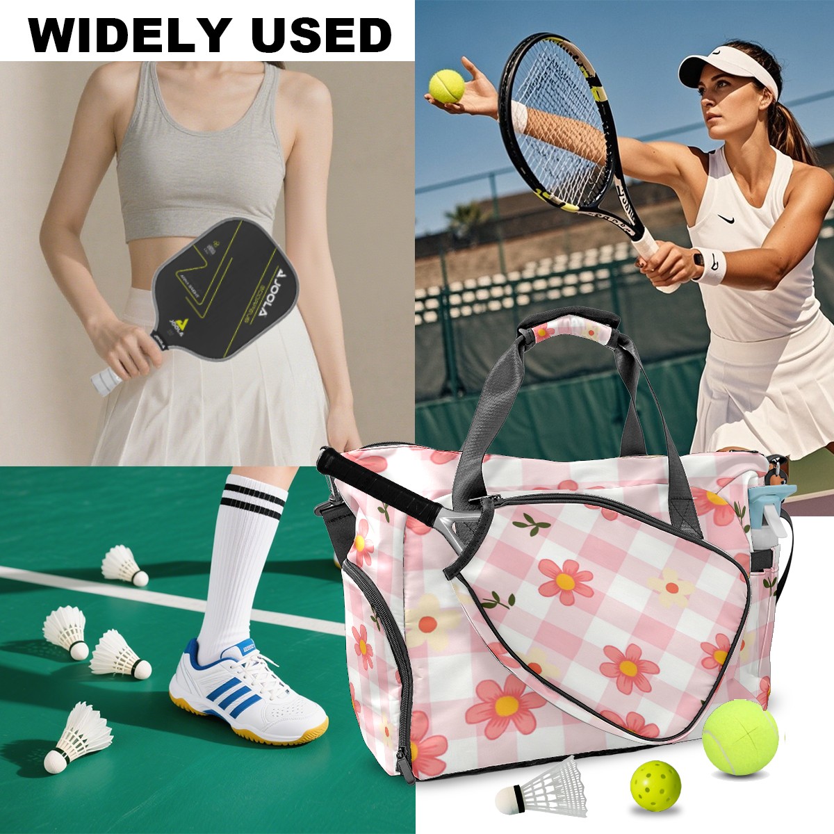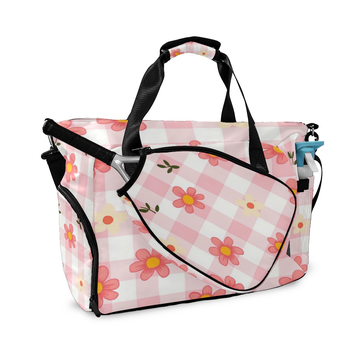 Pickleball Tote Bag Carryall for Paddles Balls and Accessories, Portable Lightweight Gear Bag for Players(Pink Gingham)