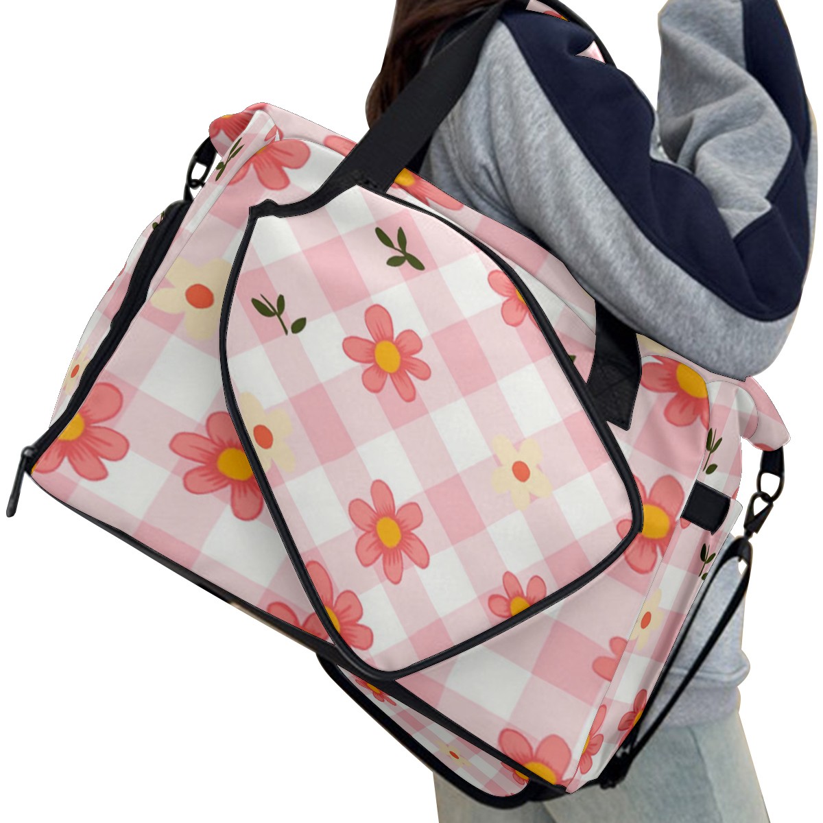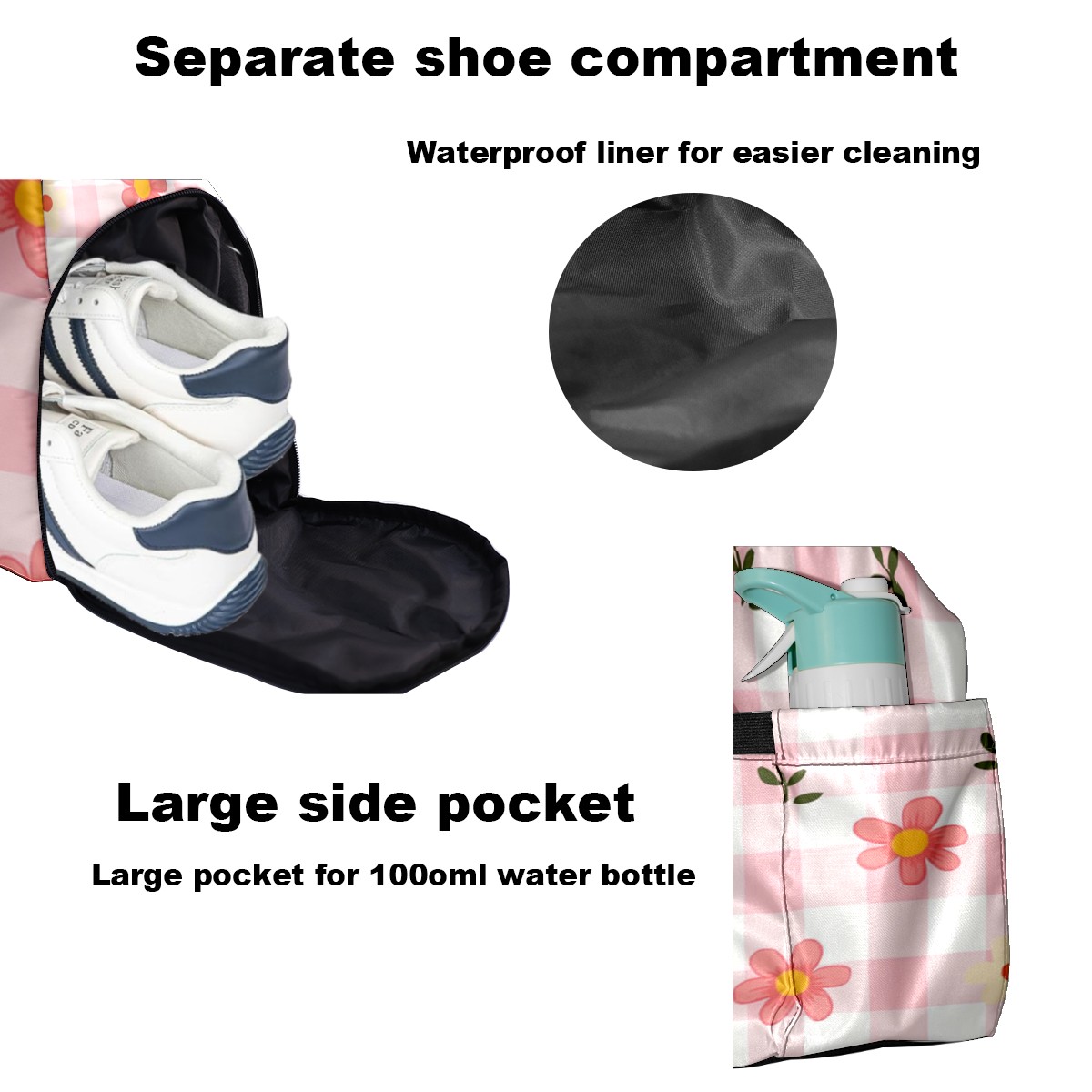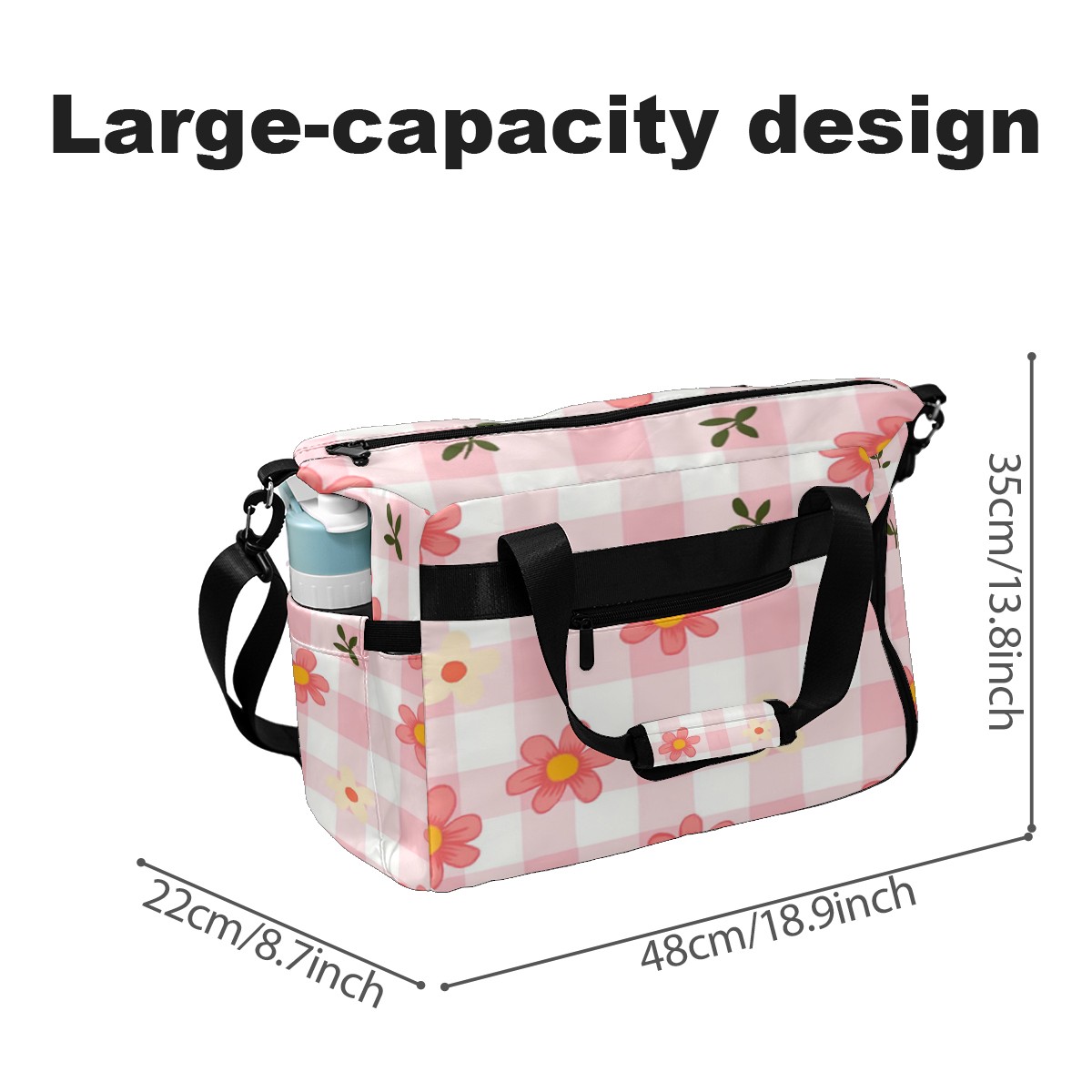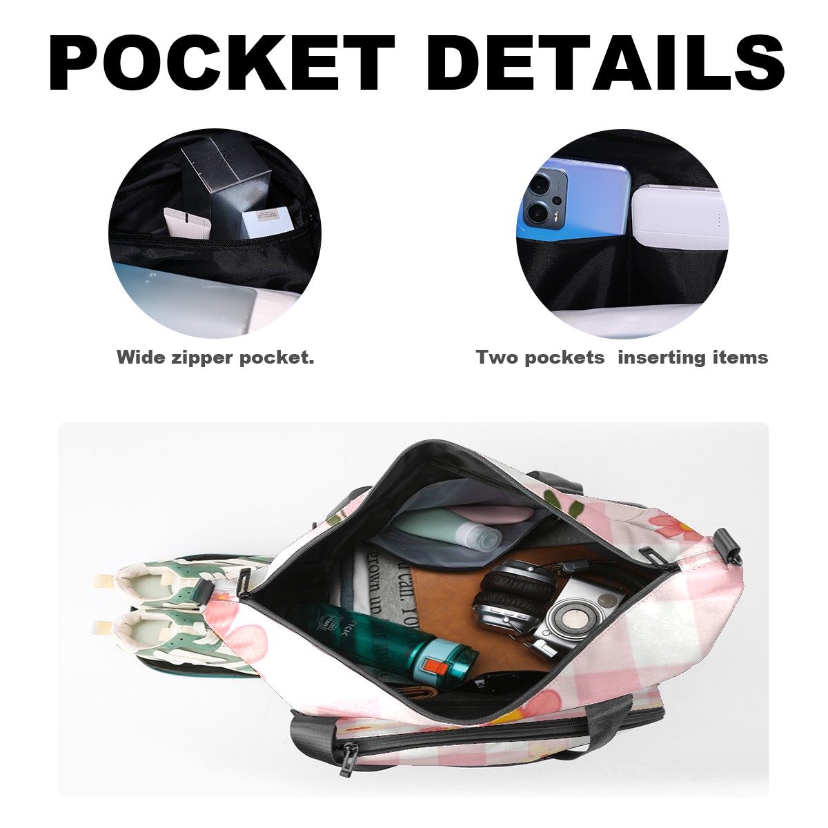 Pickleball Tote Bag Carryall for Paddles Balls and Accessories, Portable Lightweight Gear Bag for Players(Pink Gingham)