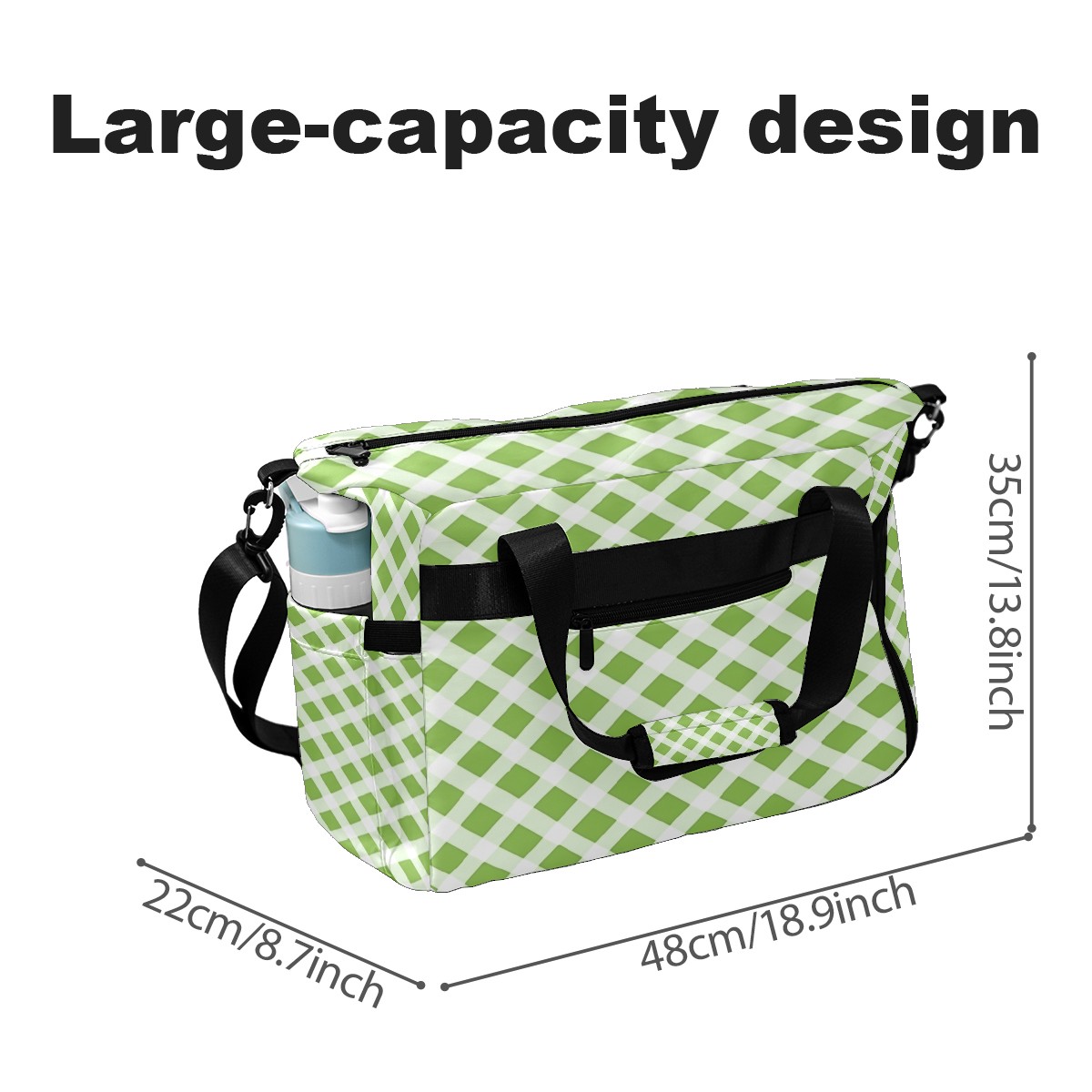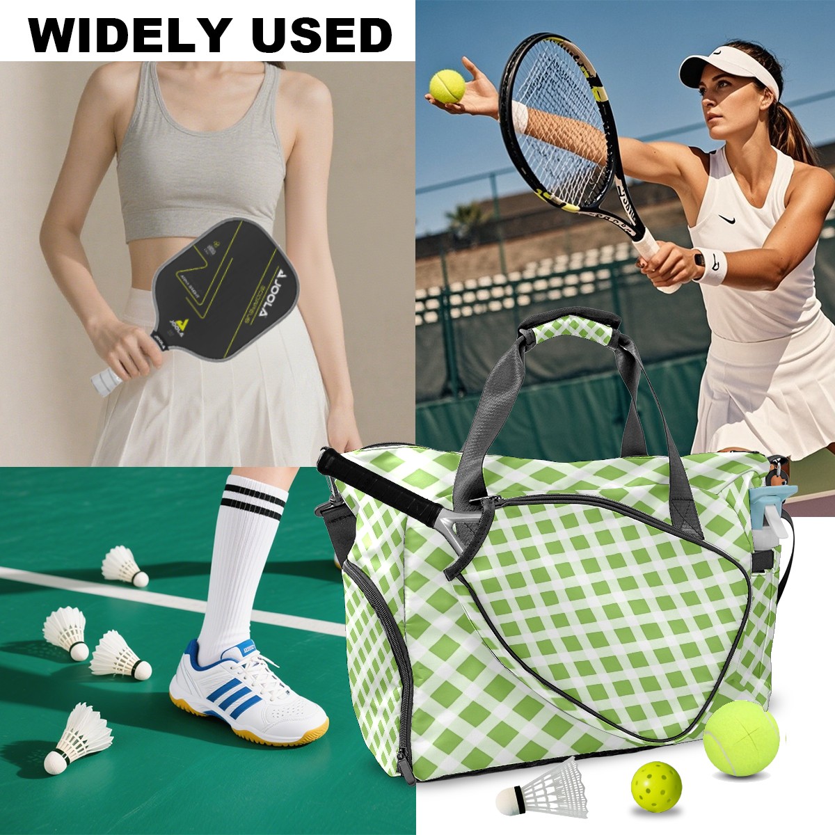 Pickleball Tote Bag Carryall for Paddles Balls and Accessories, Portable Lightweight Gear Bag for Players(Light Green And White Gingham)