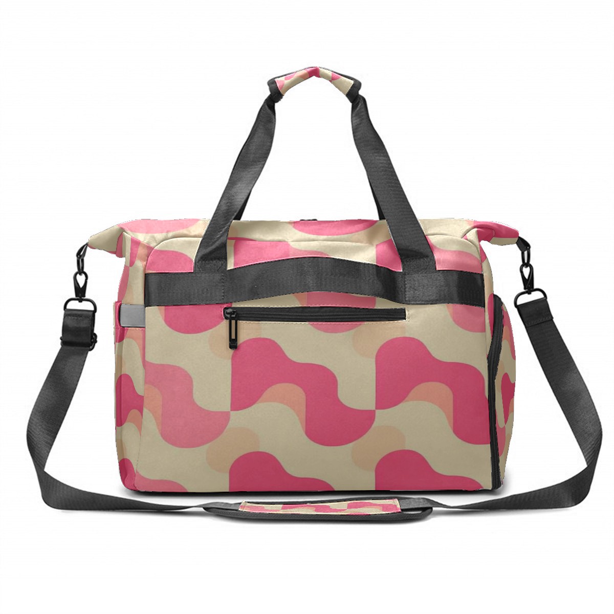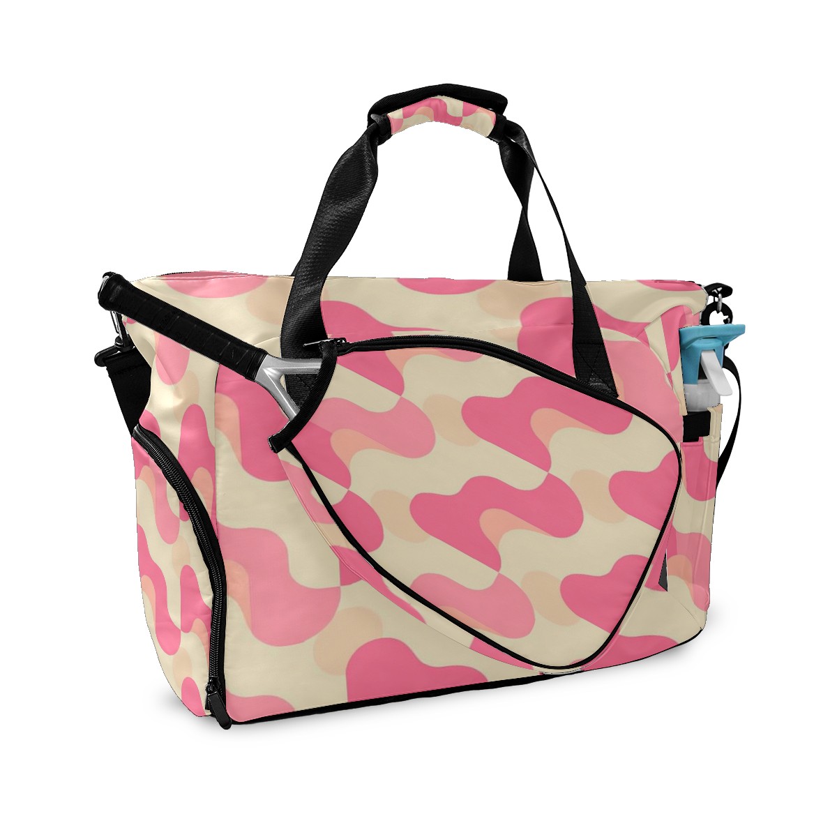 Pickleball Tote Bag Carryall for Paddles Balls and Accessories, Portable Lightweight Gear Bag for Players(Pink And Cream Retro Groovy)
