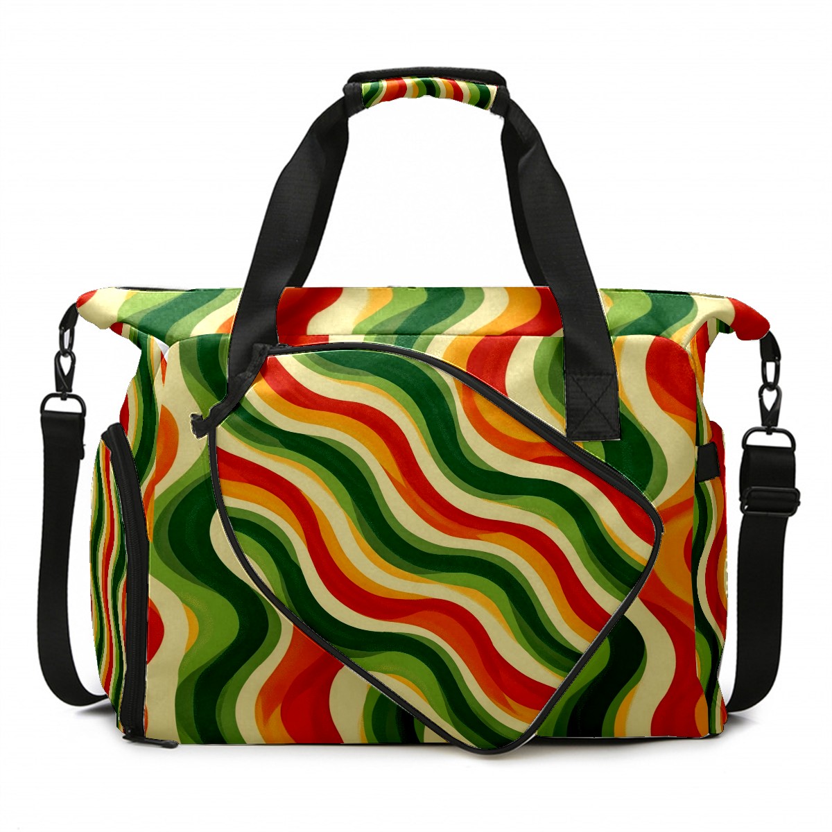 Pickleball Tote Bag Carryall for Paddles Balls and Accessories, Portable Lightweight Gear Bag for Players(Retro Wavy Stripes)