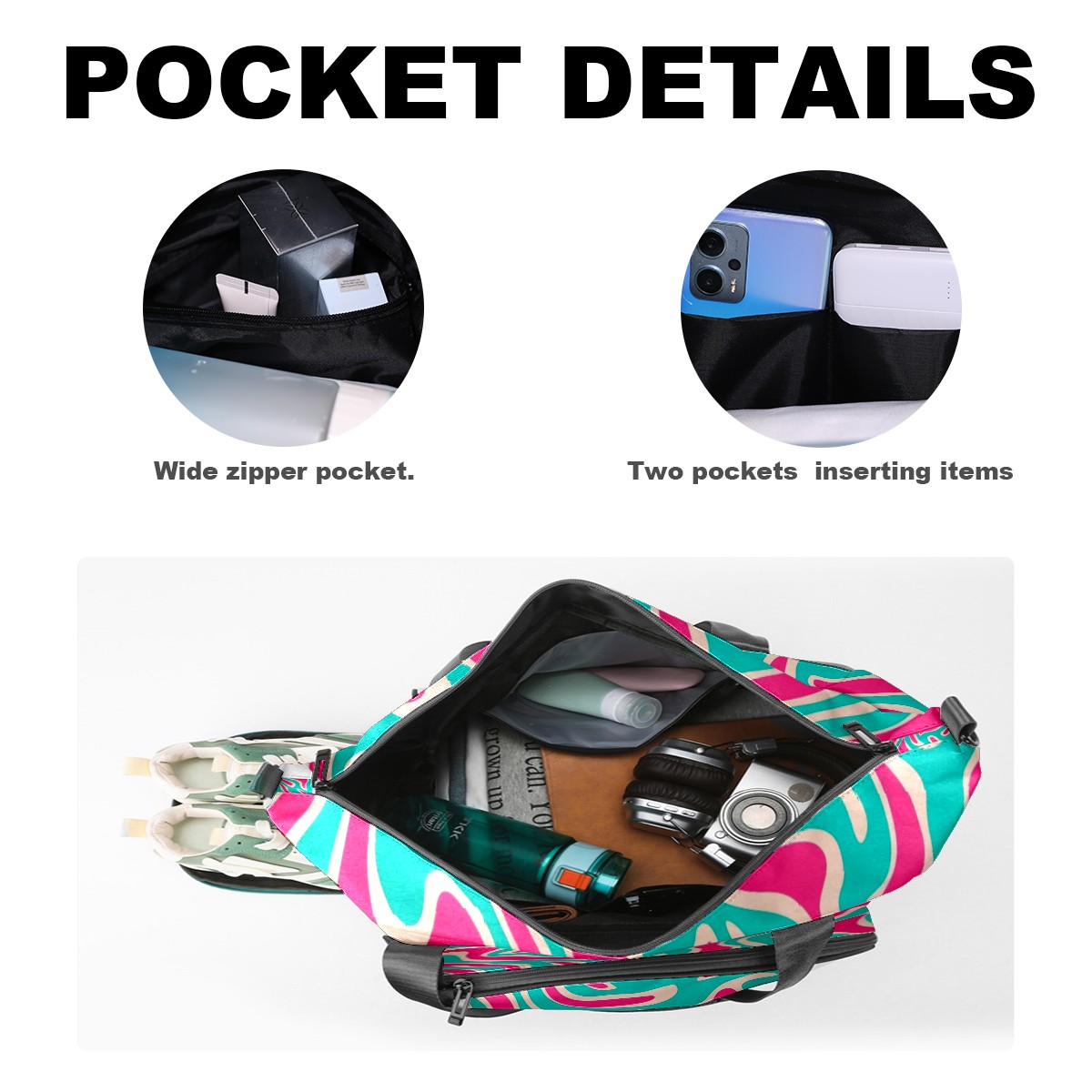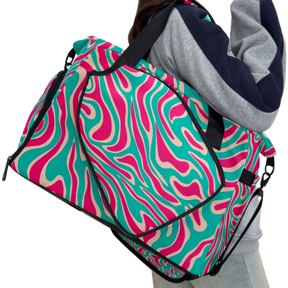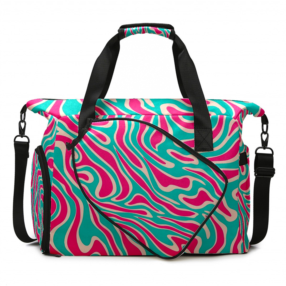 Pickleball Tote Bag Carryall for Paddles Balls and Accessories, Portable Lightweight Gear Bag for Players(Pink And Turquoise Lines)