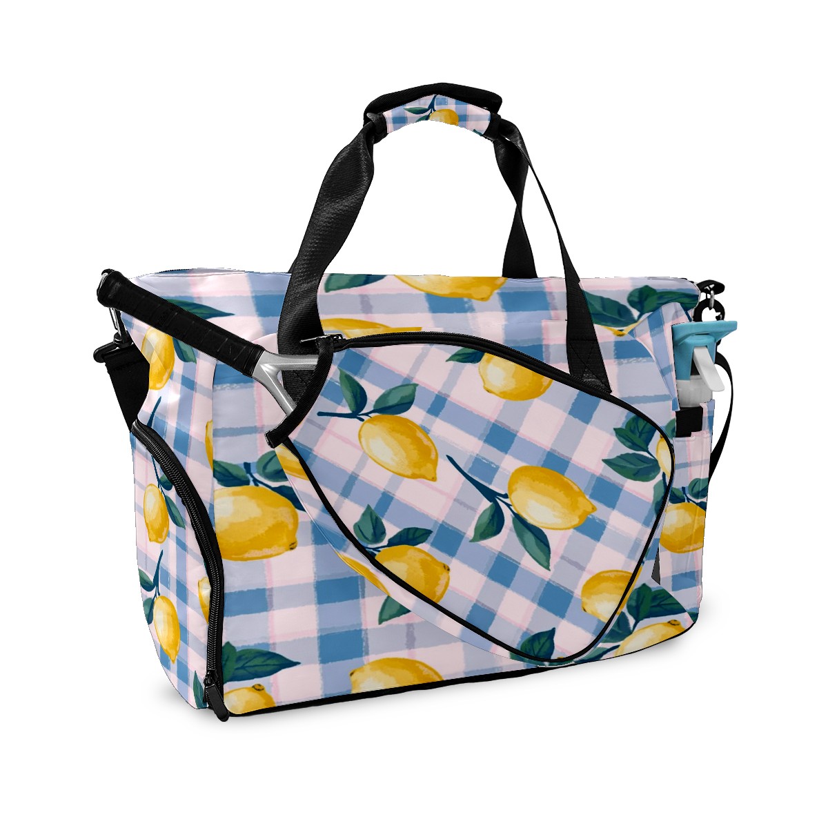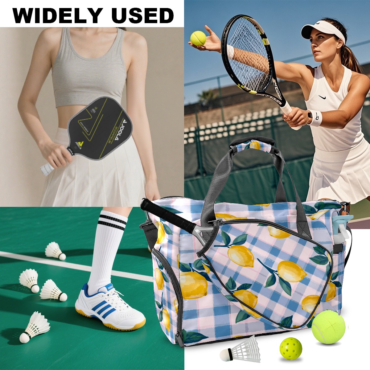 Pickleball Tote Bag Carryall for Paddles Balls and Accessories, Portable Lightweight Gear Bag for Players(Lemons)