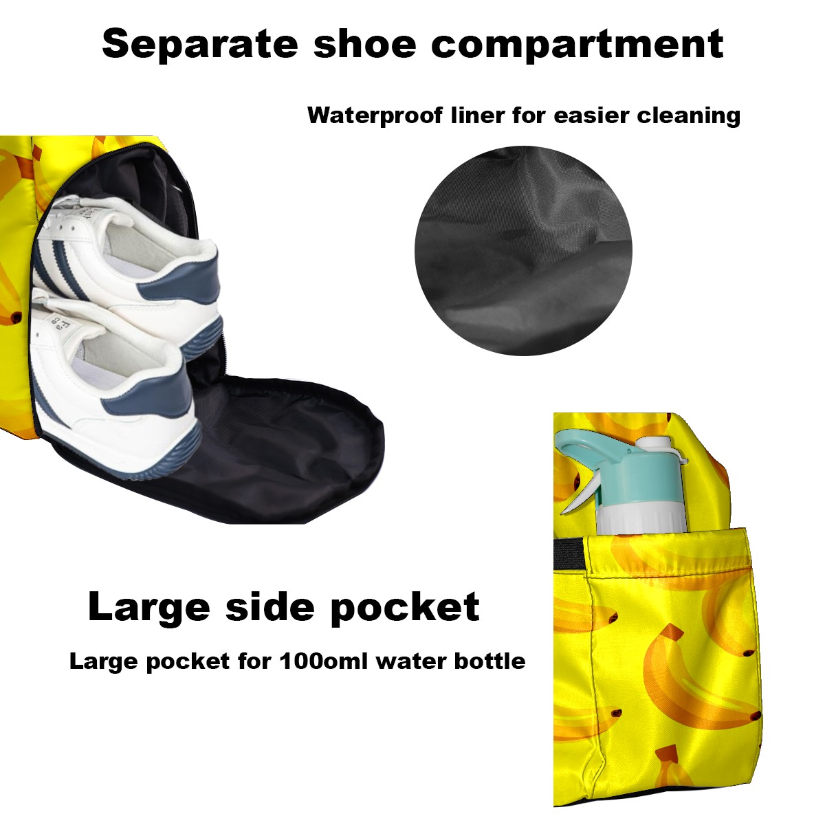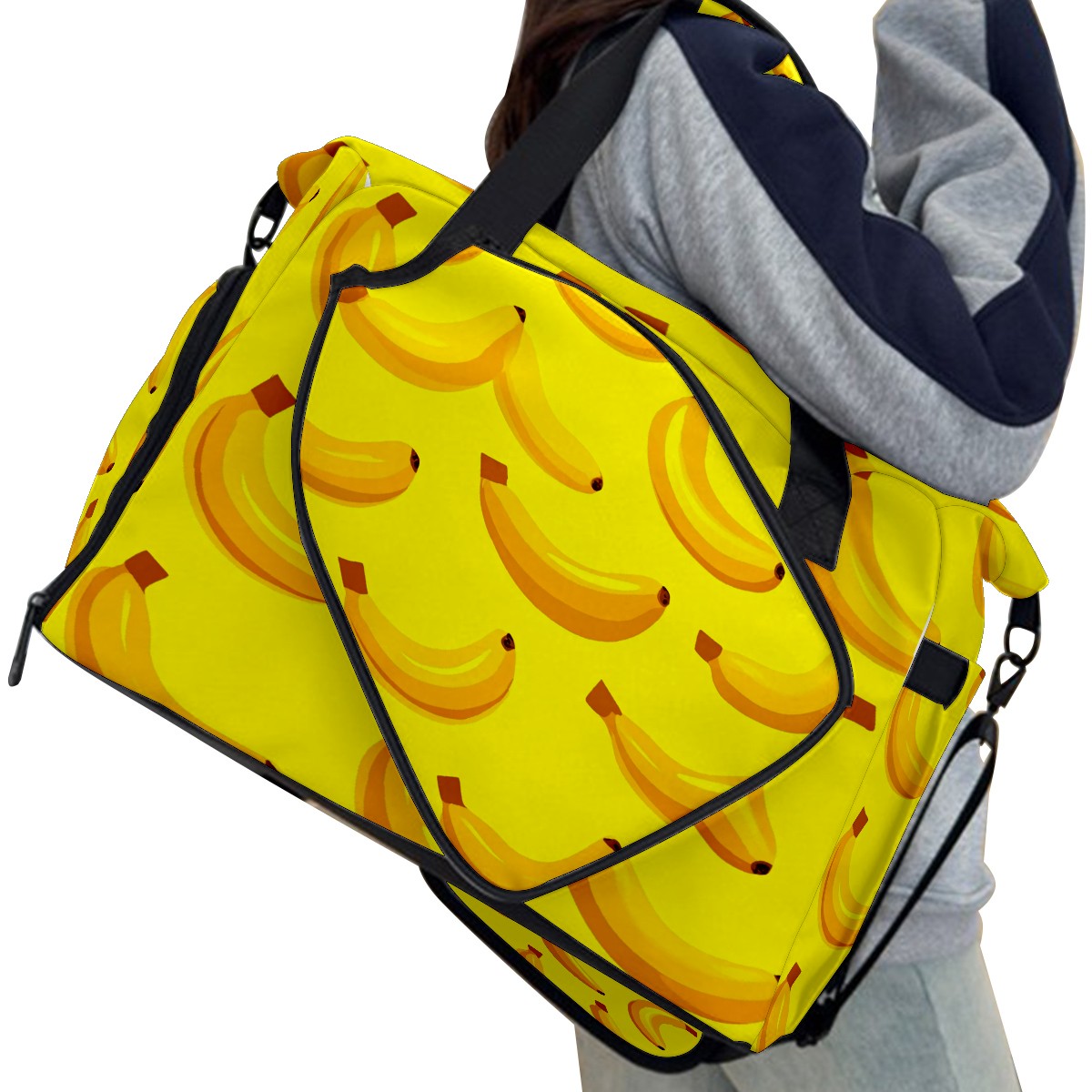 Pickleball Tote Bag Carryall for Paddles Balls and Accessories, Portable Lightweight Gear Bag for Players(Yellow Bananas)