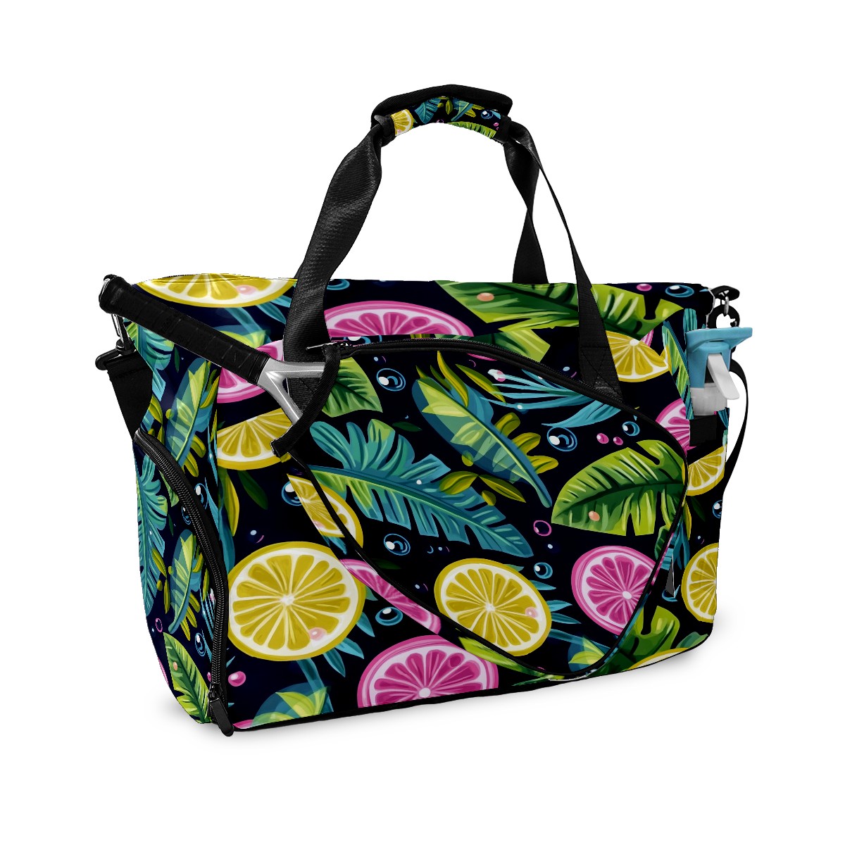 Pickleball Tote Bag Carryall for Paddles Balls and Accessories, Portable Lightweight Gear Bag for Players(Tropical Leaves Bubbles)