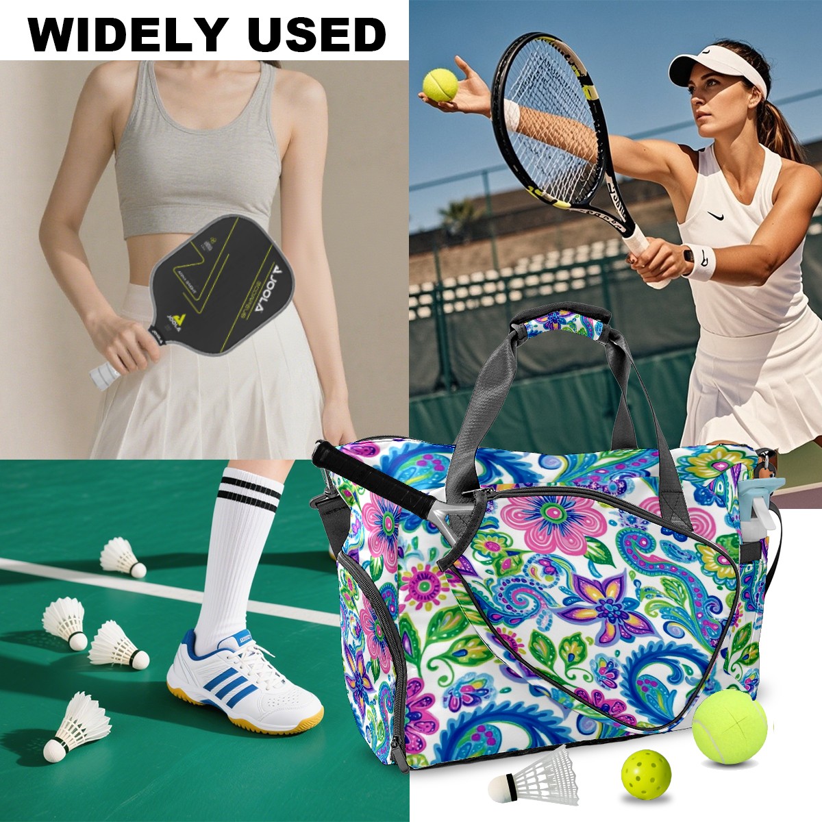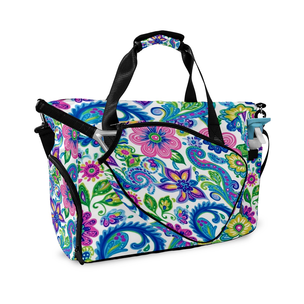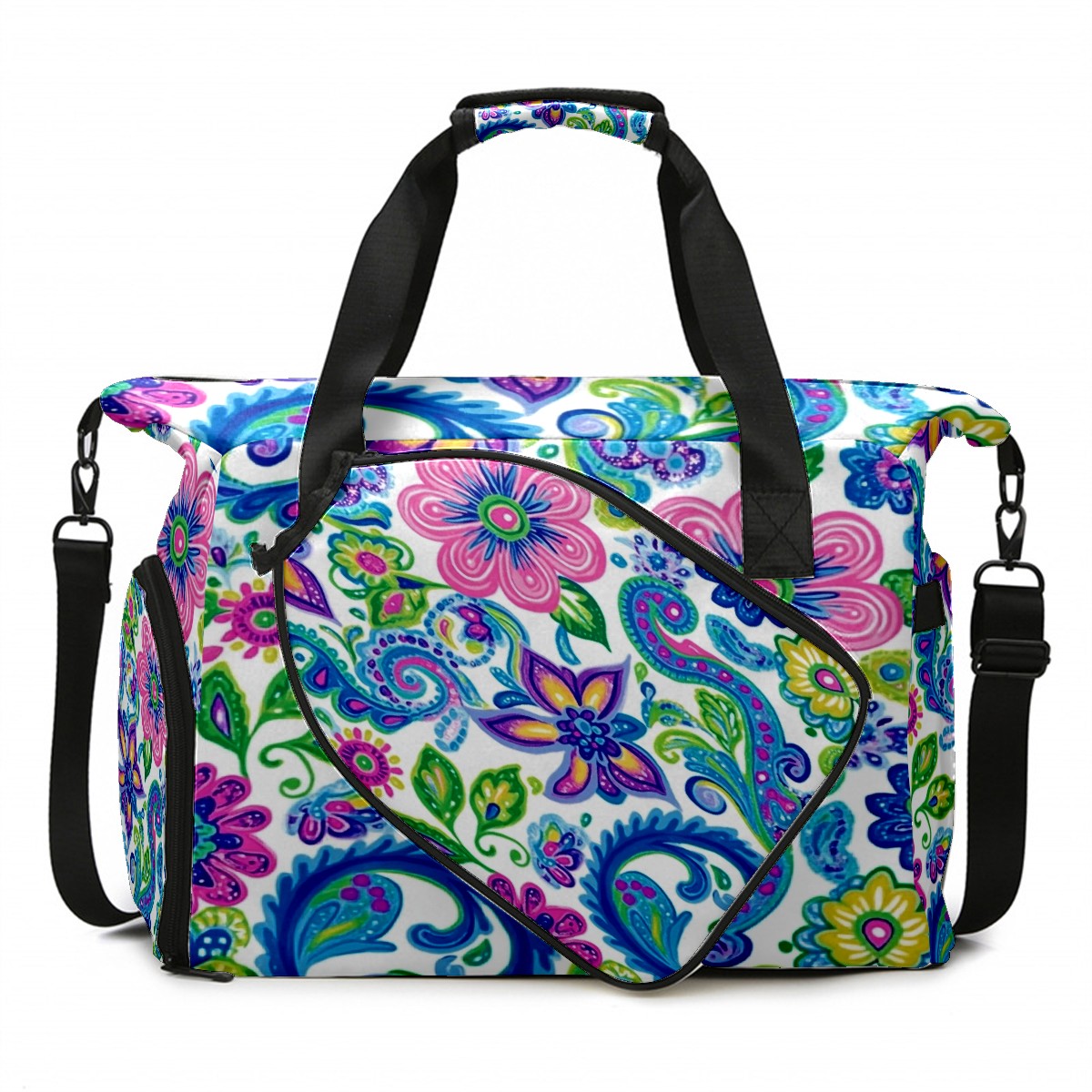 Pickleball Tote Bag Carryall for Paddles Balls and Accessories, Portable Lightweight Gear Bag for Players(Vibrant And Colorful Flowers)