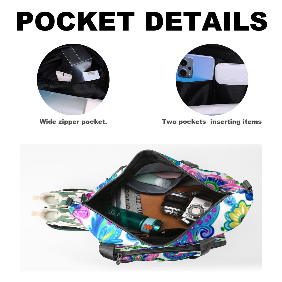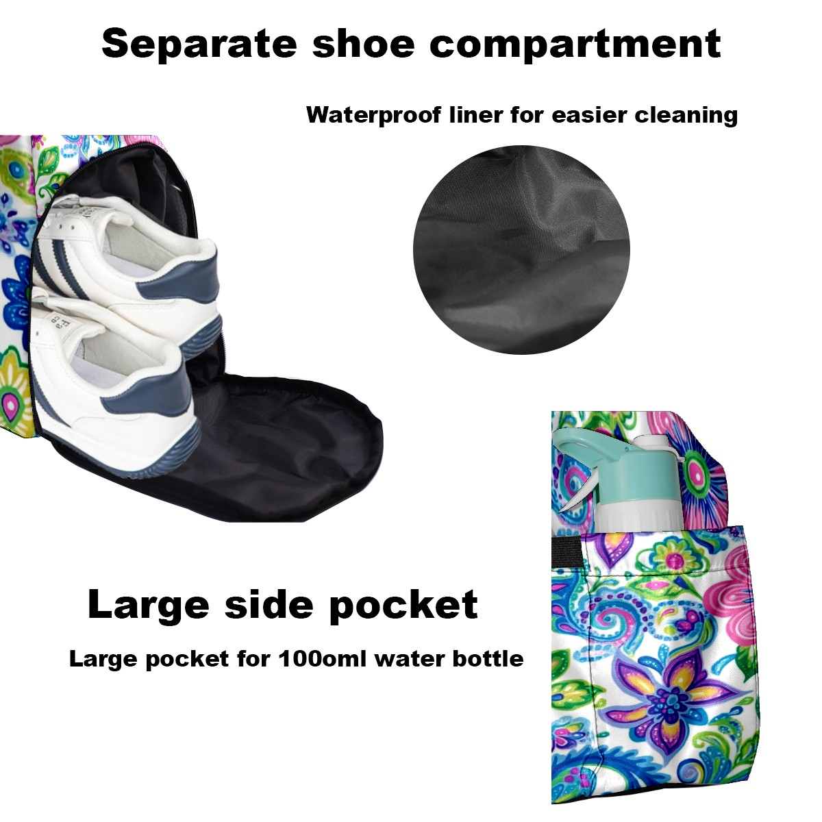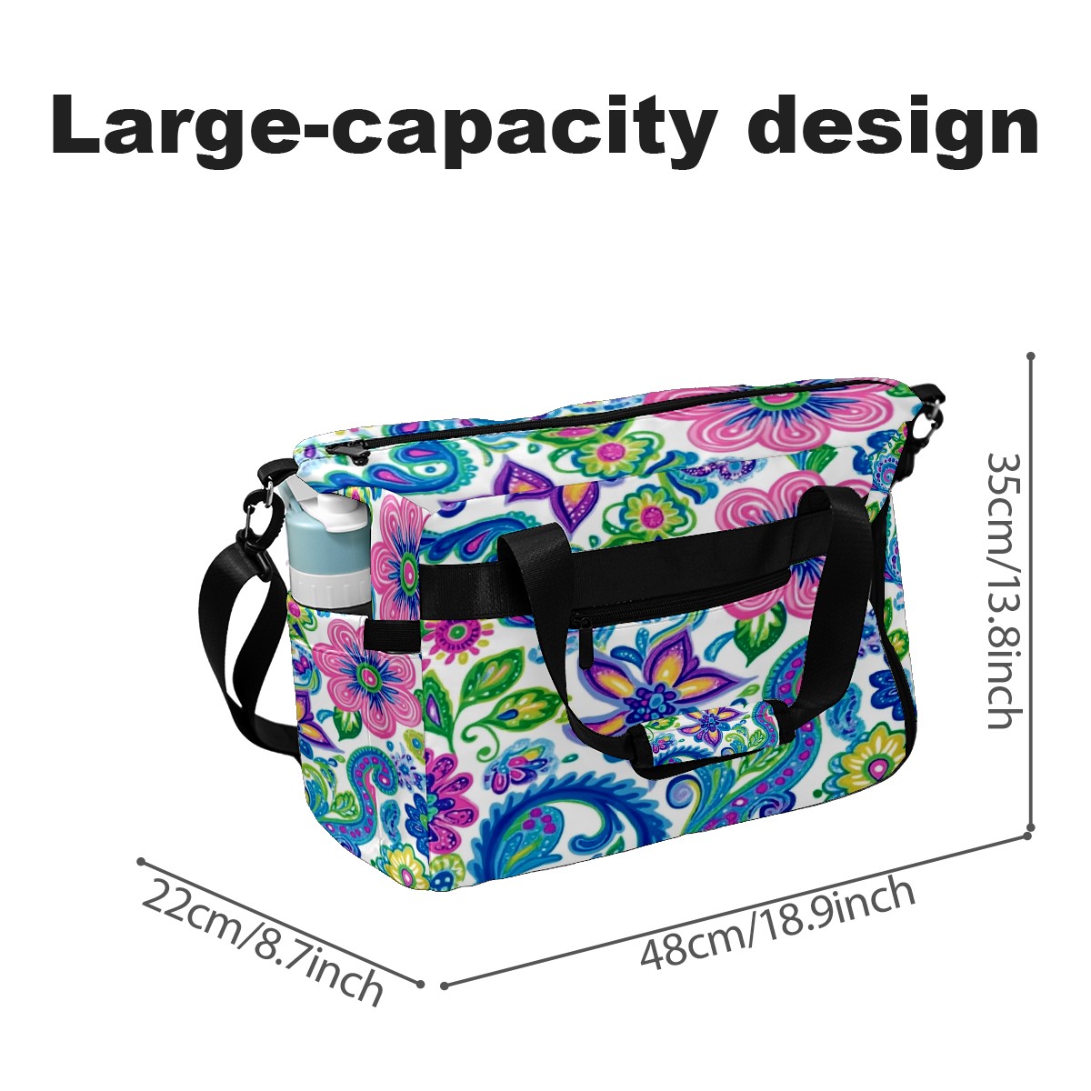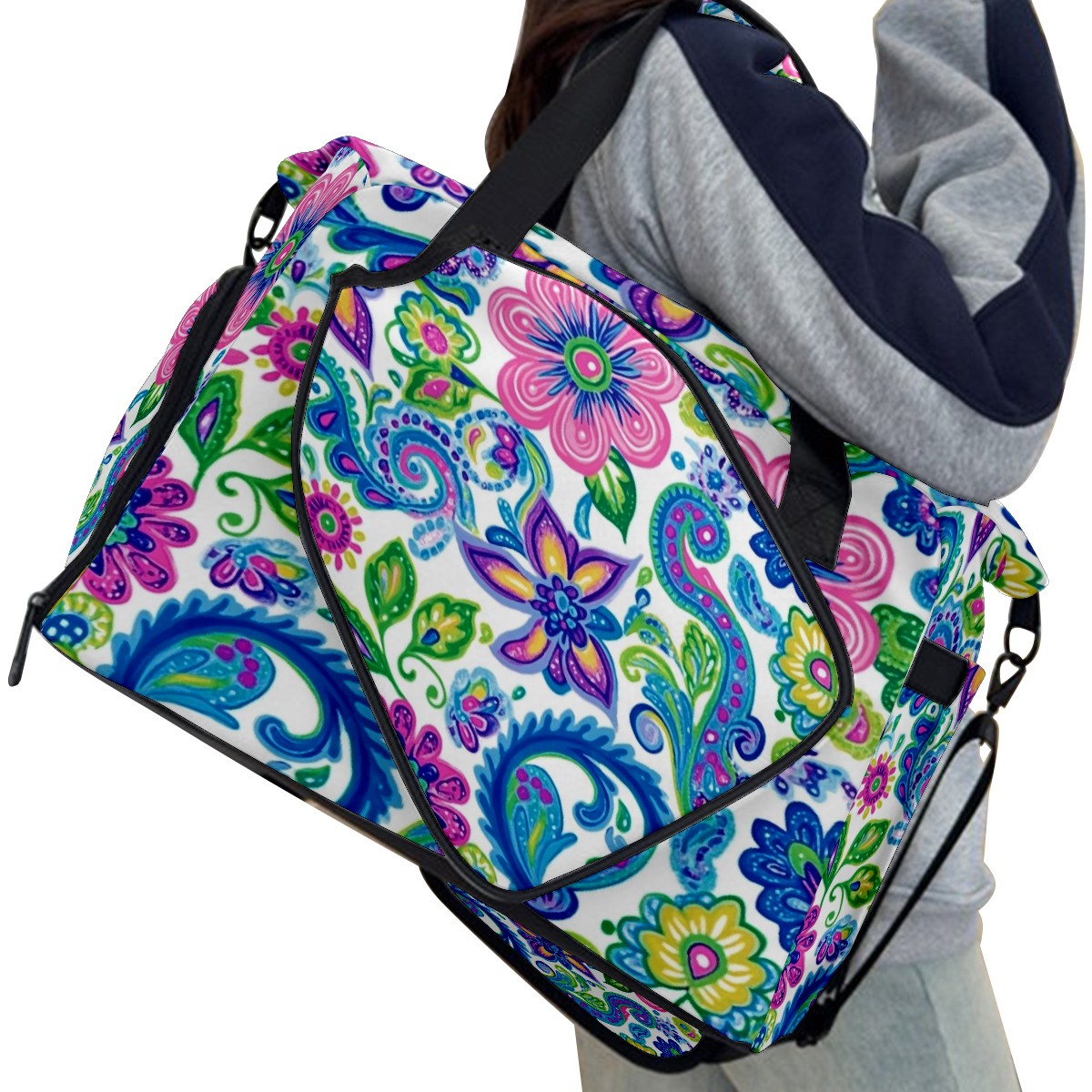 Pickleball Tote Bag Carryall for Paddles Balls and Accessories, Portable Lightweight Gear Bag for Players(Vibrant And Colorful Flowers)