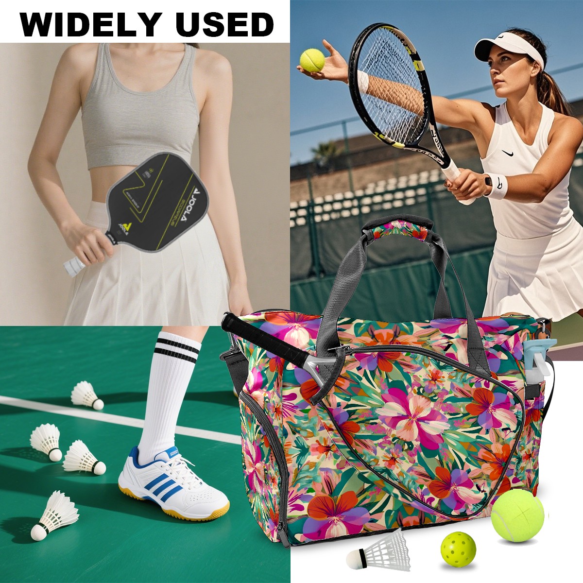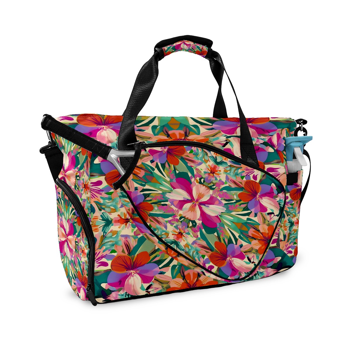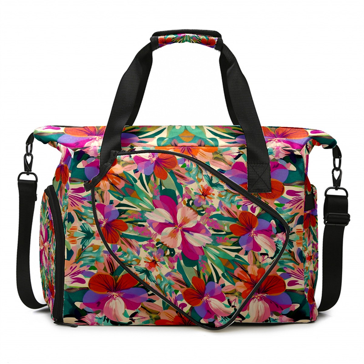 Pickleball Tote Bag Carryall for Paddles Balls and Accessories, Portable Lightweight Gear Bag for Players(Exotic Flowers)