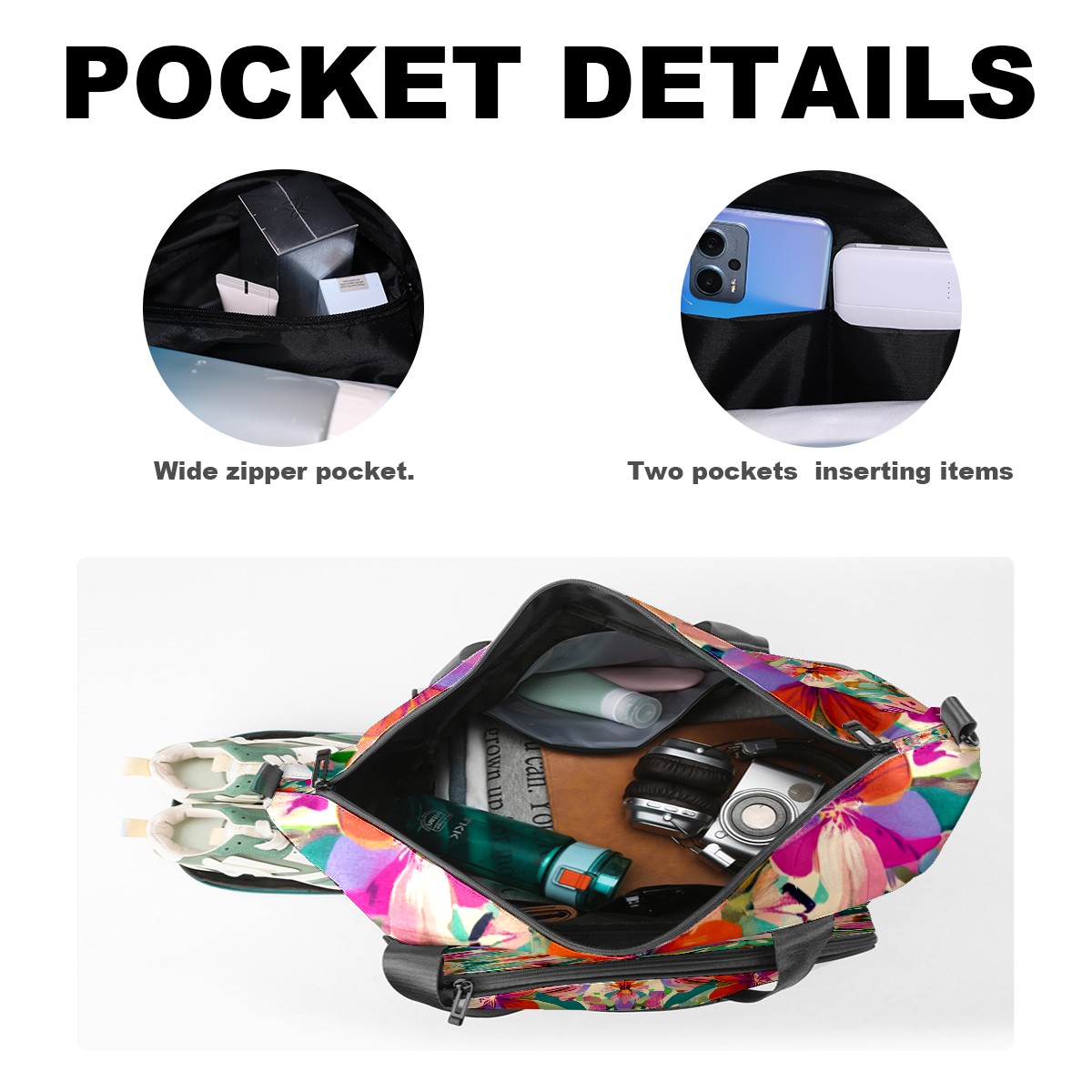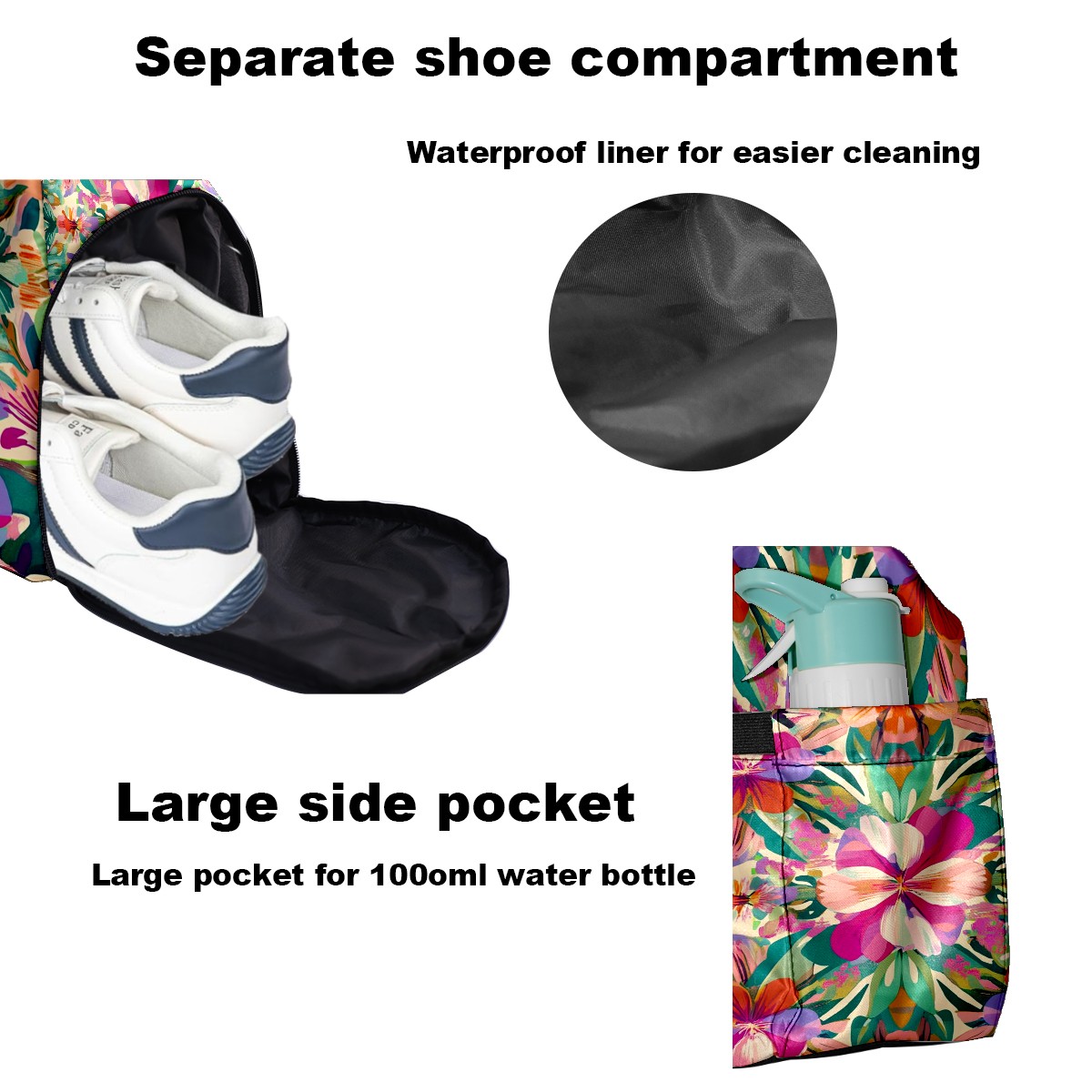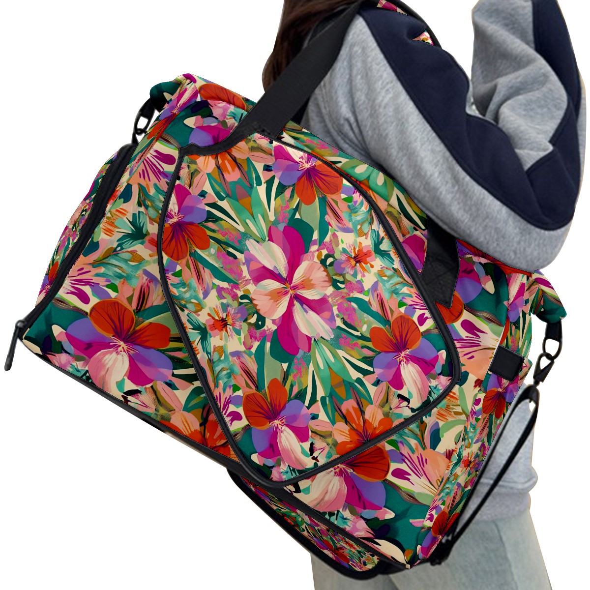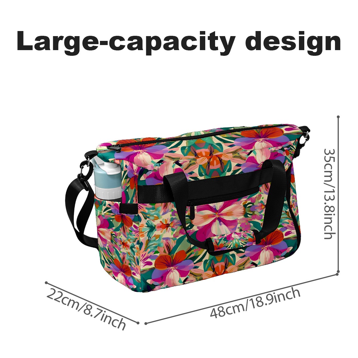 Pickleball Tote Bag Carryall for Paddles Balls and Accessories, Portable Lightweight Gear Bag for Players(Exotic Flowers)