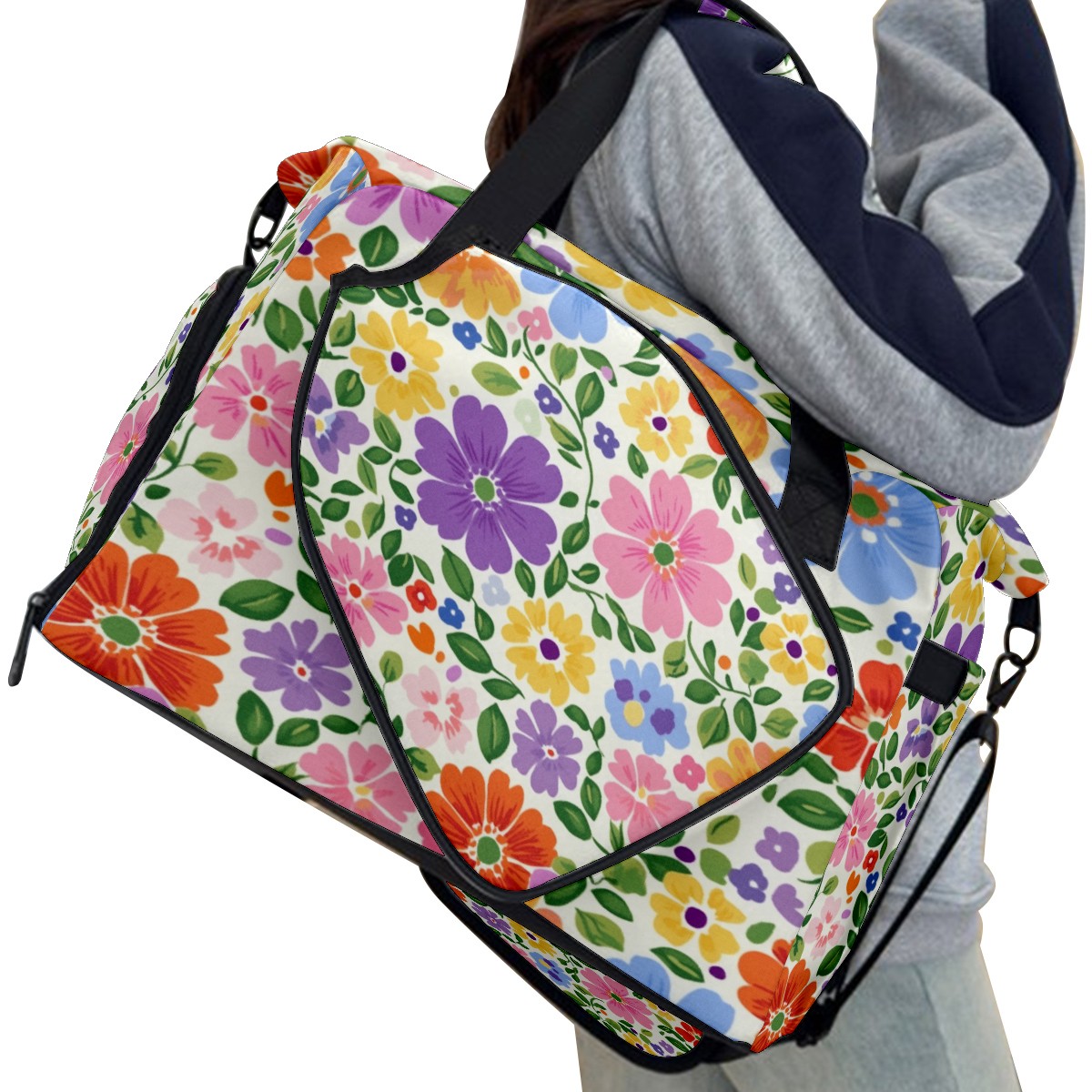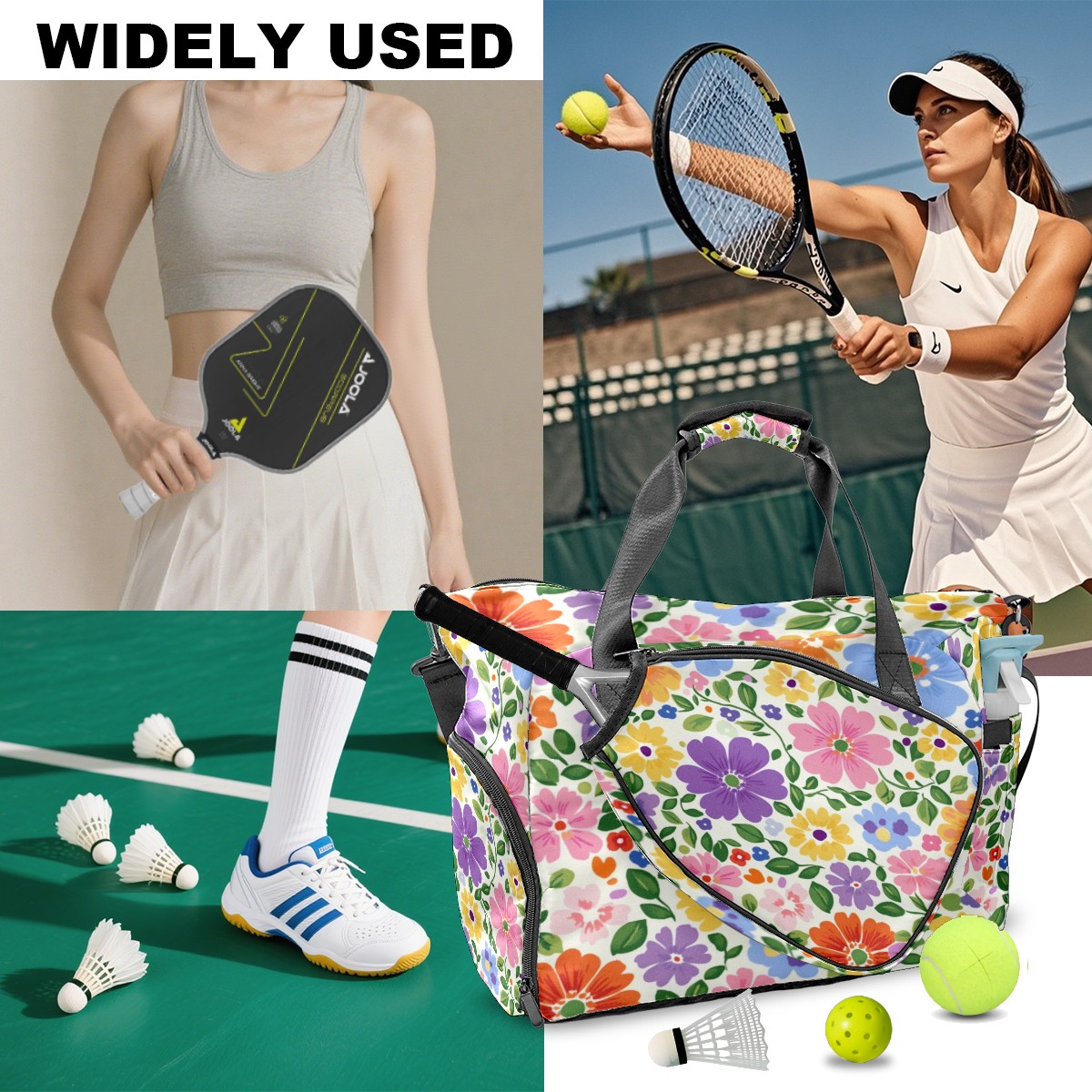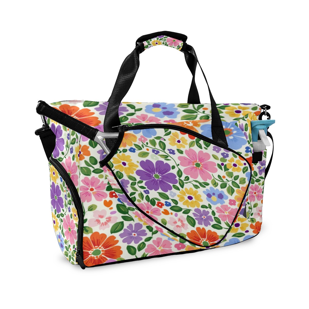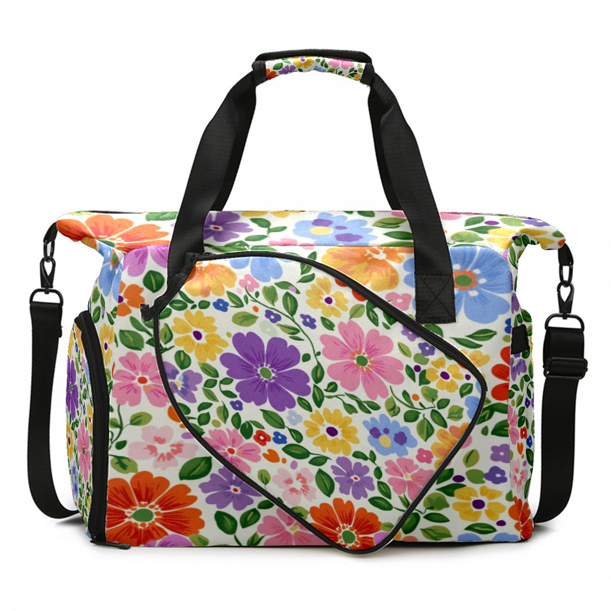 Pickleball Tote Bag Carryall for Paddles Balls and Accessories, Portable Lightweight Gear Bag for Players(Colorful Flowers)