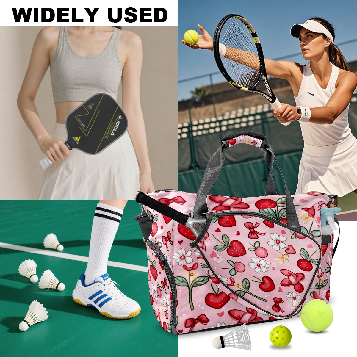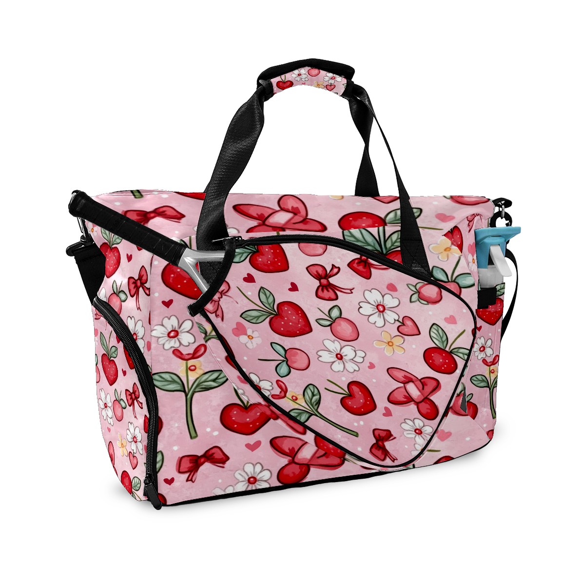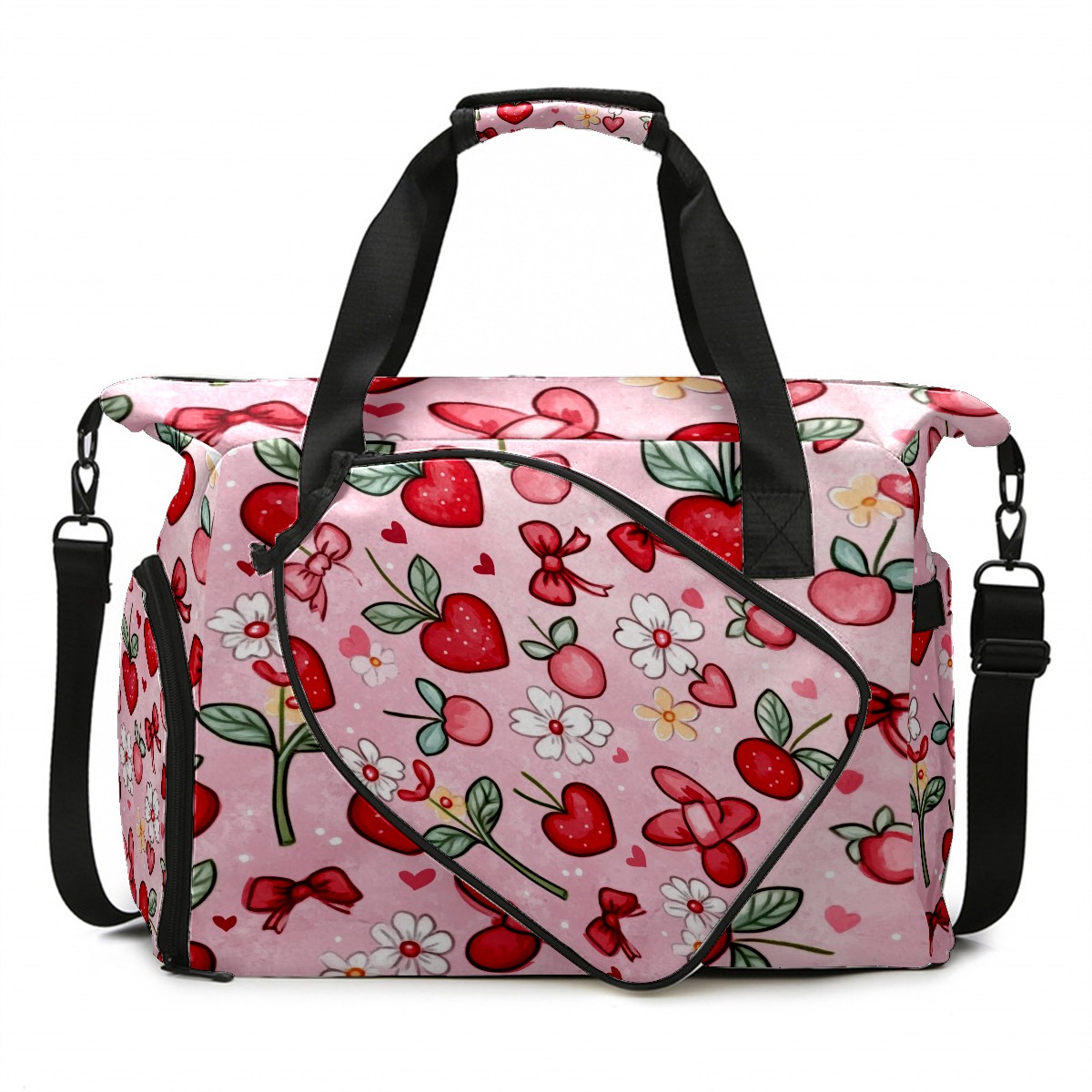 Pickleball Tote Bag Carryall for Paddles Balls and Accessories, Portable Lightweight Gear Bag for Players(Red And White Hearts)
