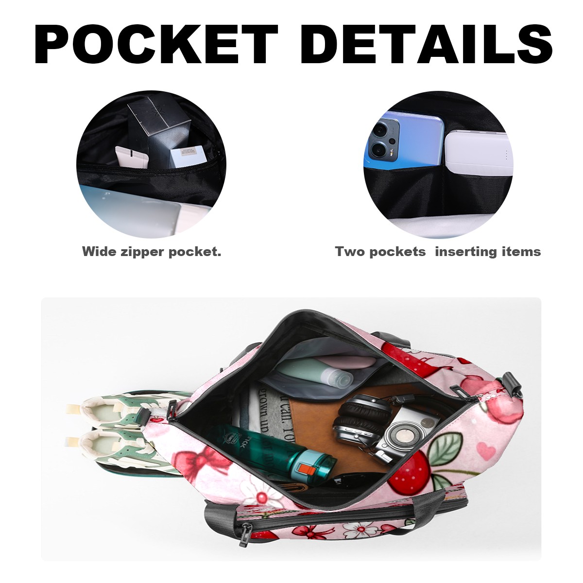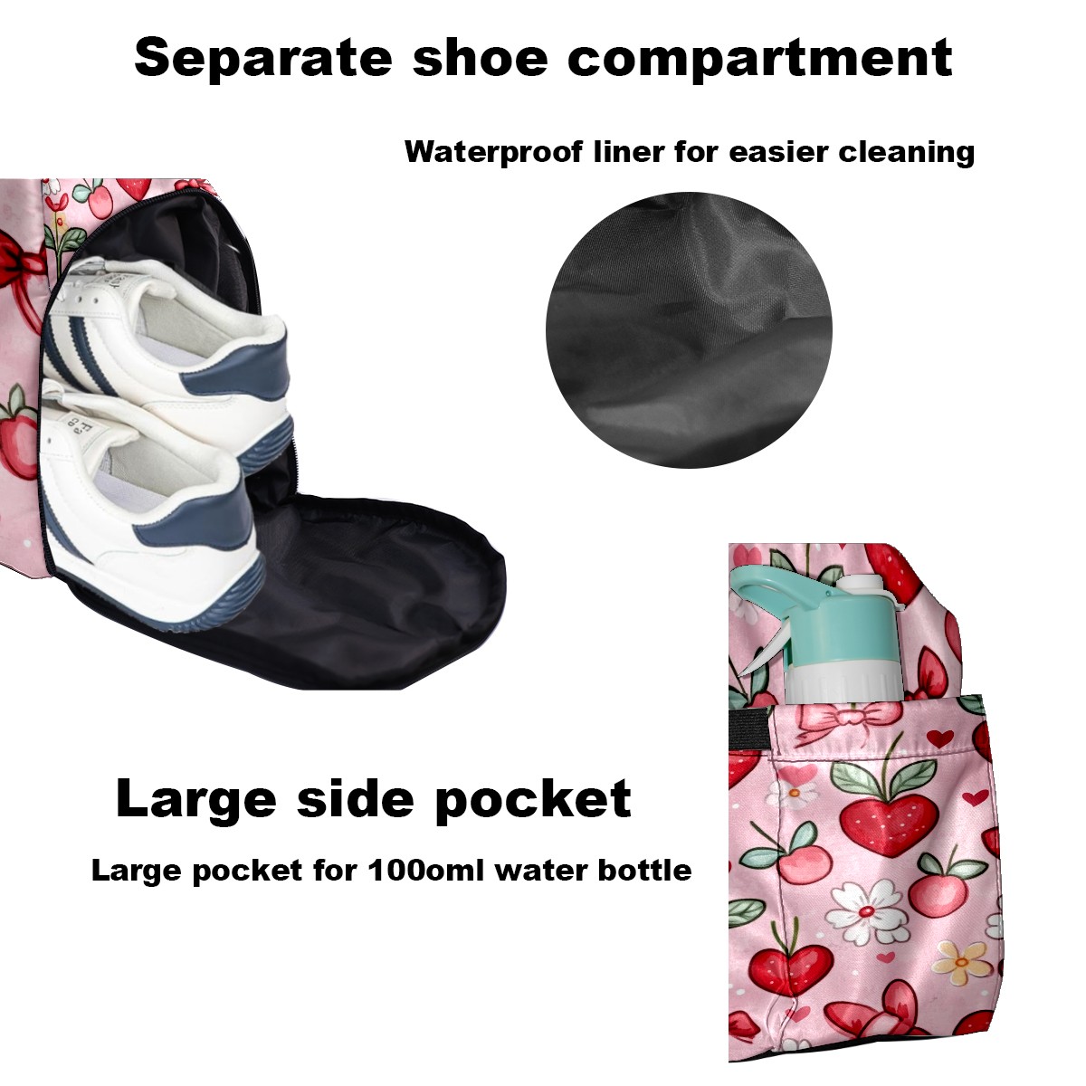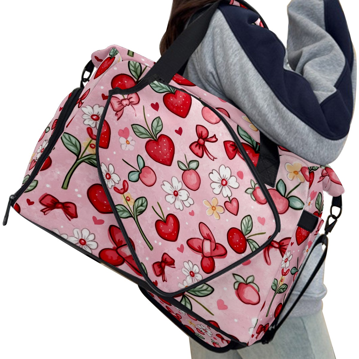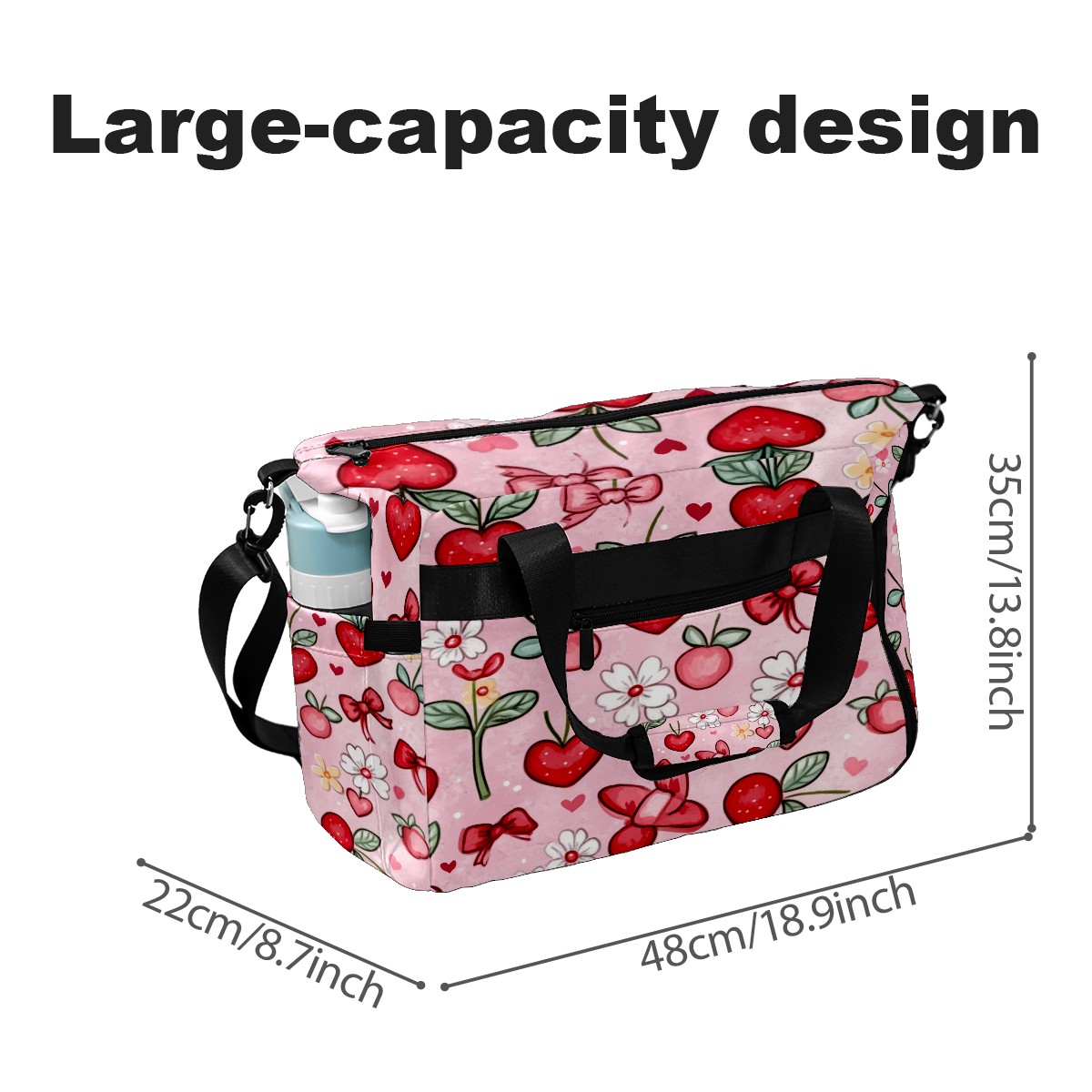 Pickleball Tote Bag Carryall for Paddles Balls and Accessories, Portable Lightweight Gear Bag for Players(Red And White Hearts)