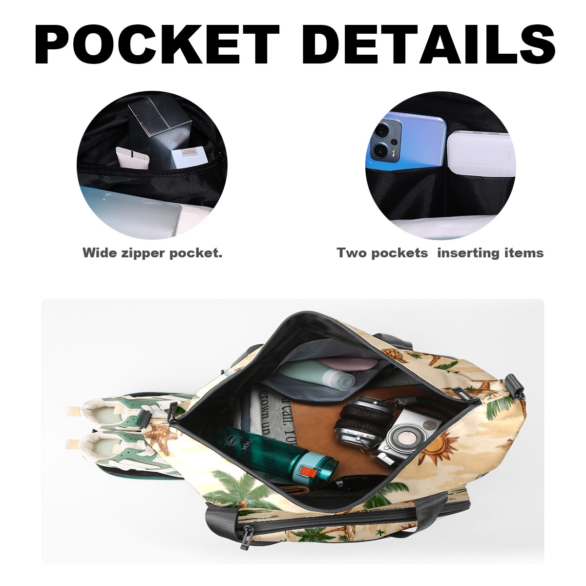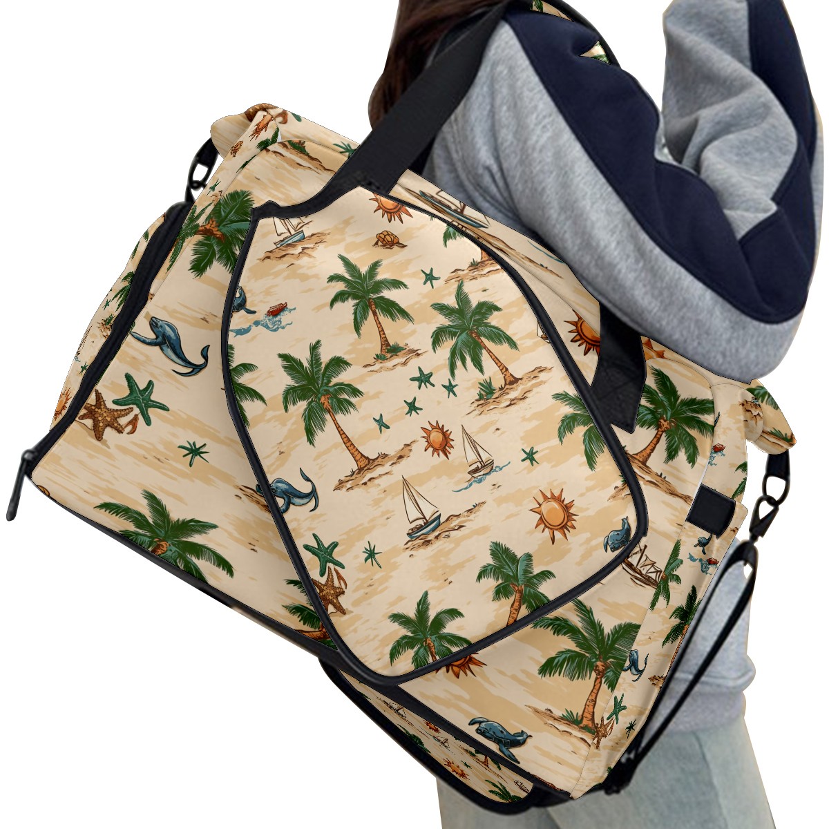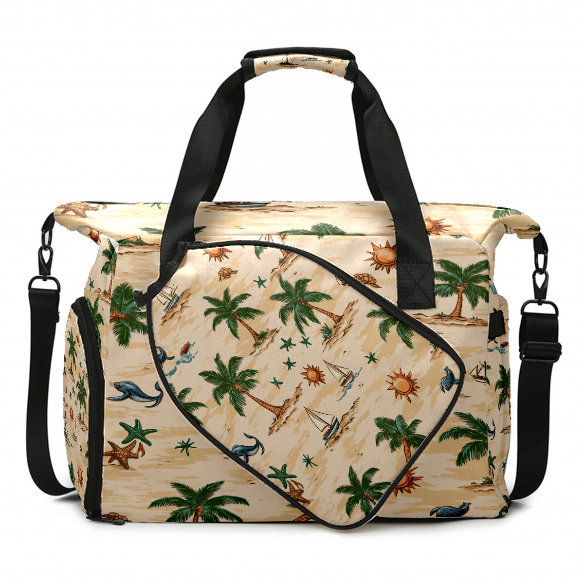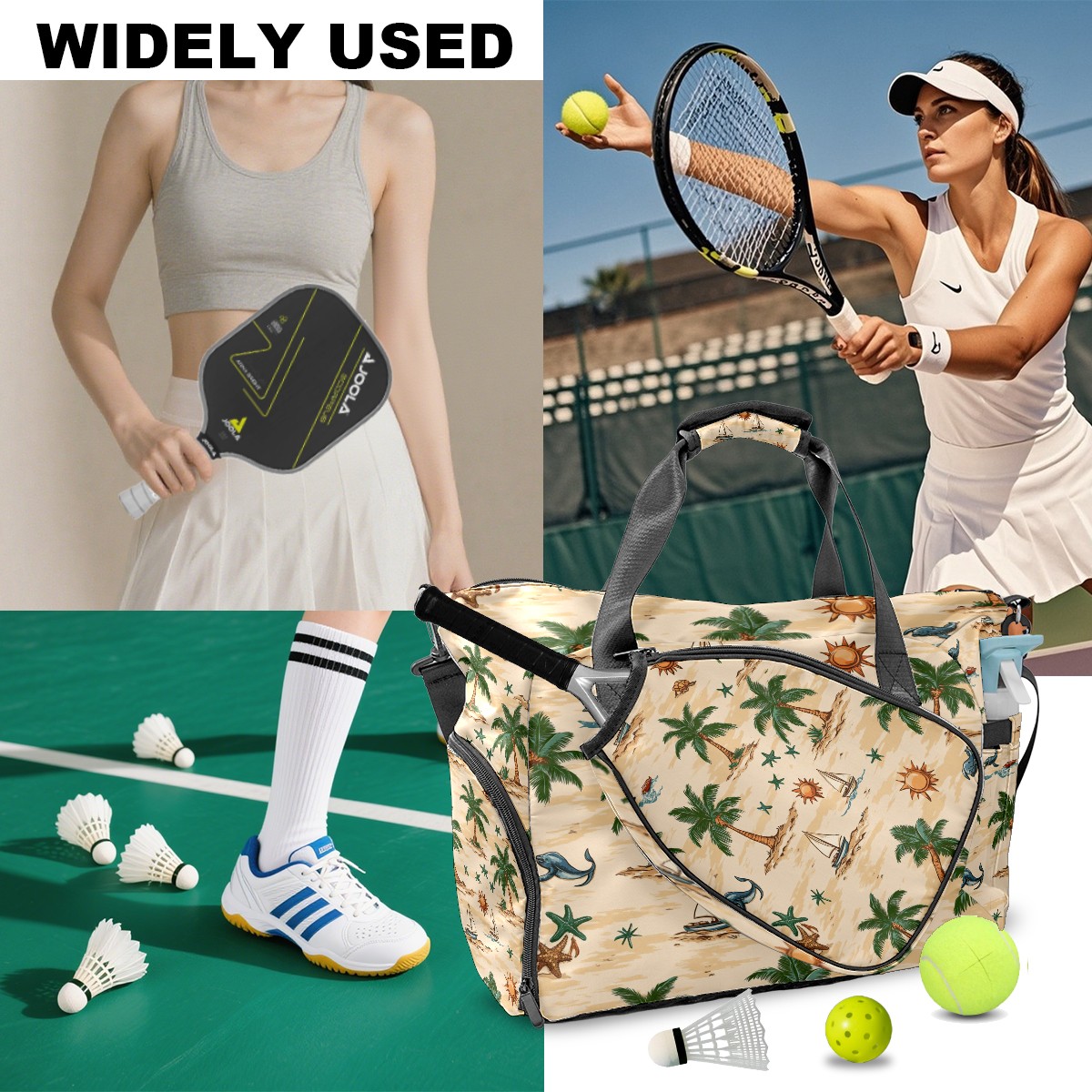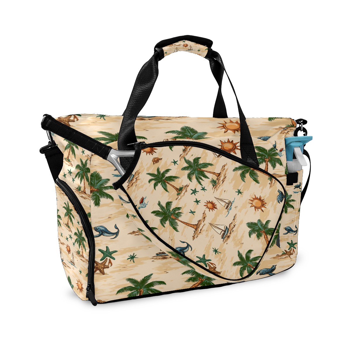 Pickleball Tote Bag Carryall for Paddles Balls and Accessories, Portable Lightweight Gear Bag for Players(Palm Trees Suns And Starfish)