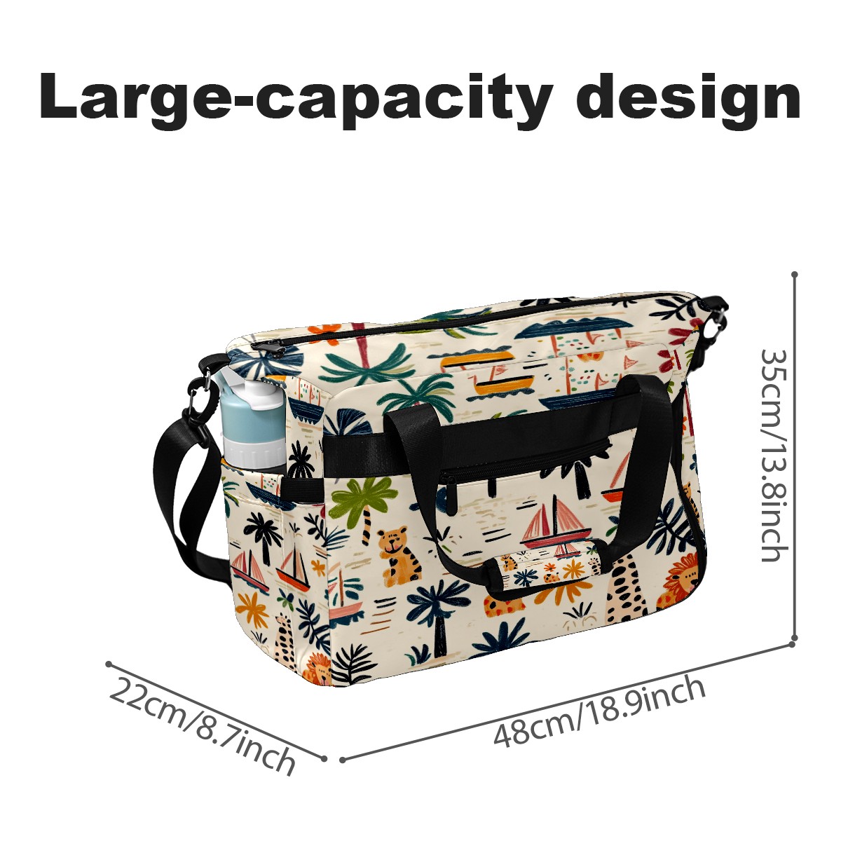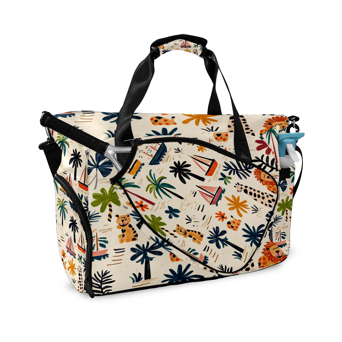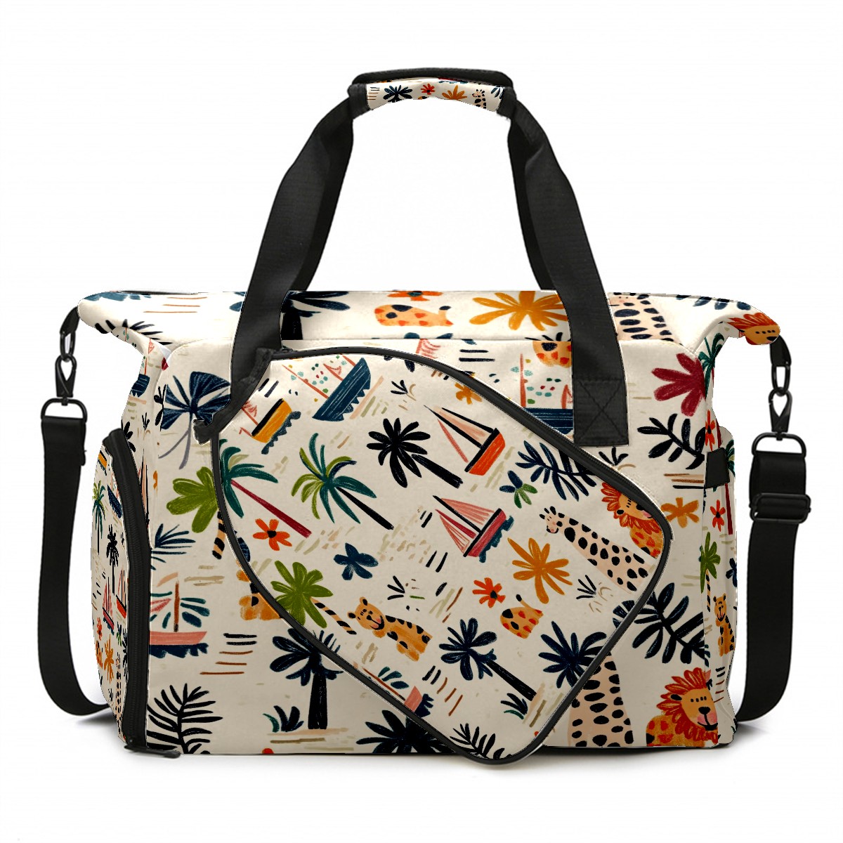 Pickleball Tote Bag Carryall for Paddles Balls and Accessories, Portable Lightweight Gear Bag for Players(Palm Trees Boats And Lions)