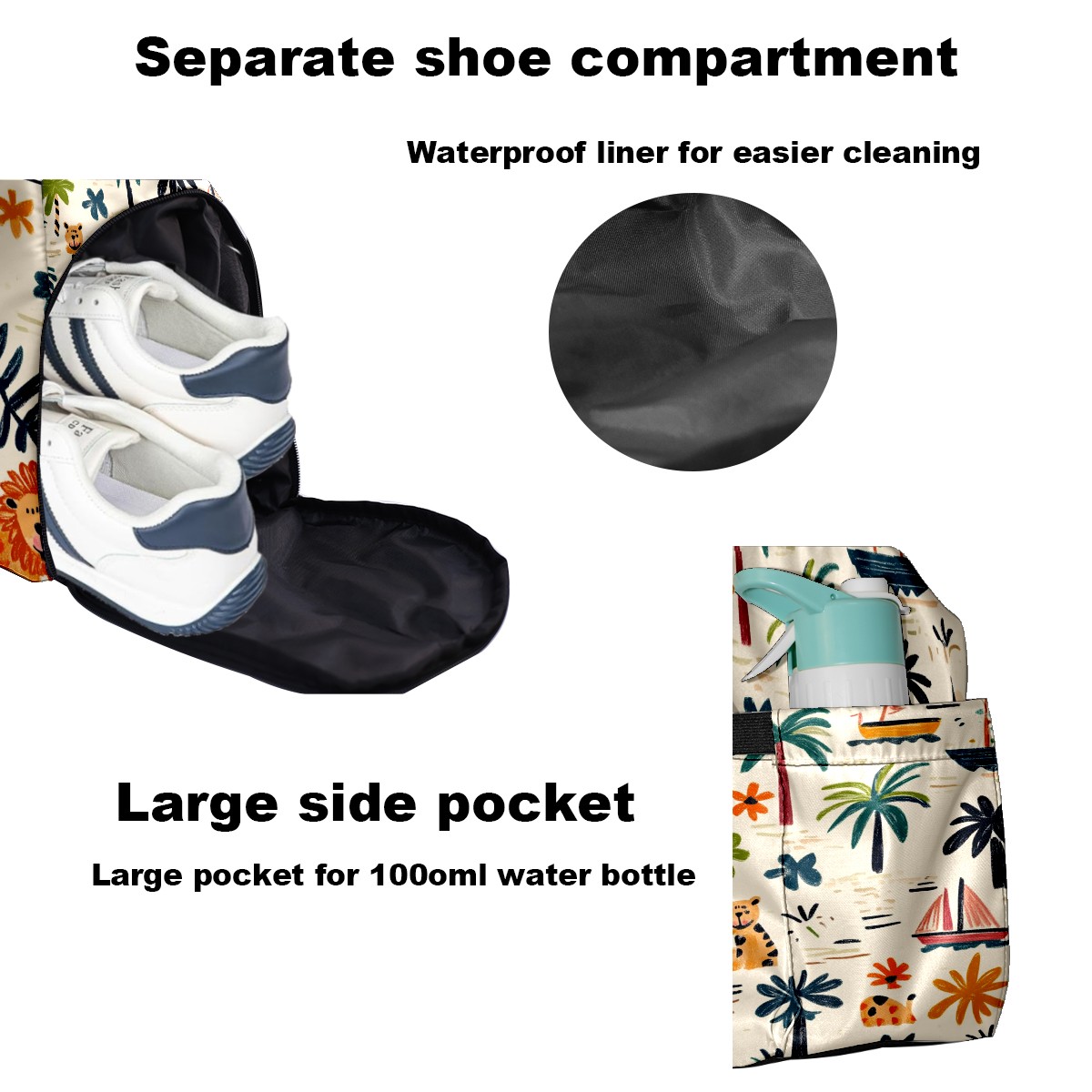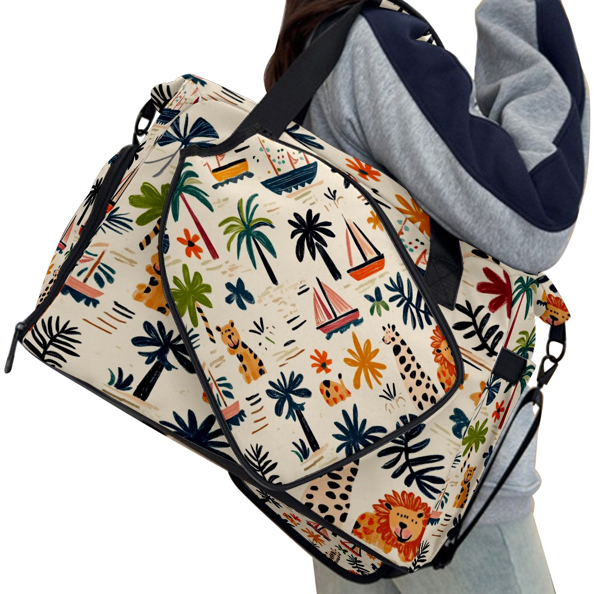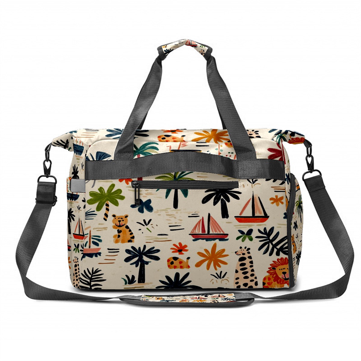 Pickleball Tote Bag Carryall for Paddles Balls and Accessories, Portable Lightweight Gear Bag for Players(Palm Trees Boats And Lions)
