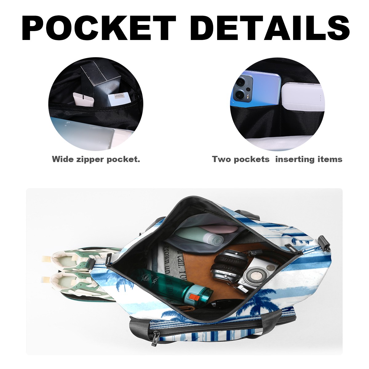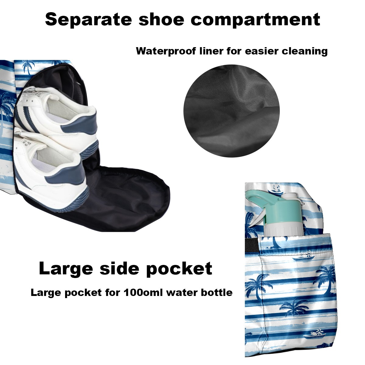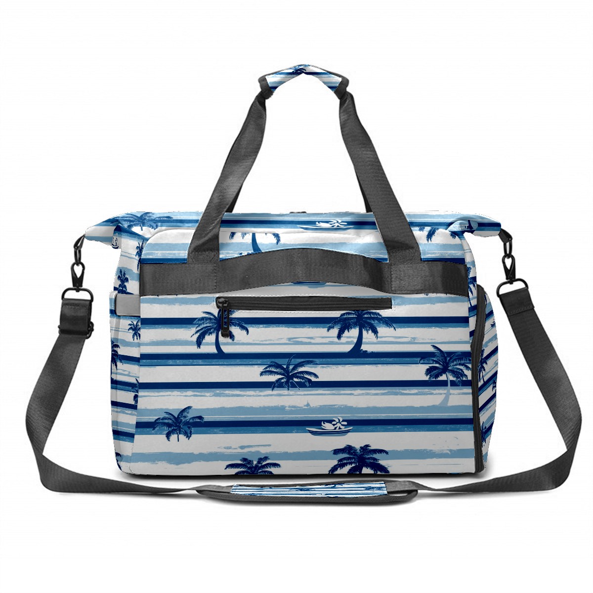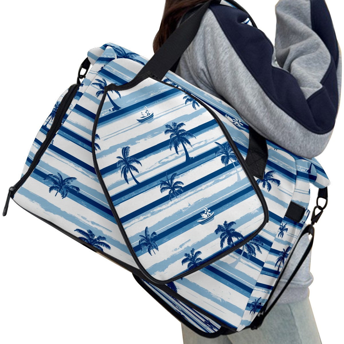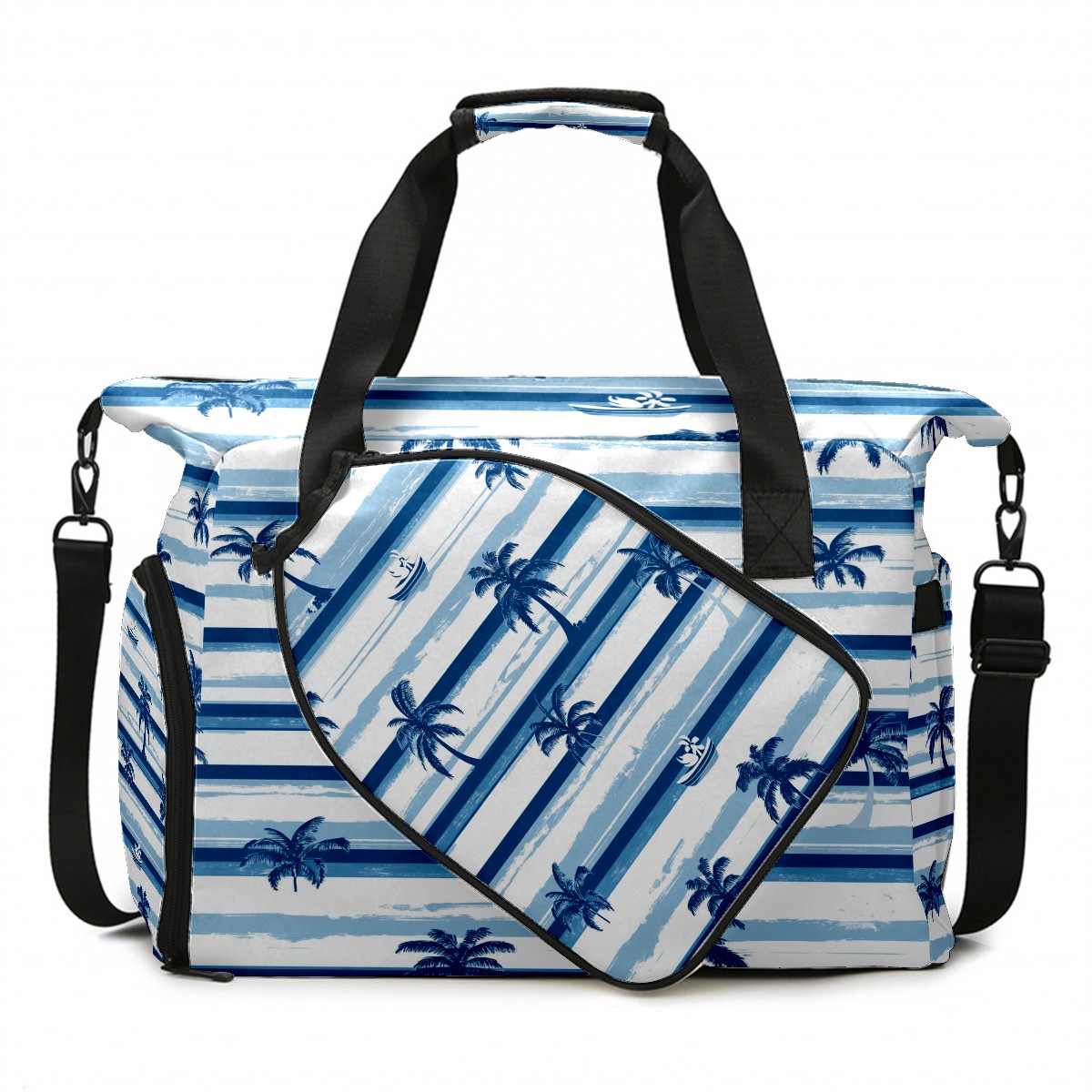 Pickleball Tote Bag Carryall for Paddles Balls and Accessories, Portable Lightweight Gear Bag for Players(Palm Trees And Boats)