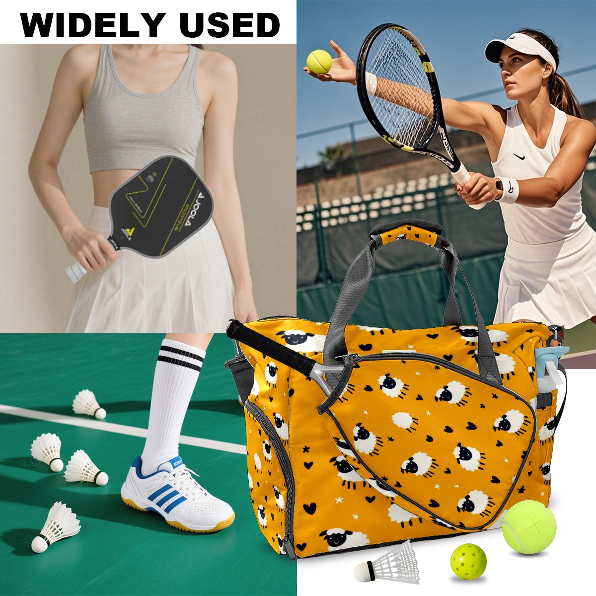 Pickleball Tote Bag Carryall for Paddles Balls and Accessories, Portable Lightweight Gear Bag for Players(Yellow Sheep)