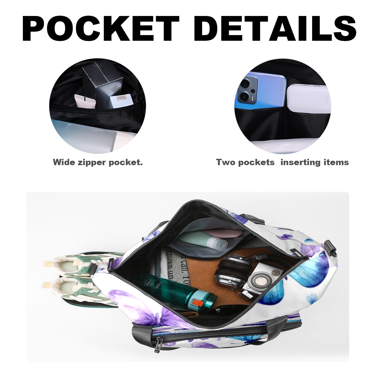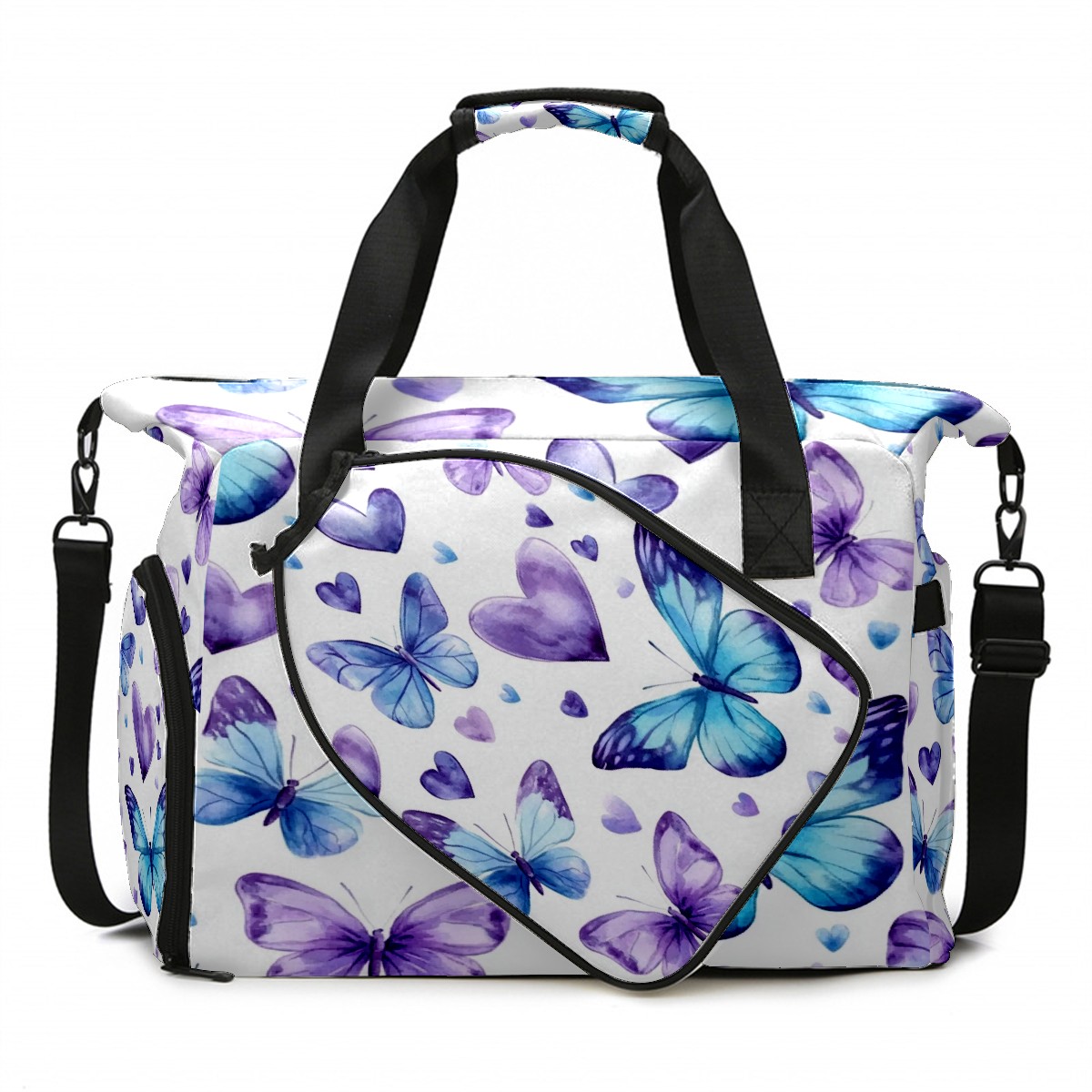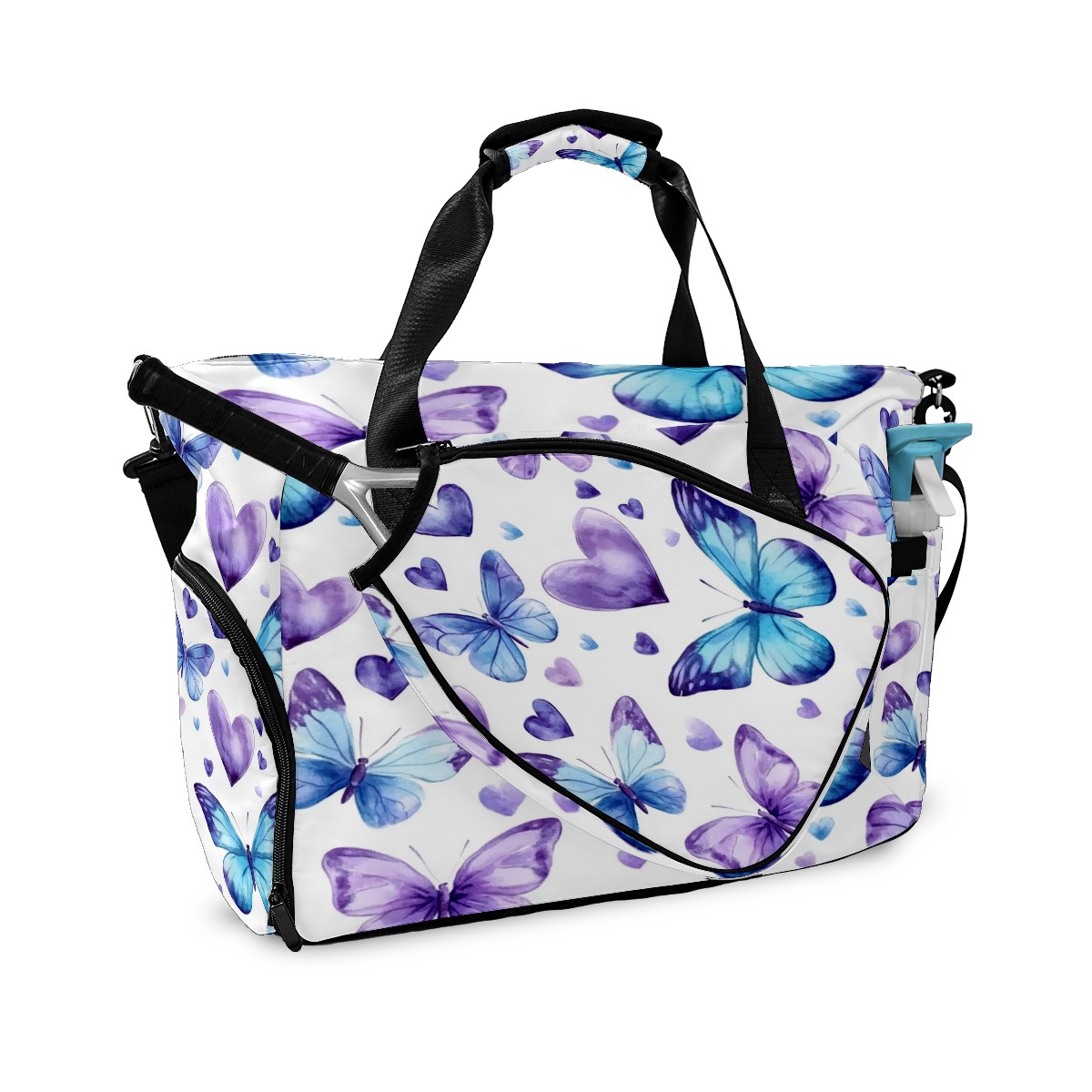 Pickleball Tote Bag Carryall for Paddles Balls and Accessories, Portable Lightweight Gear Bag for Players(Watercolor Butterfly)