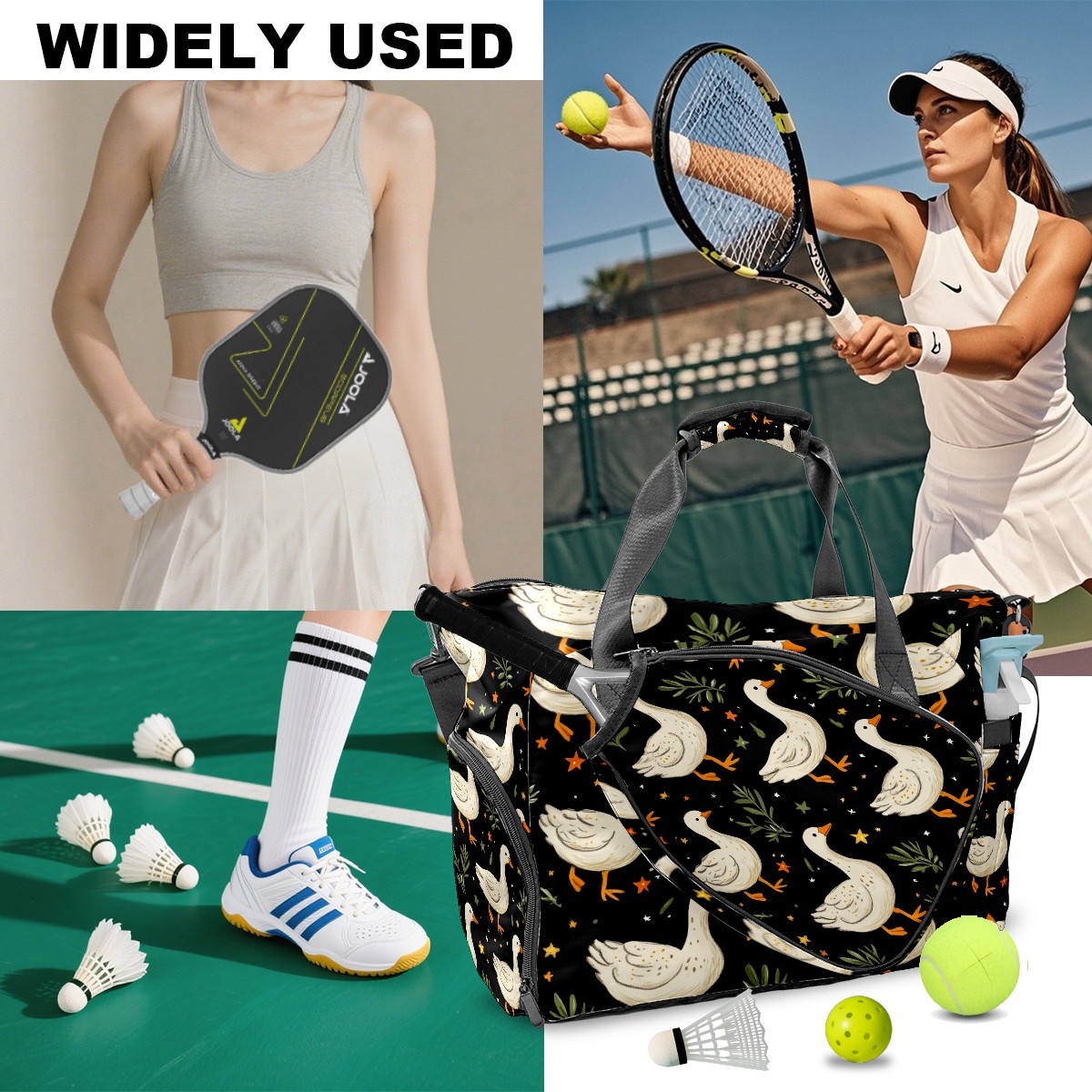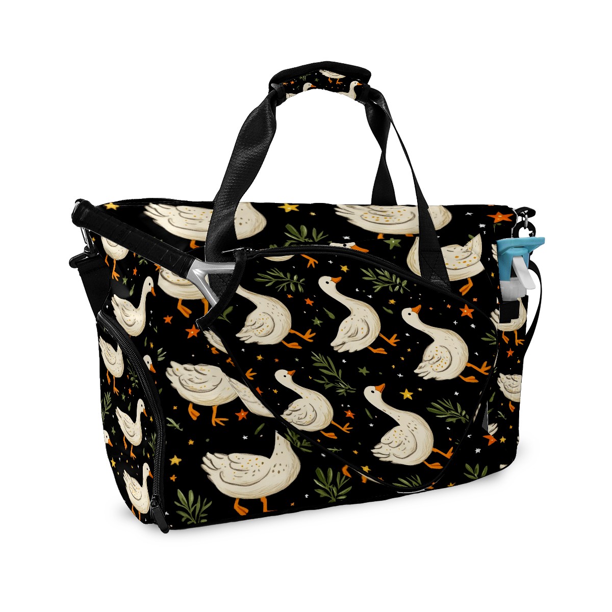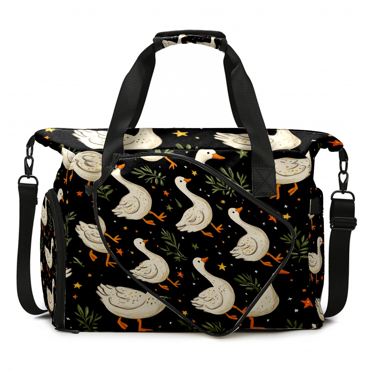 Pickleball Tote Bag Carryall for Paddles Balls and Accessories, Portable Lightweight Gear Bag for Players(White Geese Carrots And Stars)