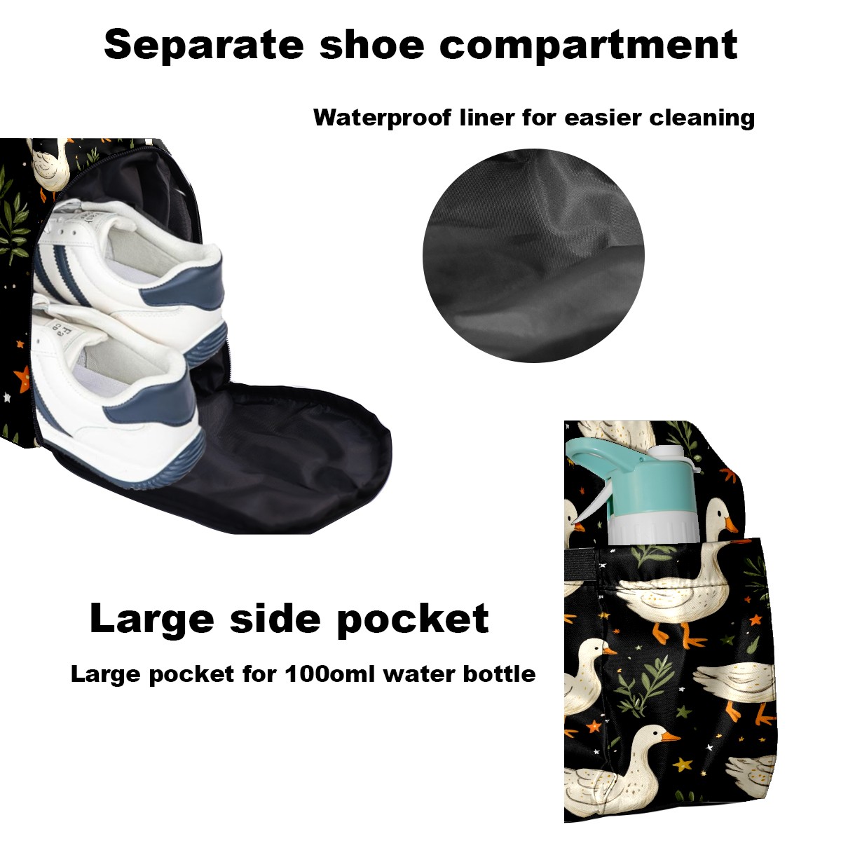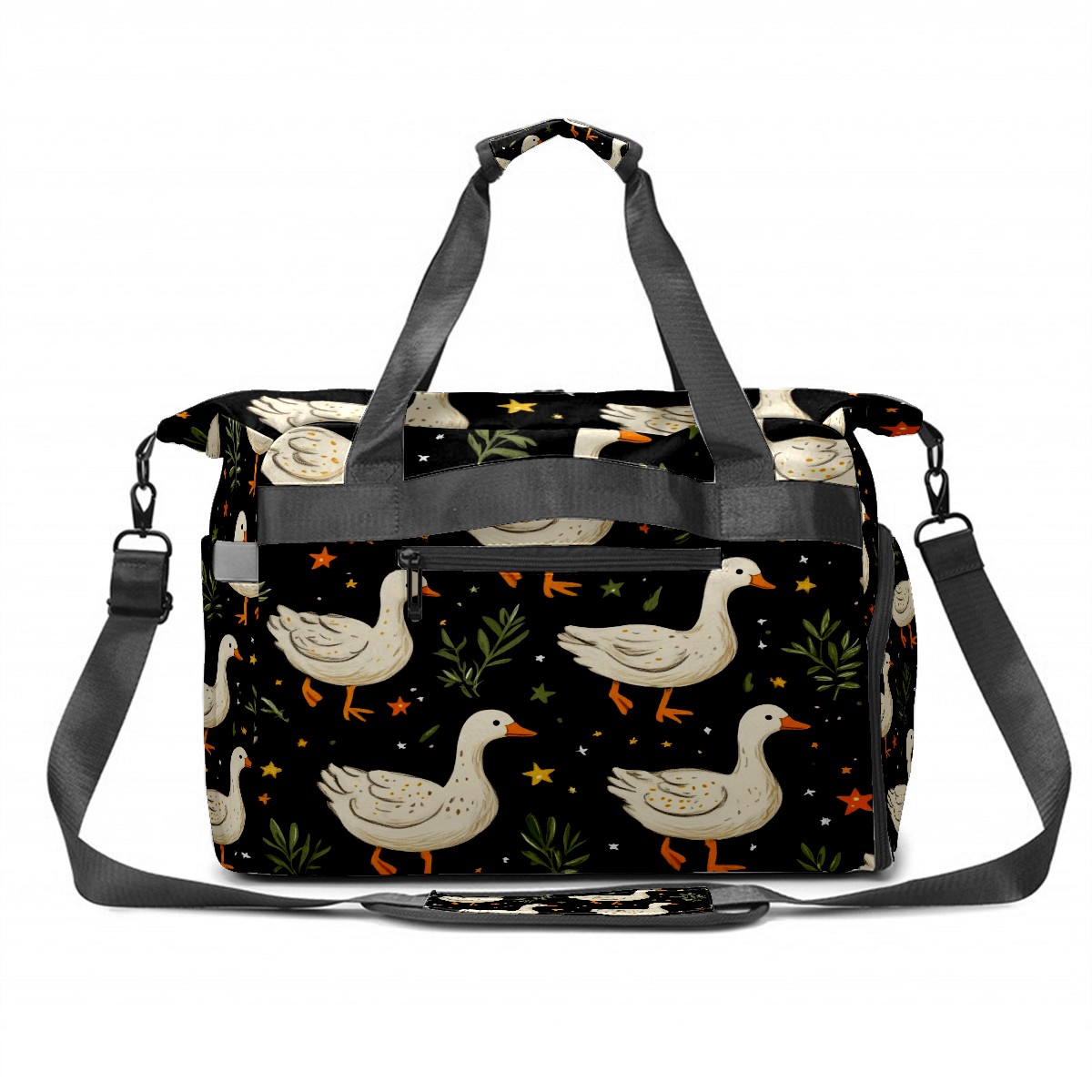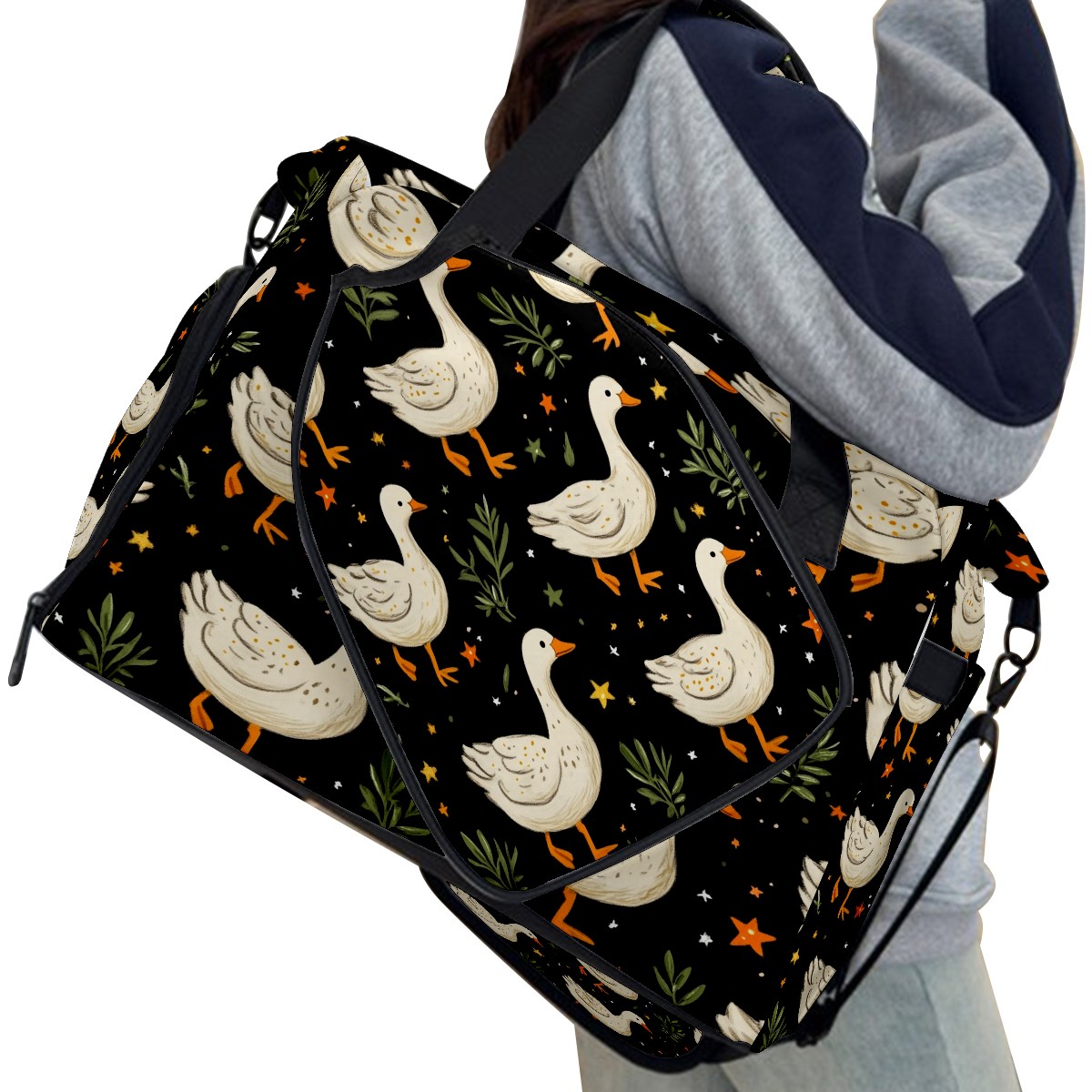 Pickleball Tote Bag Carryall for Paddles Balls and Accessories, Portable Lightweight Gear Bag for Players(White Geese Carrots And Stars)