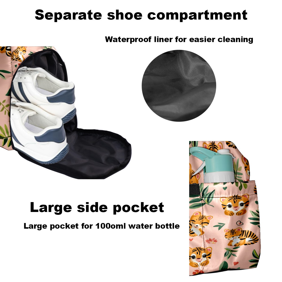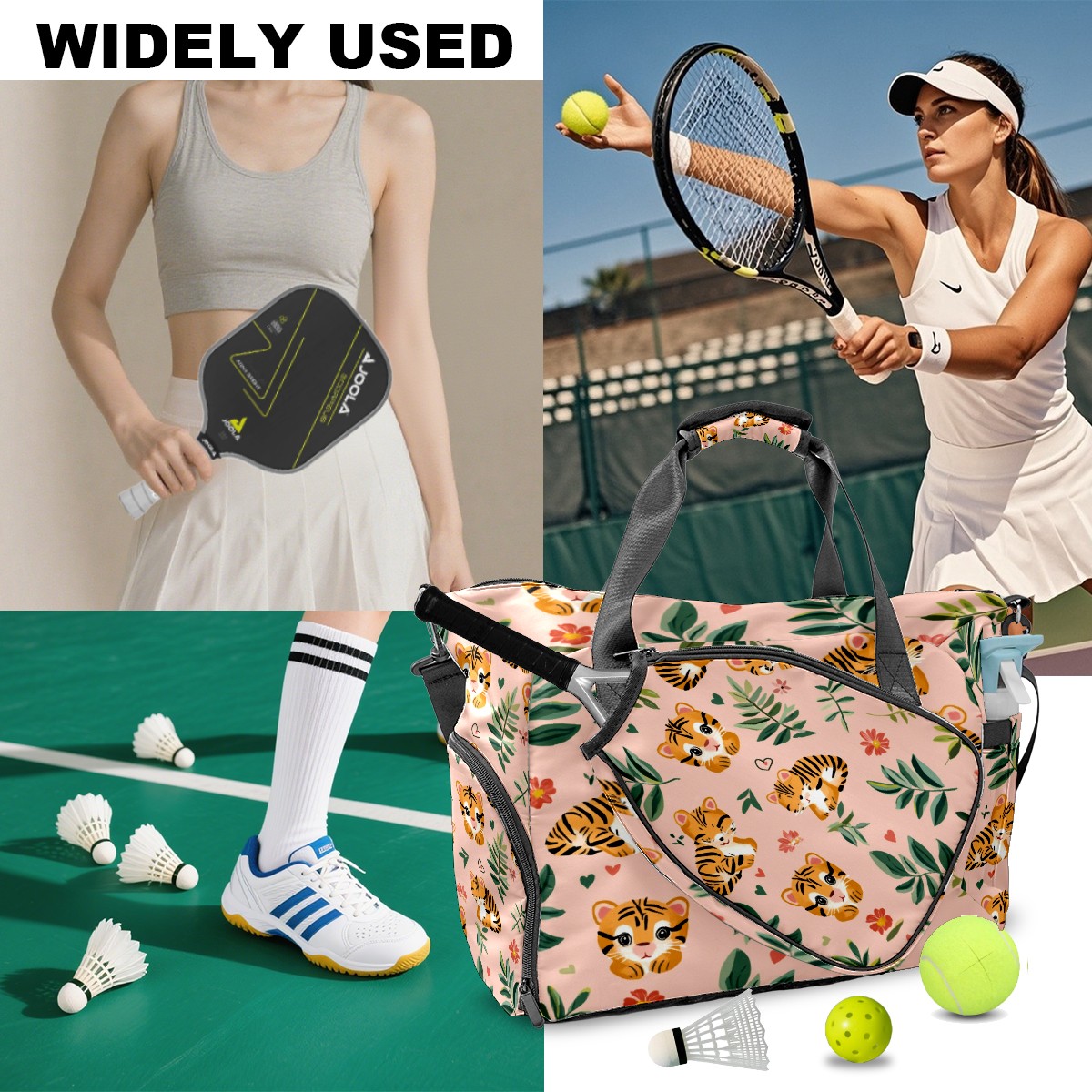 Pickleball Tote Bag Carryall for Paddles Balls and Accessories, Portable Lightweight Gear Bag for Players(Tiger)