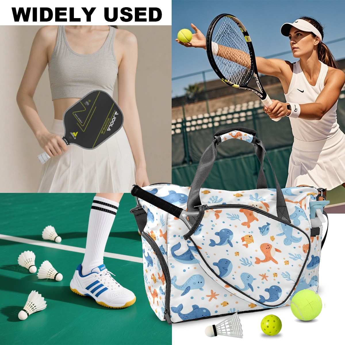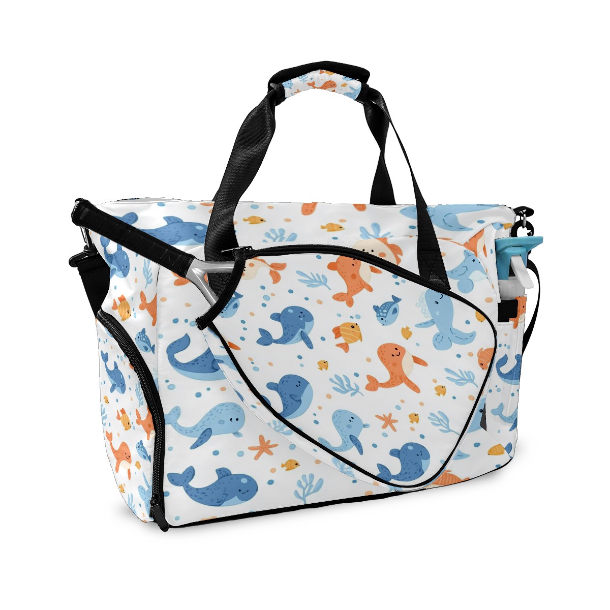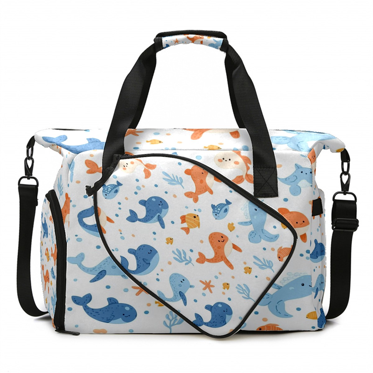 Pickleball Tote Bag Carryall for Paddles Balls and Accessories, Portable Lightweight Gear Bag for Players(Sea Animals)