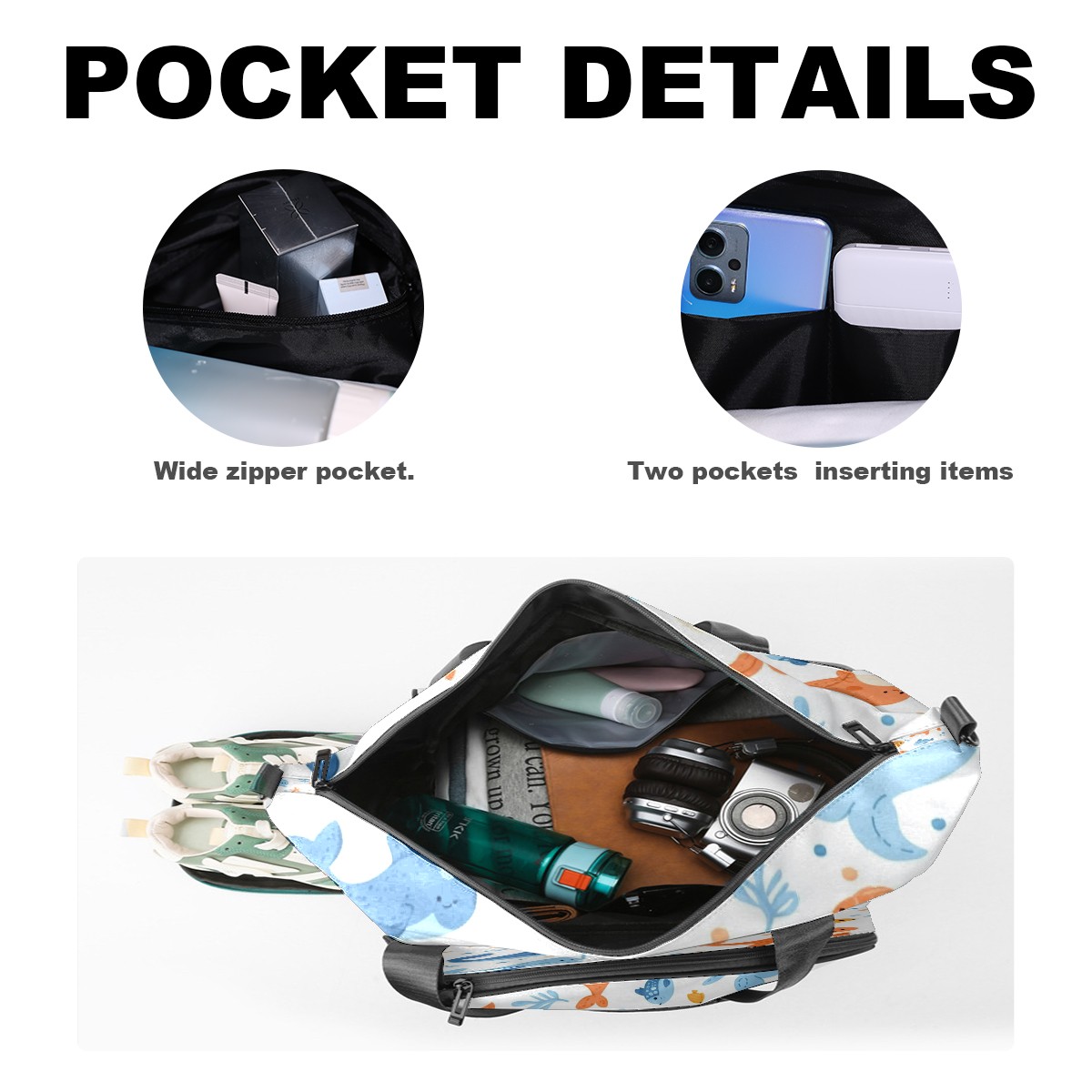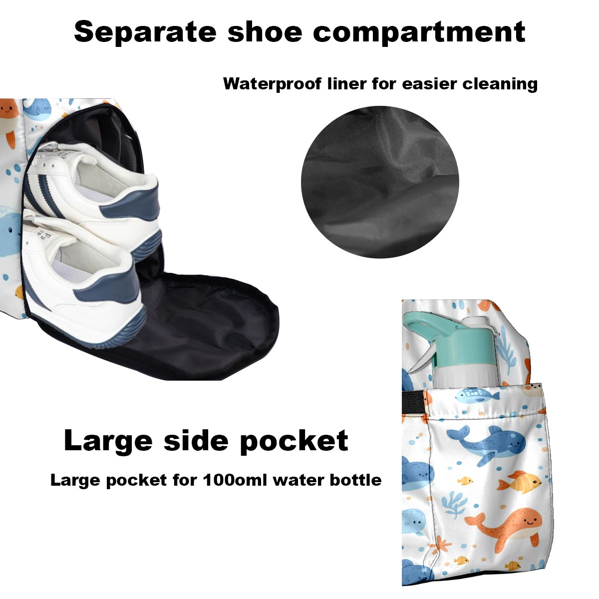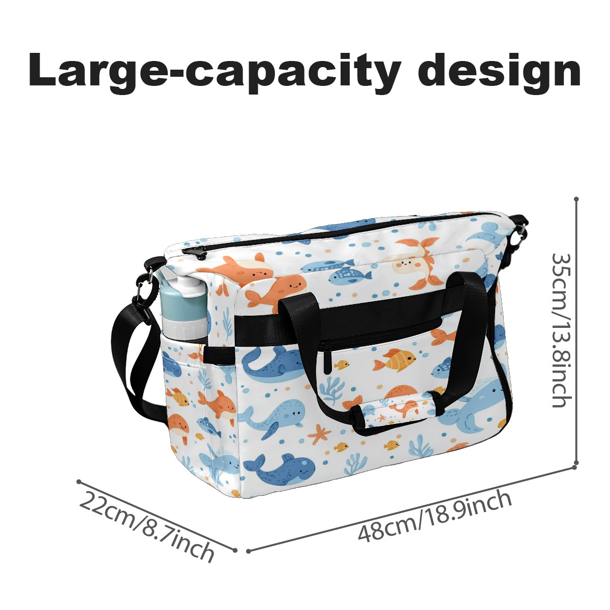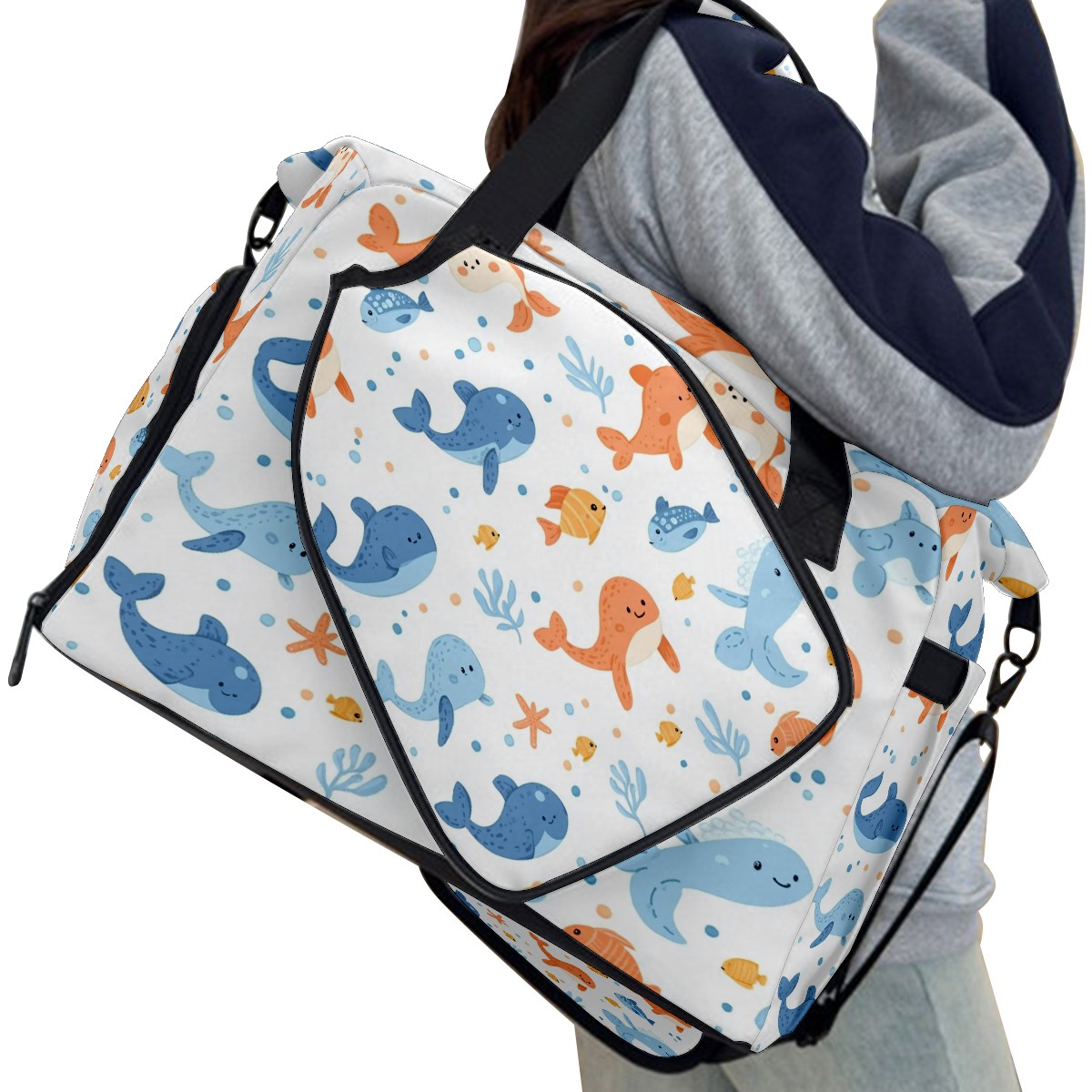 Pickleball Tote Bag Carryall for Paddles Balls and Accessories, Portable Lightweight Gear Bag for Players(Sea Animals)